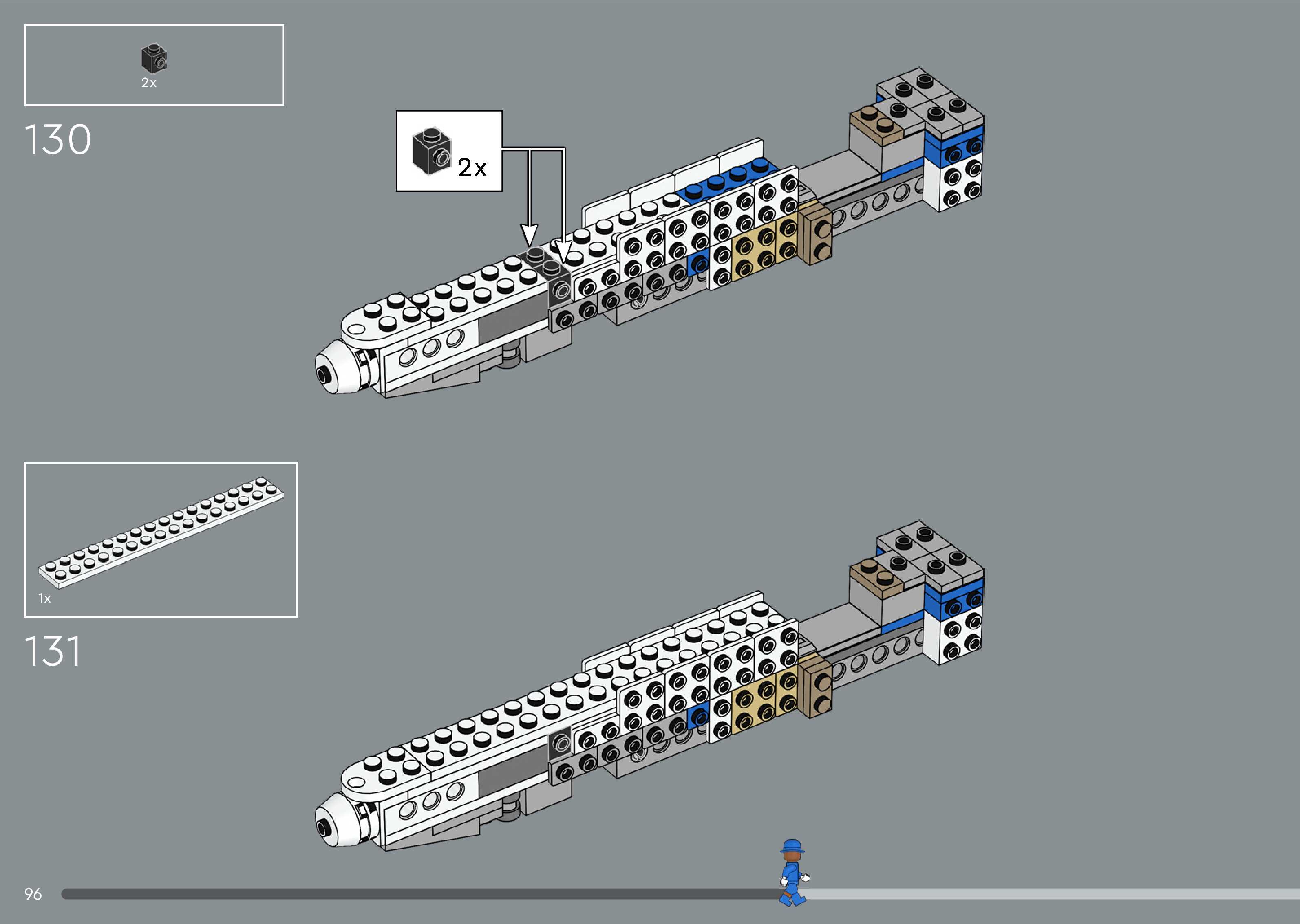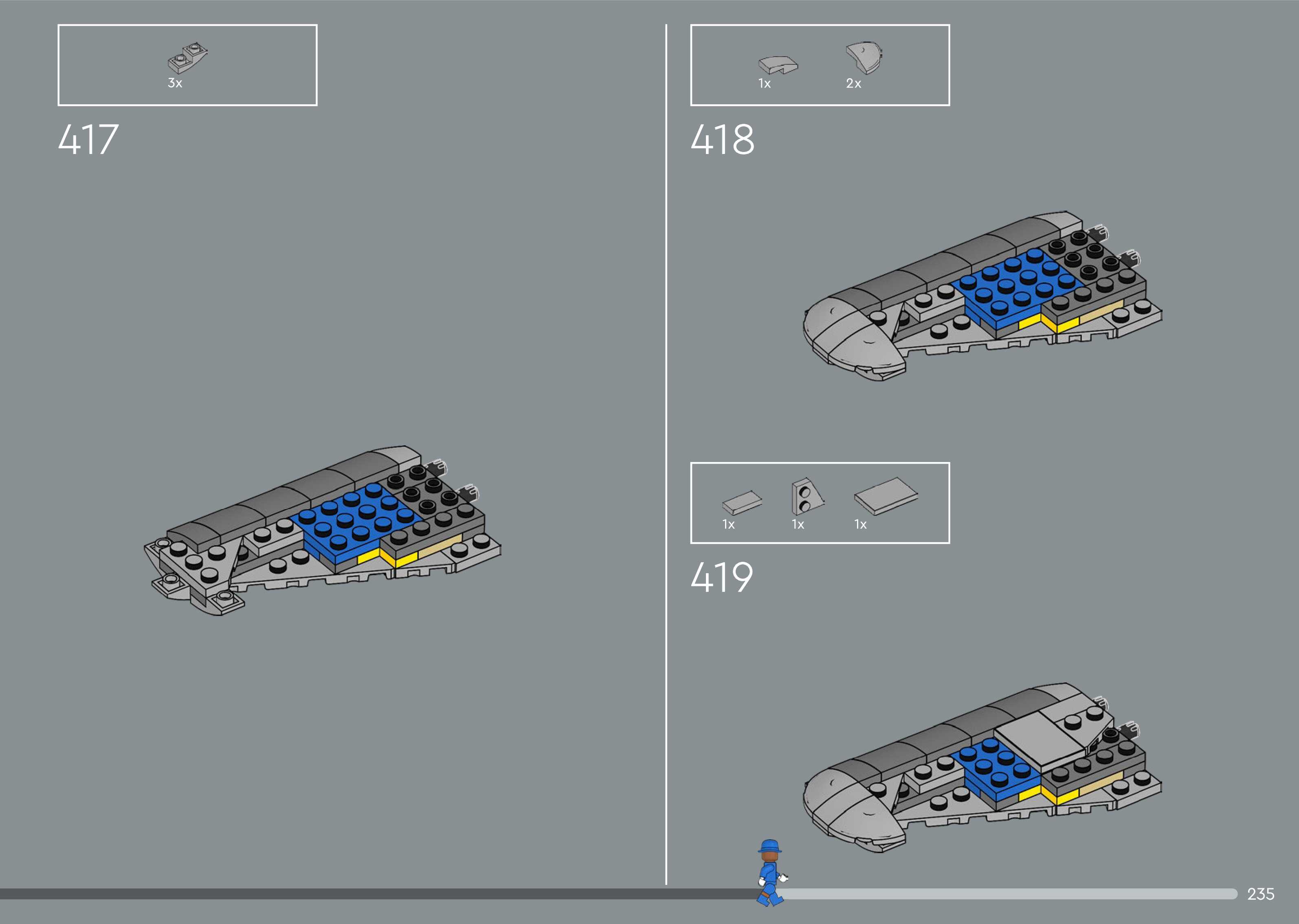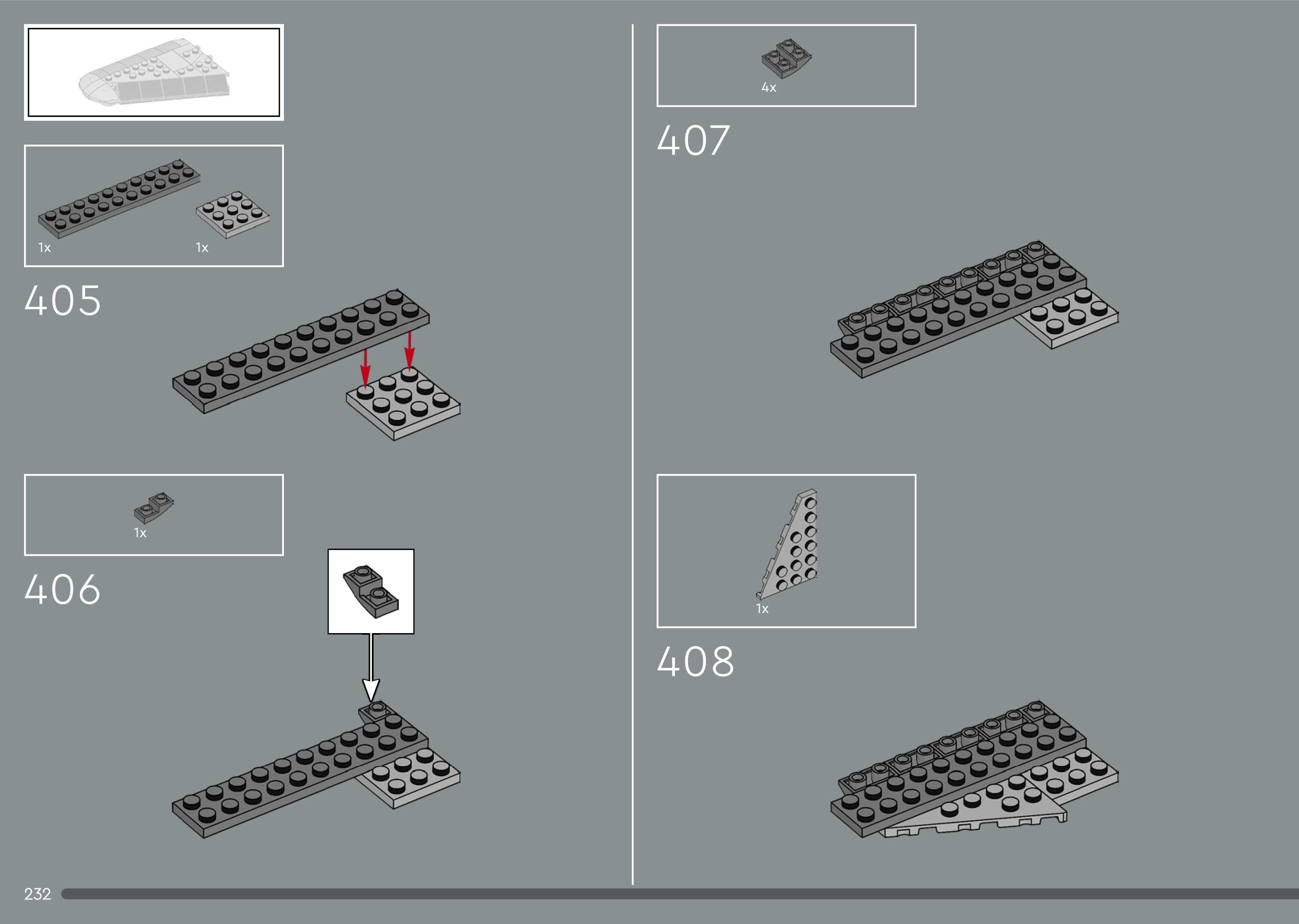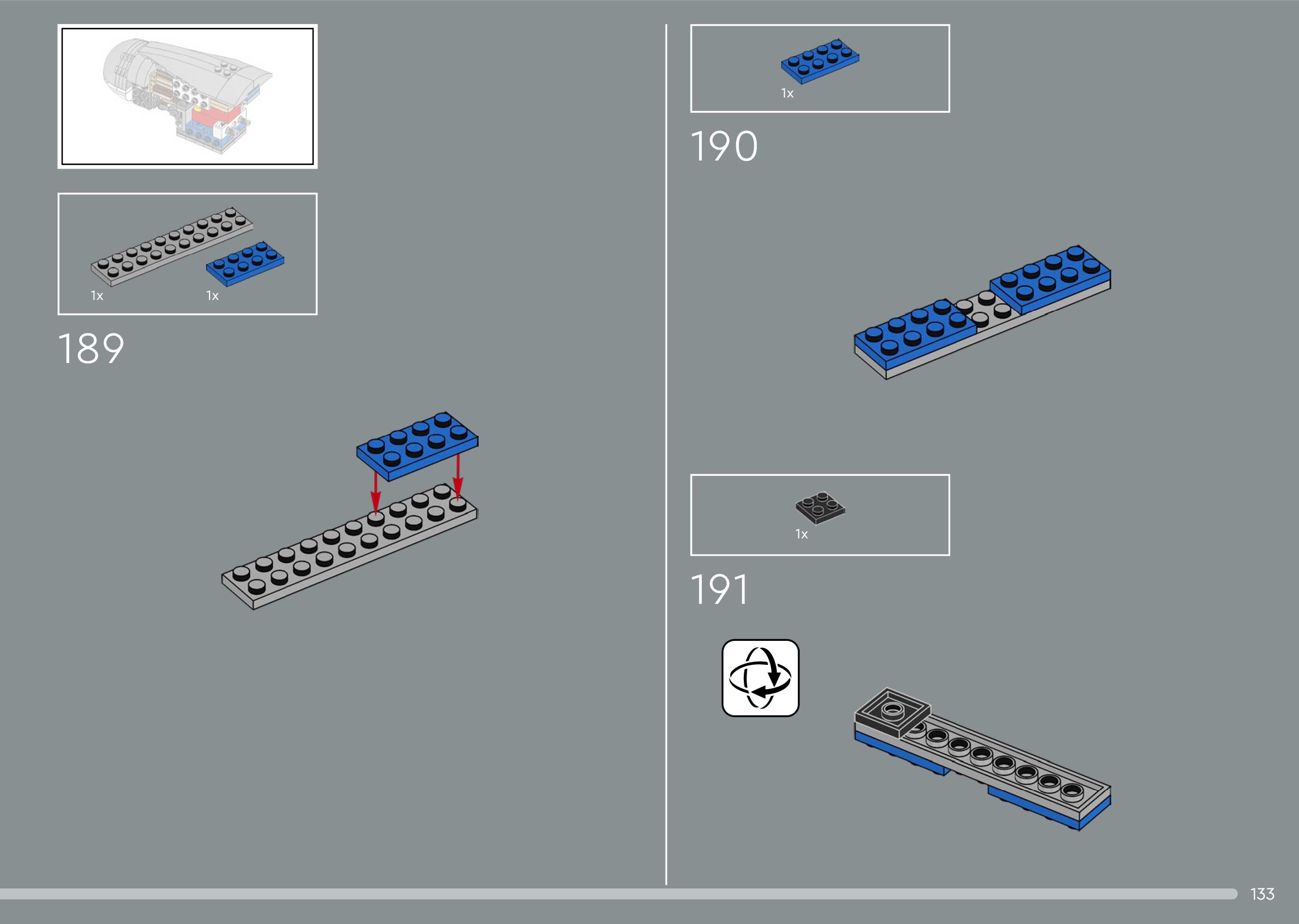 The assembly guide is prepared in a very understandable way for children and adult LEGO enthusiasts. A total of 296 picture galleries are shown, explaining the step-by-step construction stages for 1 different structures.