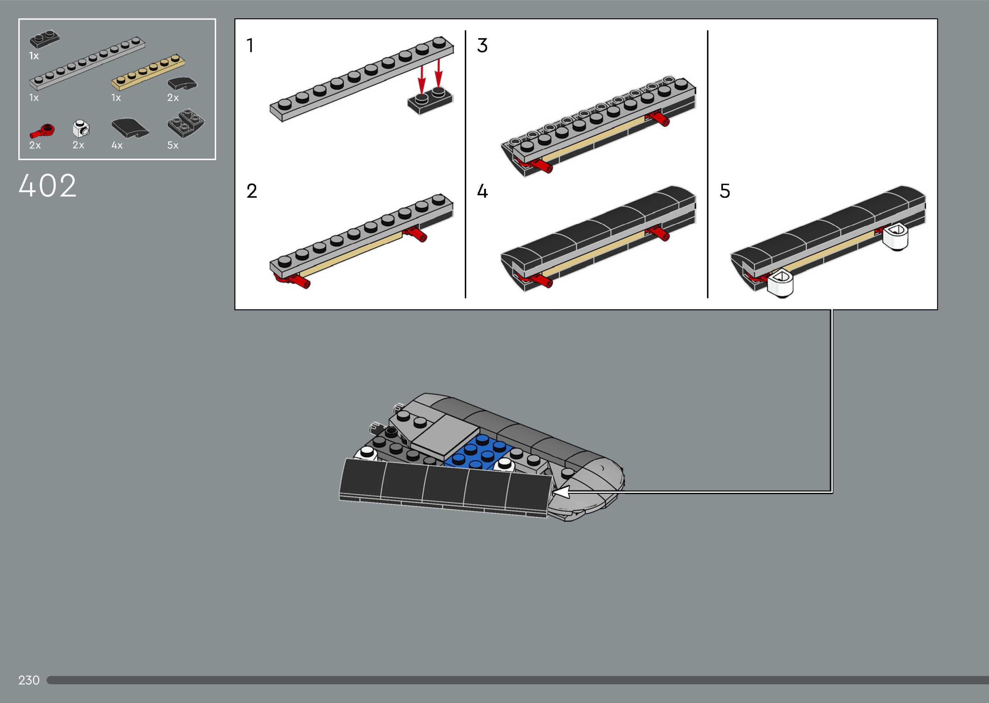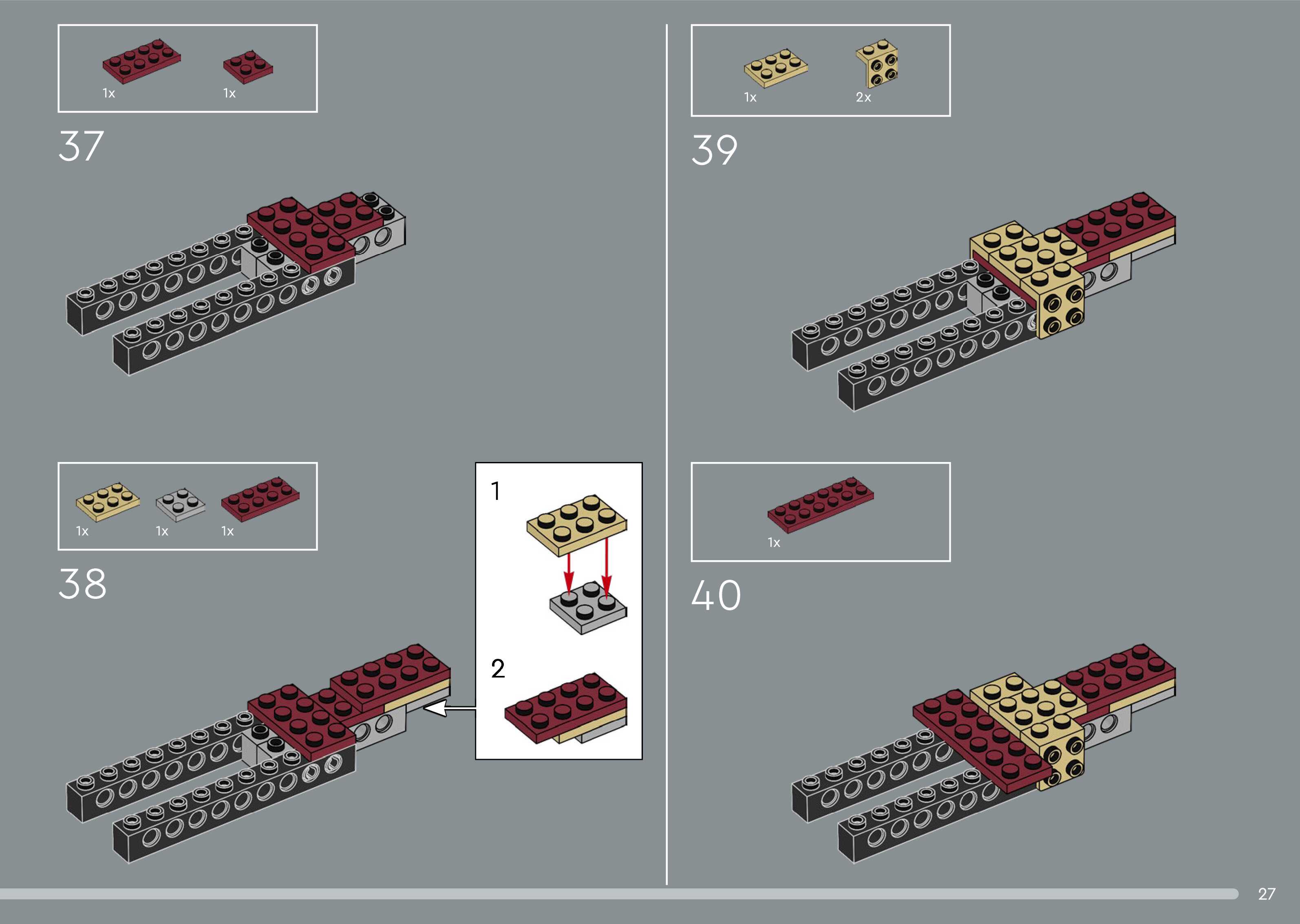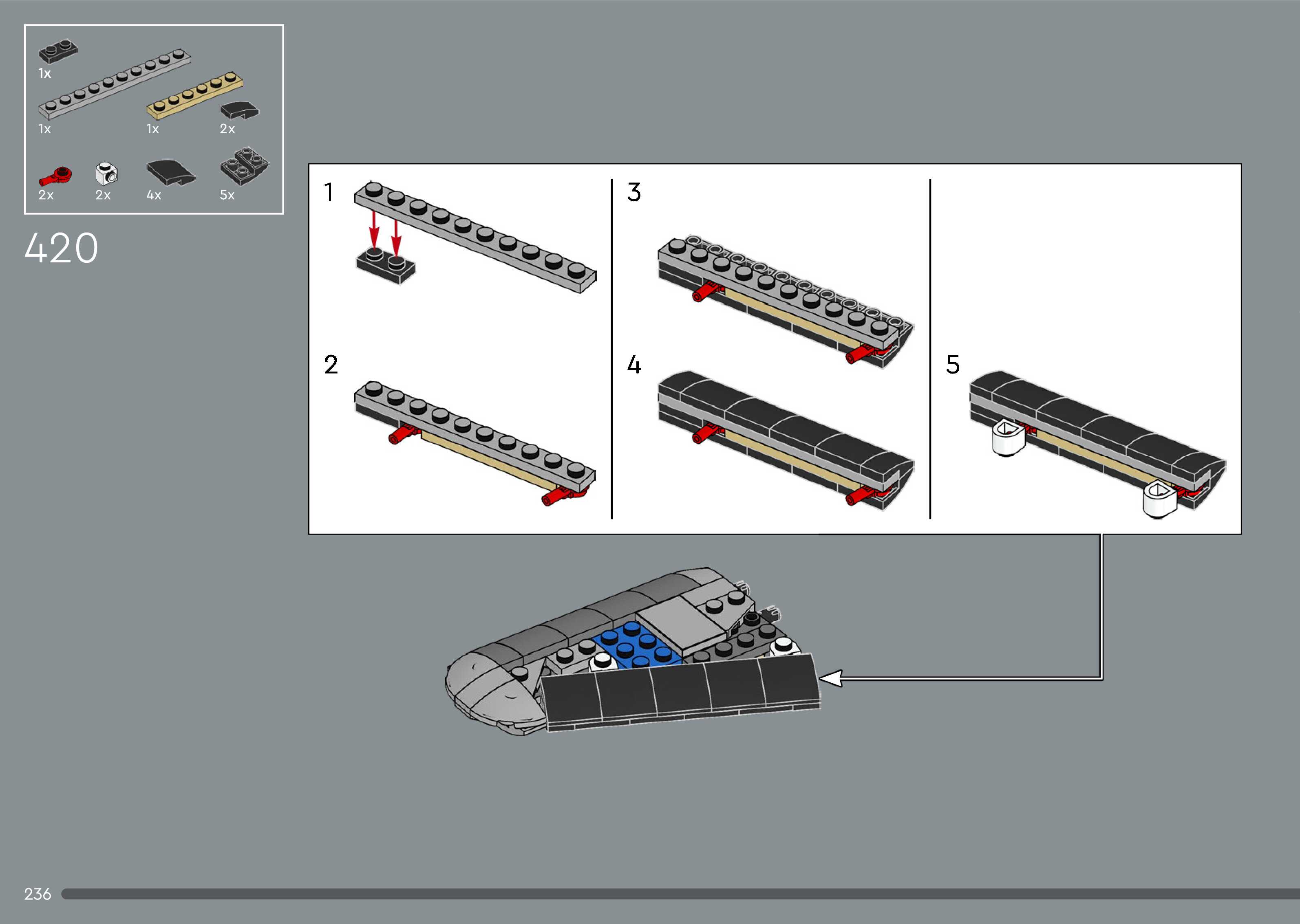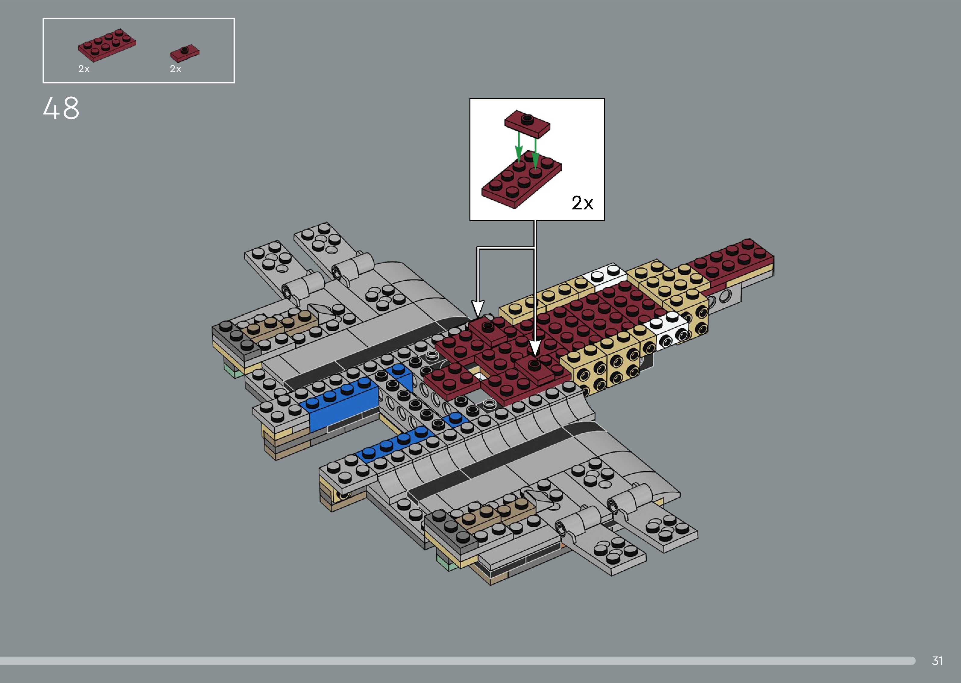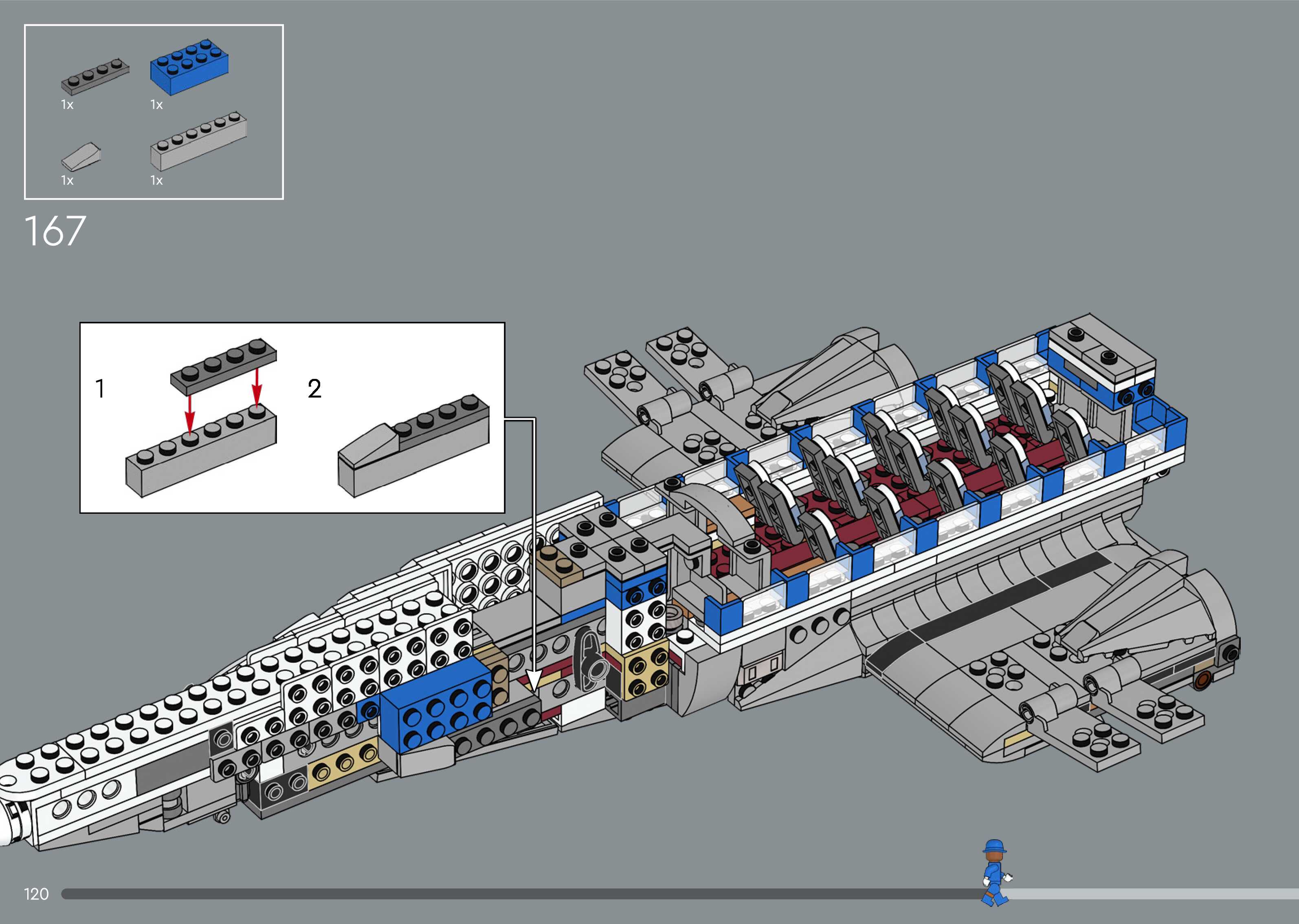 The assembly guide is prepared in a very understandable way for children and adult LEGO enthusiasts. A total of 296 picture galleries are shown, explaining the step-by-step construction stages for 1 different structures.