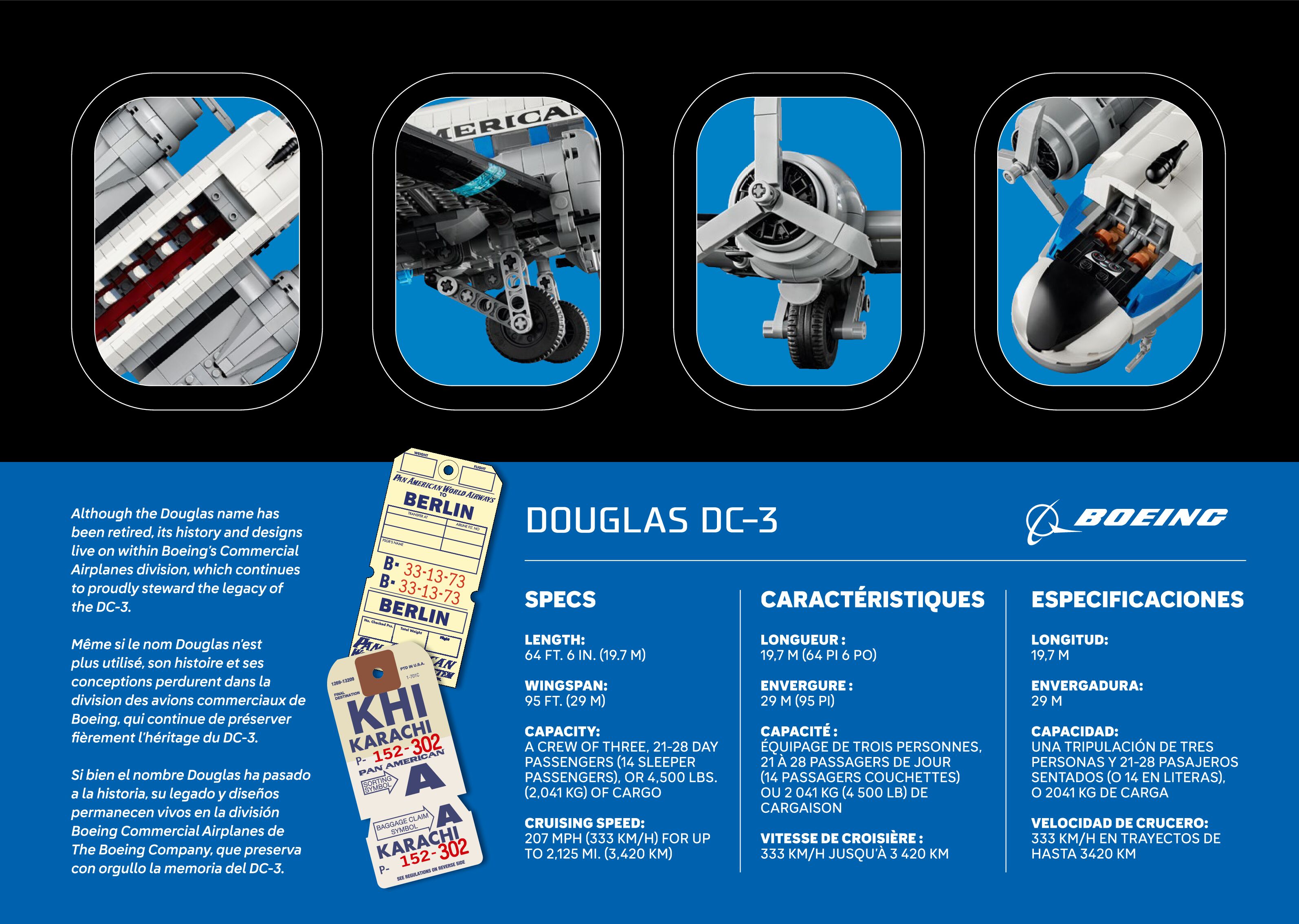 This page shares information about LEGO Douglas™ DC-3™ PAN AM® Airliner manual, LEGO 11378 PDF instructions, LEGO Douglas™ DC-3™ PAN AM® Airliner building guide online, How to build Douglas™ DC-3™ PAN AM® Airliner LEGO.