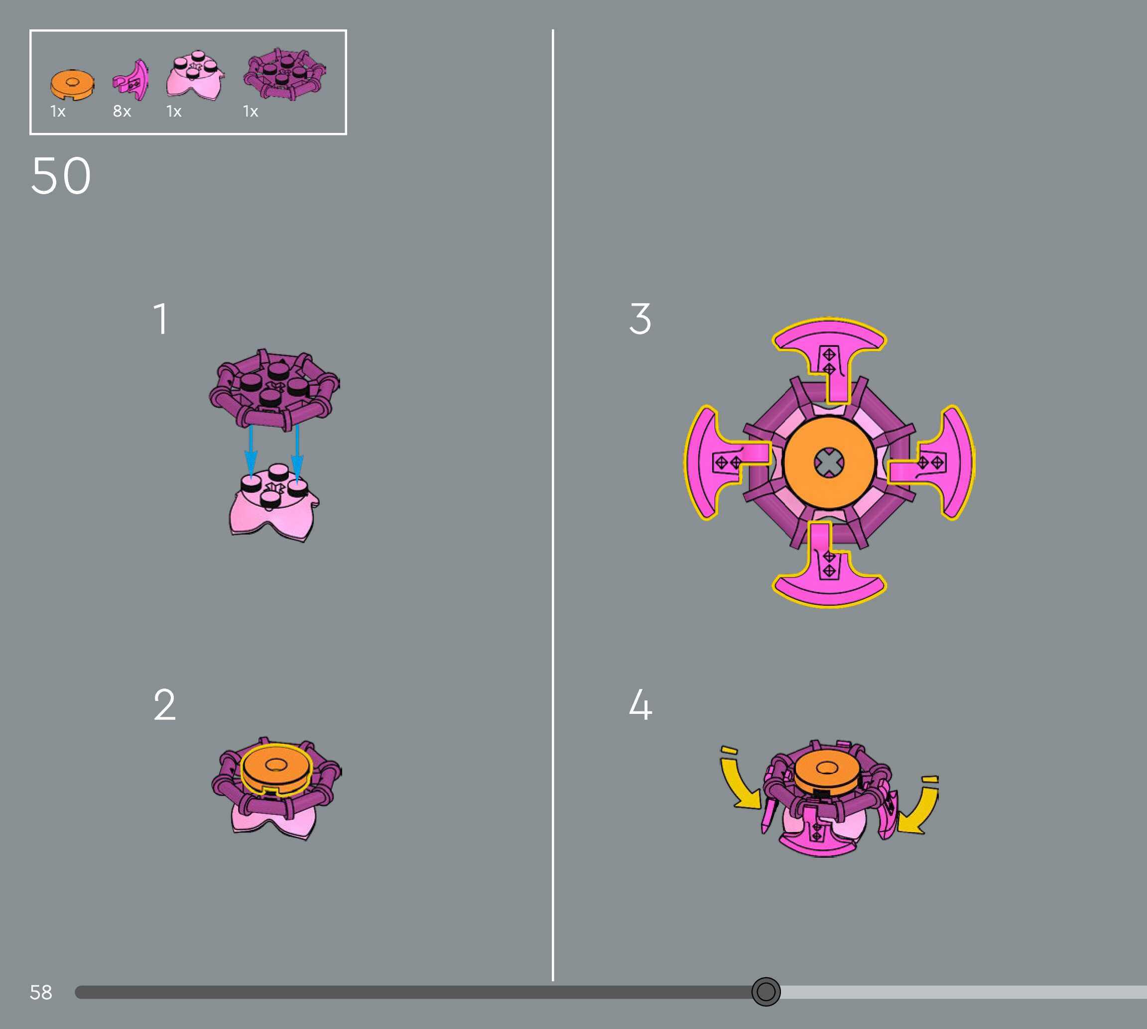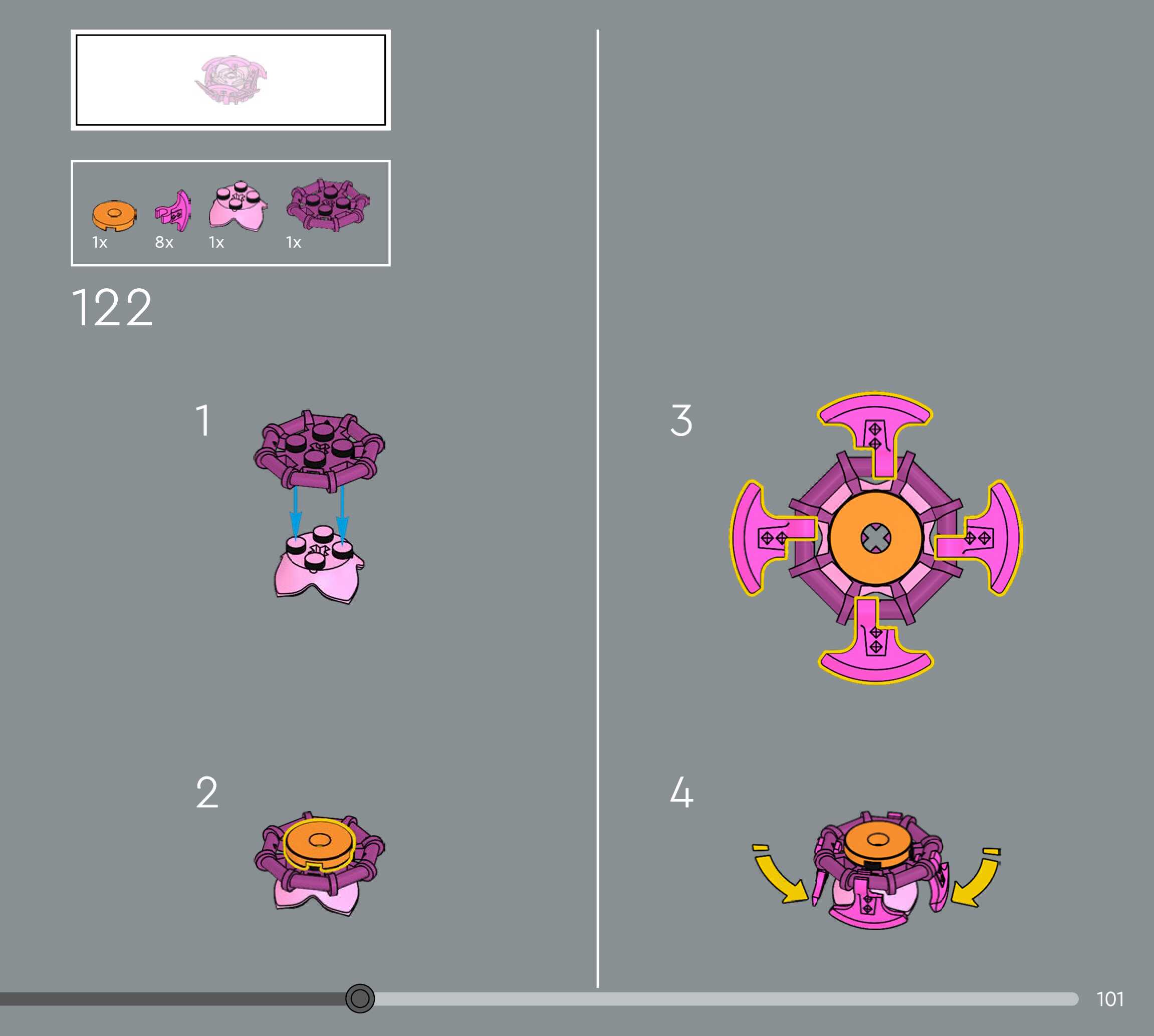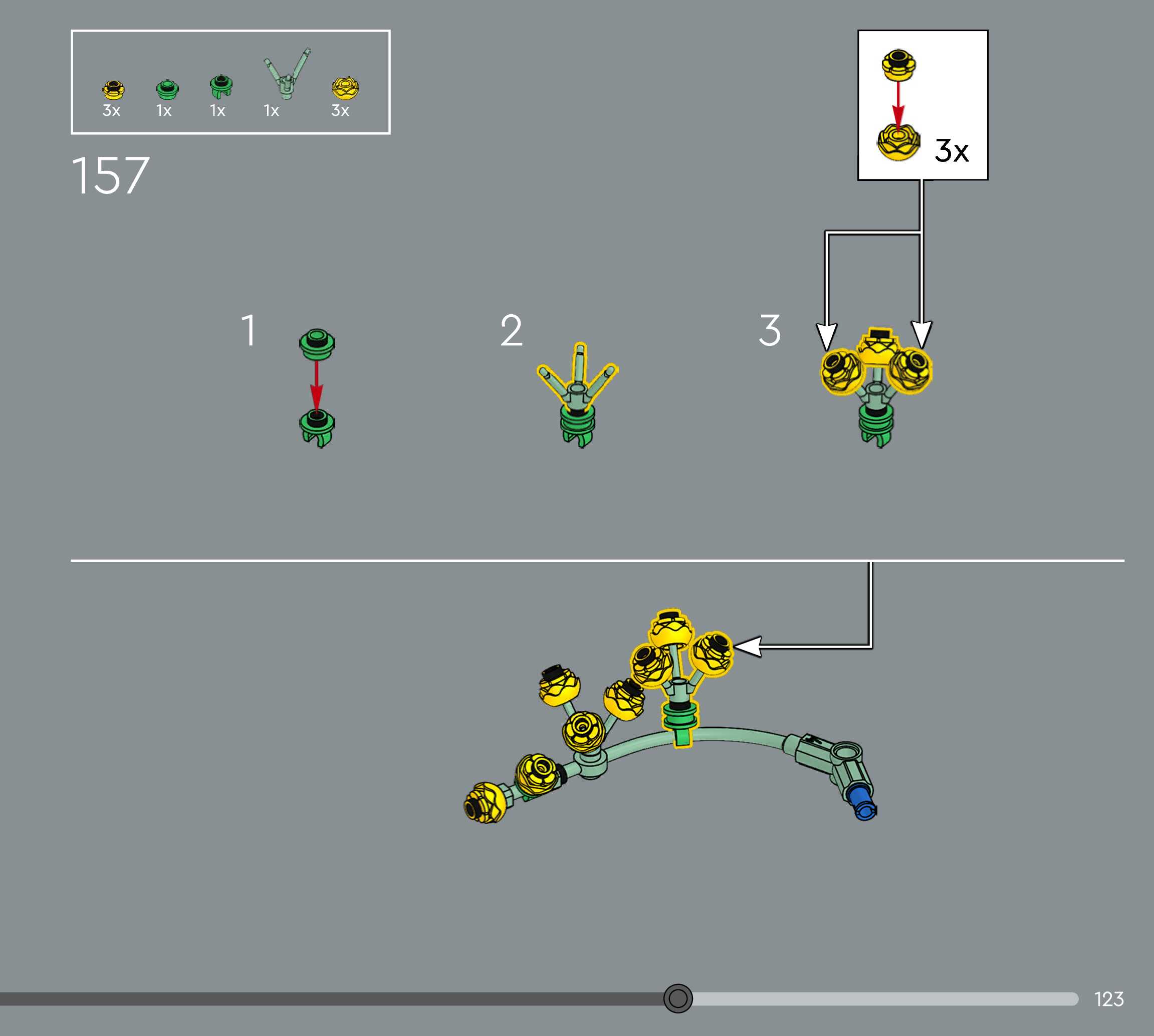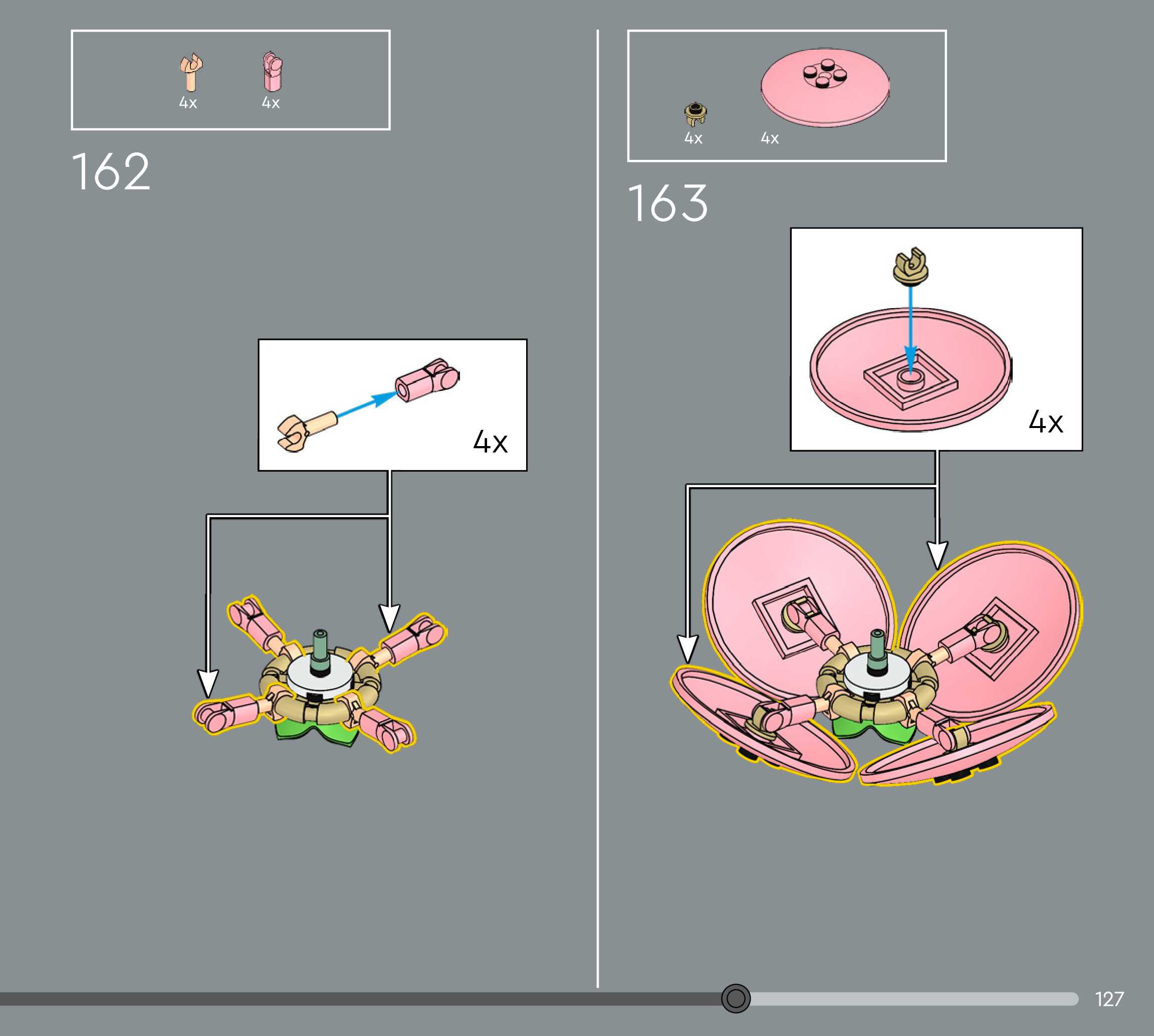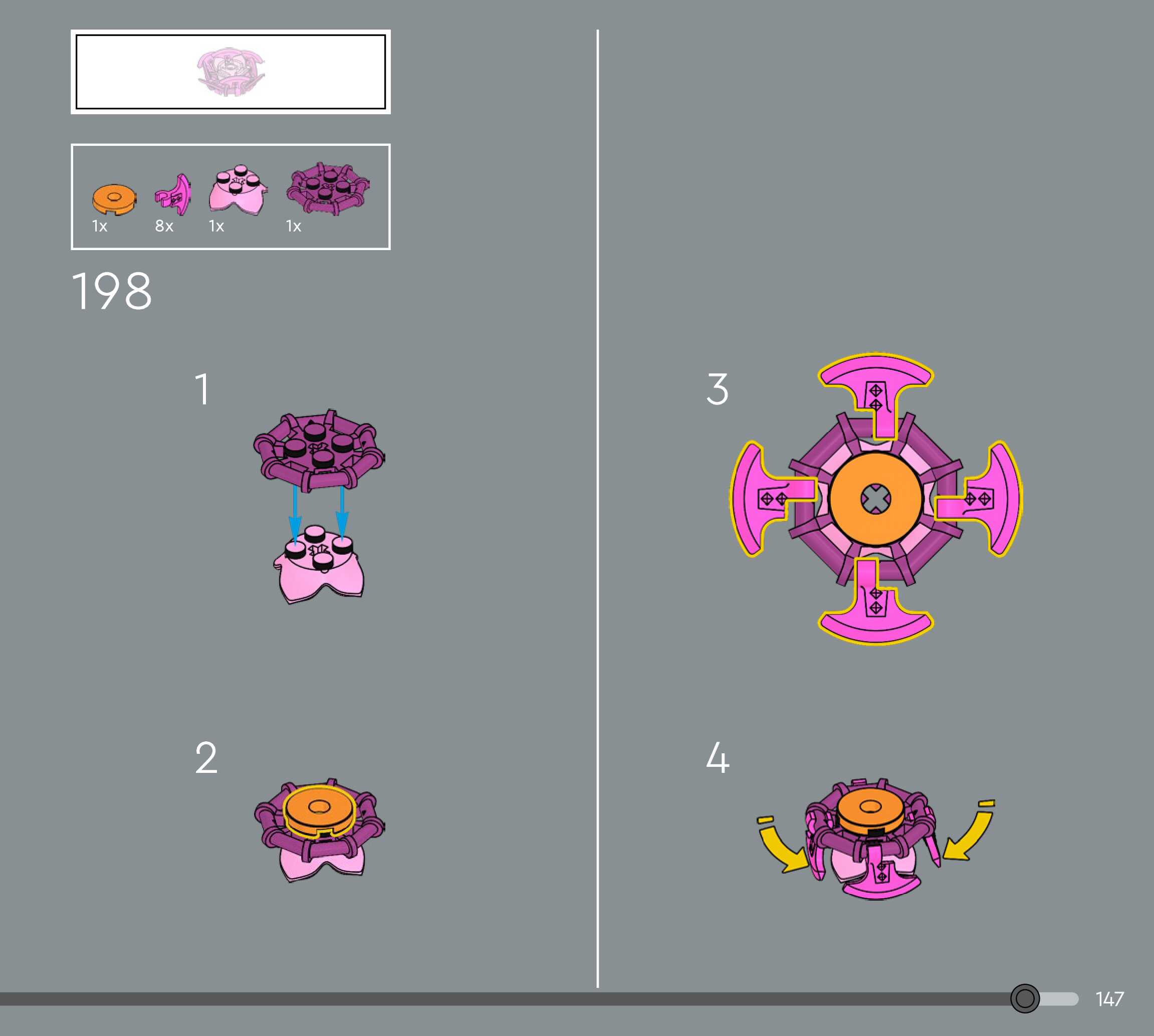 The assembly guide is prepared in a very understandable way for children and adult LEGO enthusiasts. A total of 160 picture galleries are shown, explaining the step-by-step construction stages for 1 different structures.