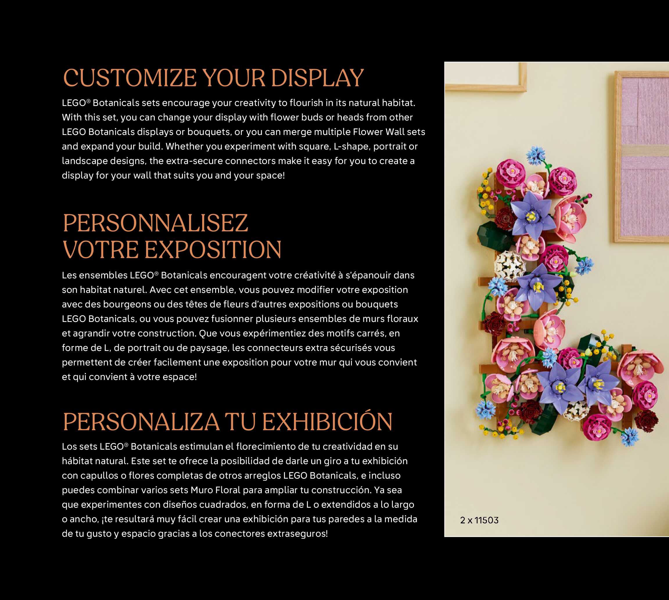 On this page you can find the original construction manual for the LEGO 11503 set. With the assembly manual you can easily learn how to build the Flower Wall step by step. The set was released in 2026.