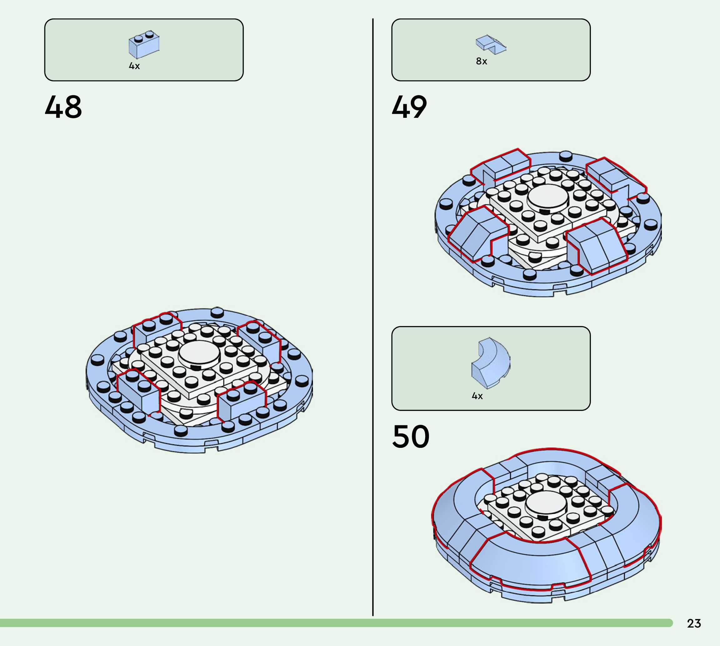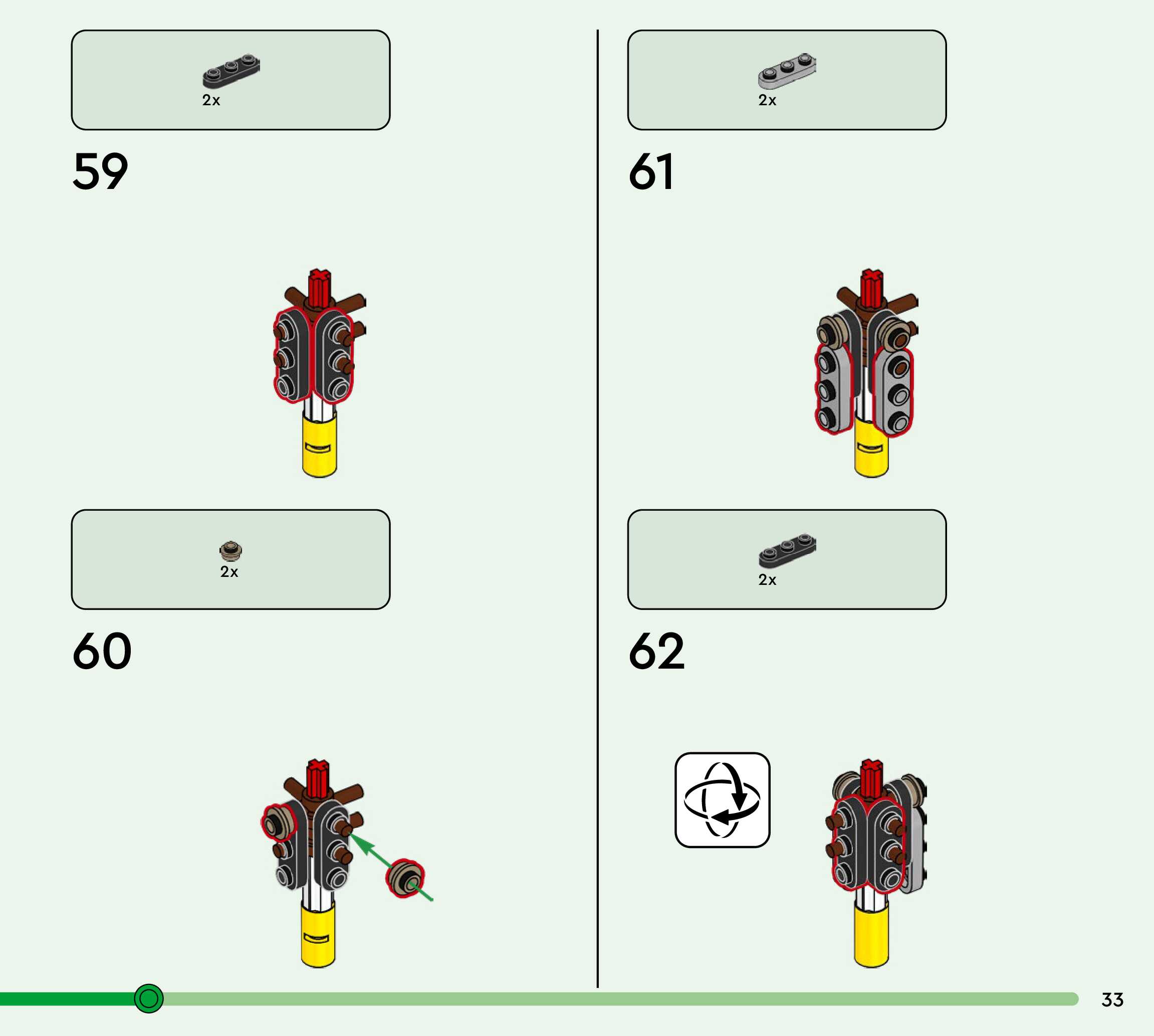 The assembly guide is prepared in a very understandable way for children and adult LEGO enthusiasts. A total of 60 picture galleries are shown, explaining the step-by-step construction stages for 1 different structures.