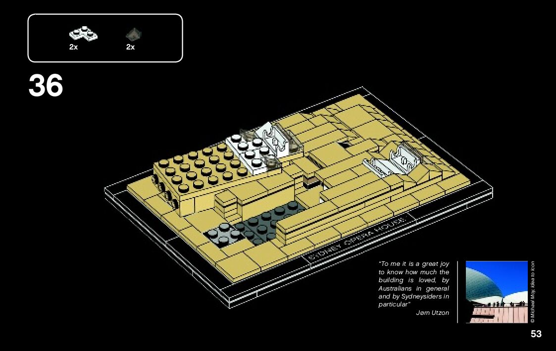 On this page you can find the original construction manual for the LEGO 21012 set. With the assembly manual you can easily learn how to build the 21012 Sydney Opera House step by step. The set was released in 2012.
