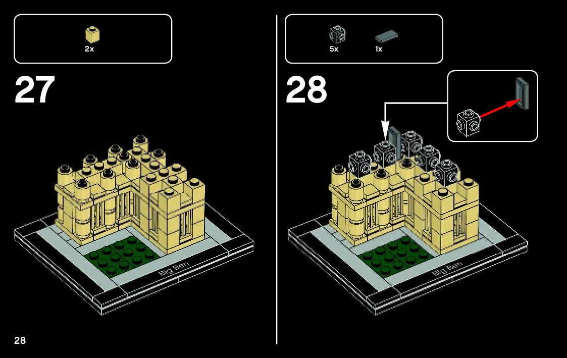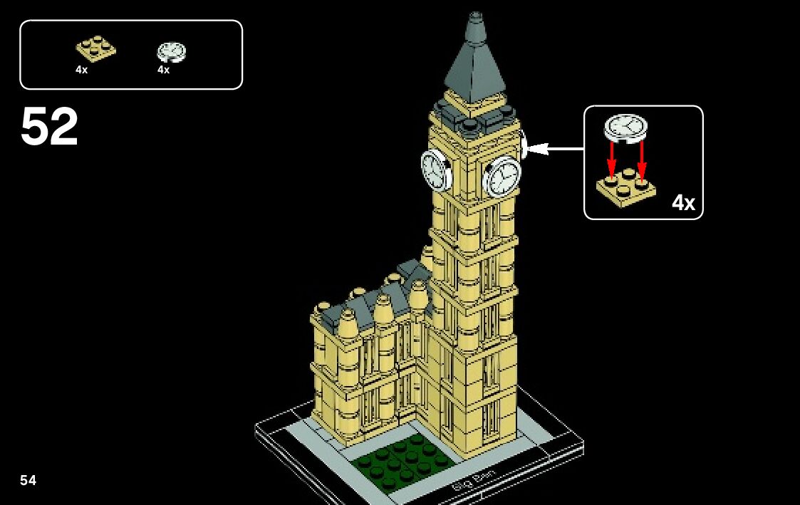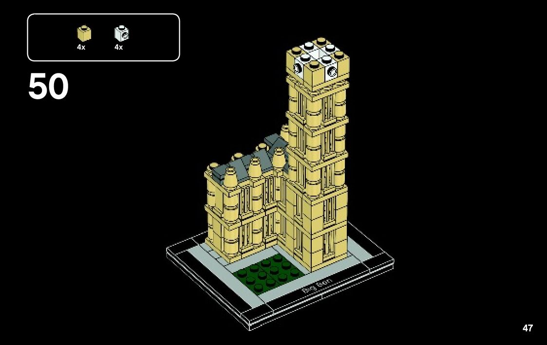 This page shares information about LEGO 21013 Big Ben manual, LEGO 21013 PDF instructions, LEGO 21013 Big Ben building guide online, How to build 21013 Big Ben LEGO.