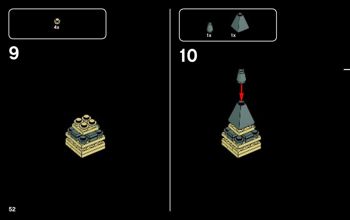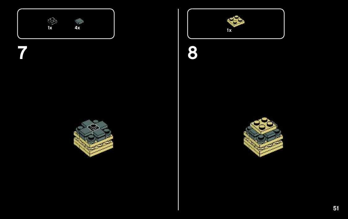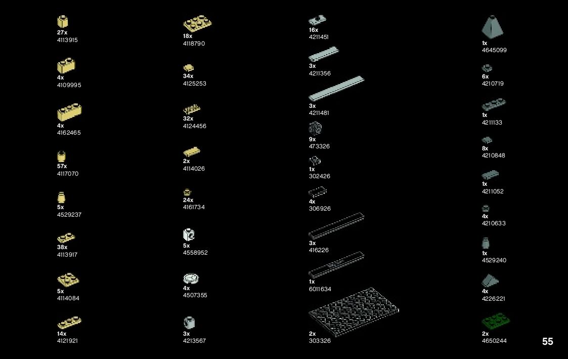 The assembly guide is prepared in a very understandable way for children and adult LEGO enthusiasts. A total of 120 picture galleries are shown, explaining the step-by-step construction stages for 1 different structures.