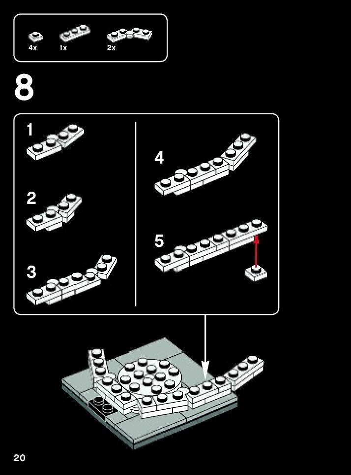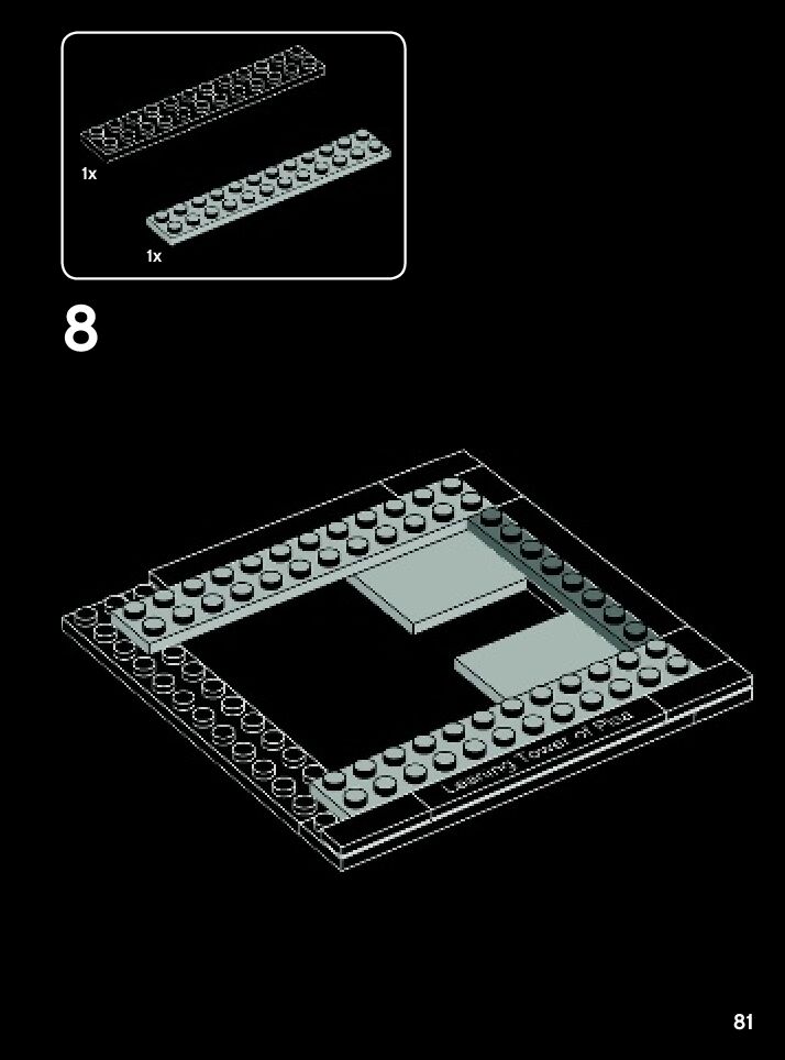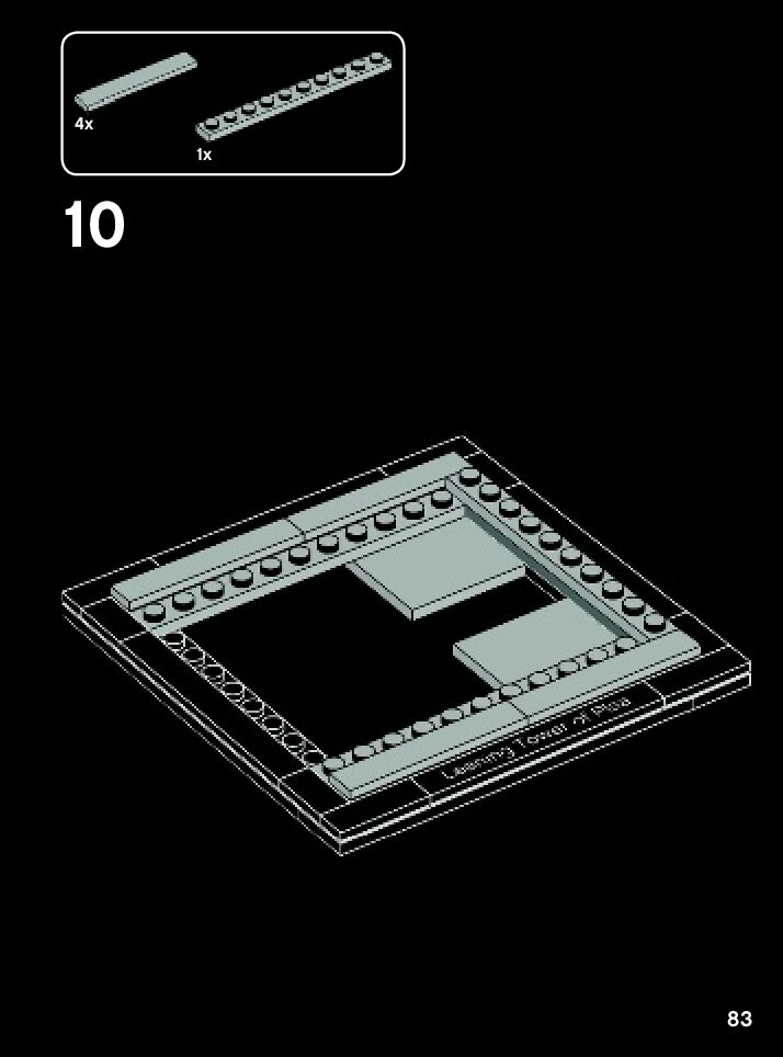 The assembly guide is prepared in a very understandable way for children and adult LEGO enthusiasts. A total of 100 picture galleries are shown, explaining the step-by-step construction stages for 1 different structures.