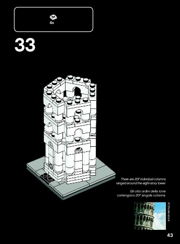 This page shares information about LEGO 21015 The Leaning Tower of Pisa manual, LEGO 21015 PDF instructions, LEGO 21015 The Leaning Tower of Pisa building guide online, How to build 21015 The Leaning Tower of Pisa LEGO.