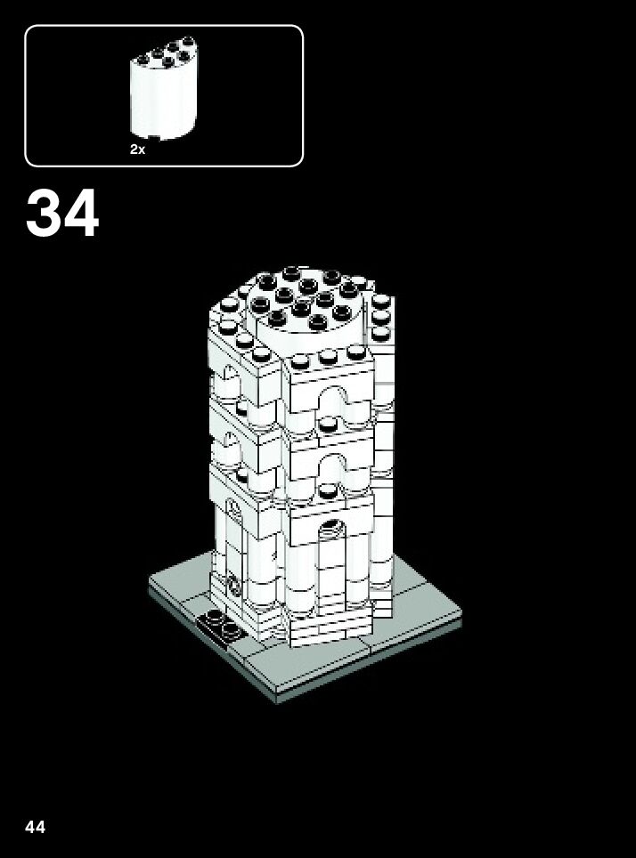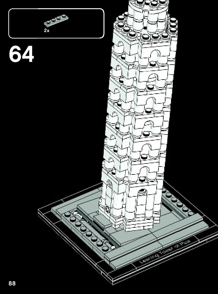 On this page you can find the original construction manual for the LEGO 21015 set. With the assembly manual you can easily learn how to build the 21015 The Leaning Tower of Pisa step by step. The set was released in 2013.