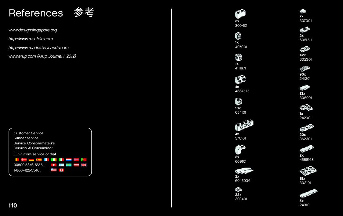 On this page you can find the original construction manual for the LEGO 21021 set. With the assembly manual you can easily learn how to build the 21021 Marina Bay Sands® step by step. The set was released in 2013.