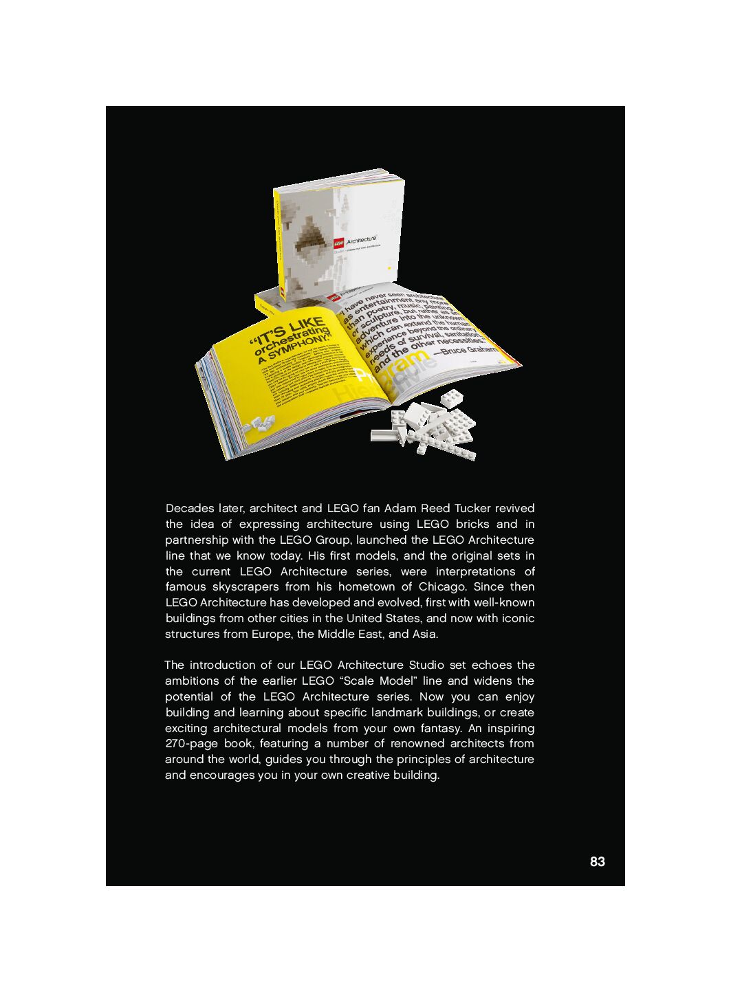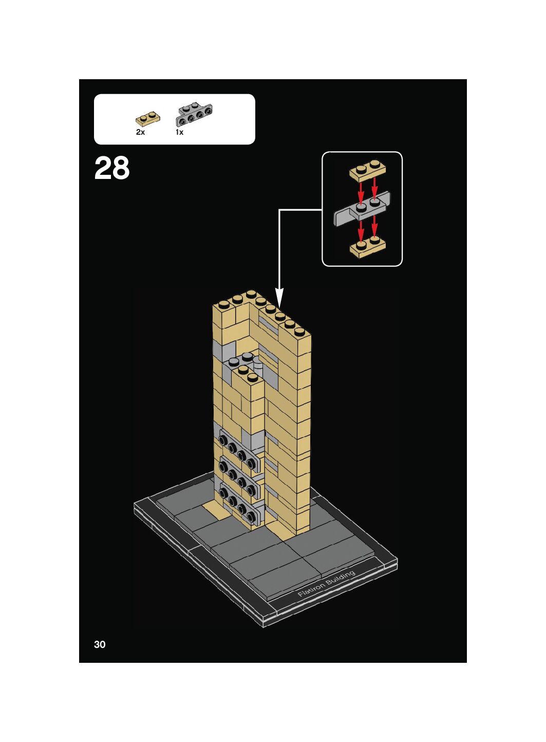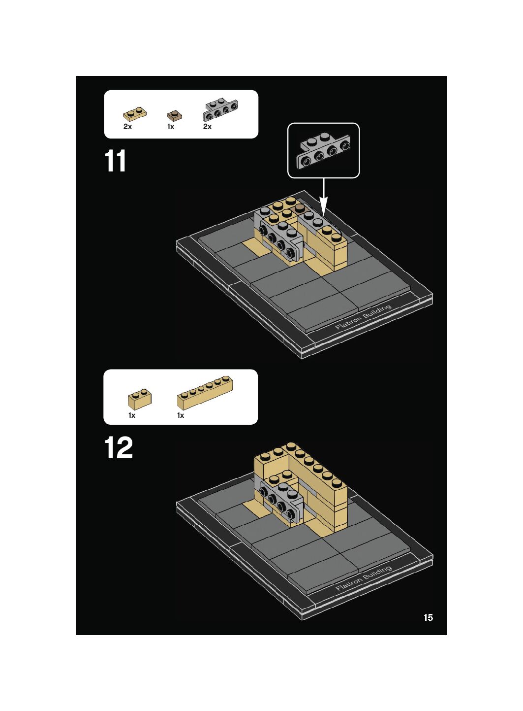 On this page you can find the original construction manual for the LEGO 21023 set. With the assembly manual you can easily learn how to build the 21023 Flatiron Building step by step. The set was released in 2015.