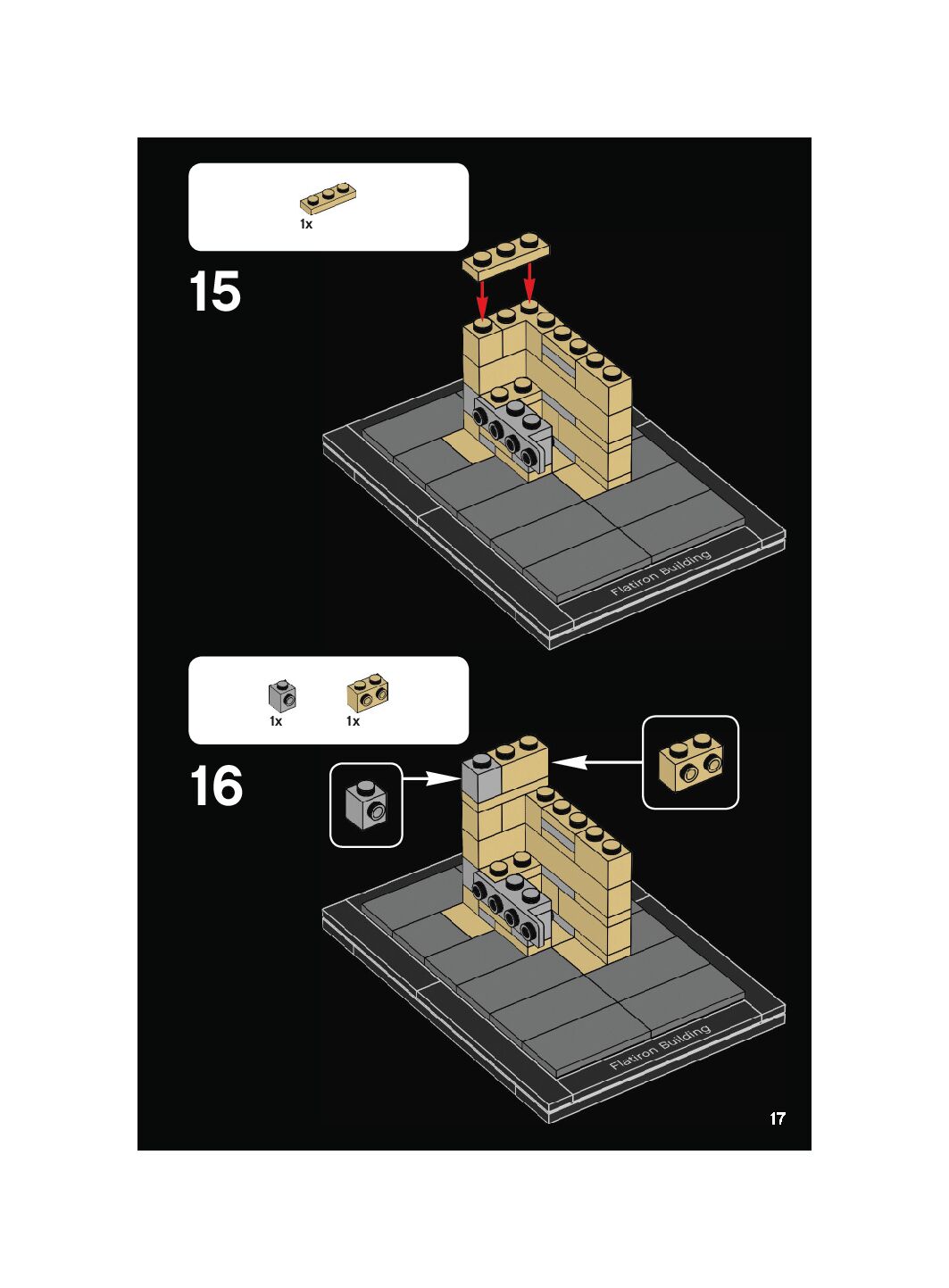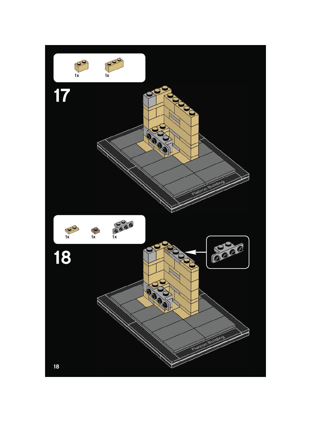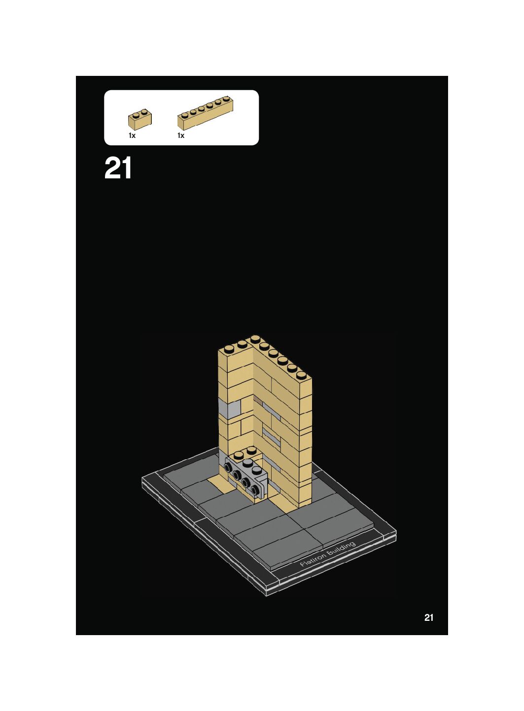 This page shares information about LEGO 21023 Flatiron Building manual, LEGO 21023 PDF instructions, LEGO 21023 Flatiron Building building guide online, How to build 21023 Flatiron Building LEGO.