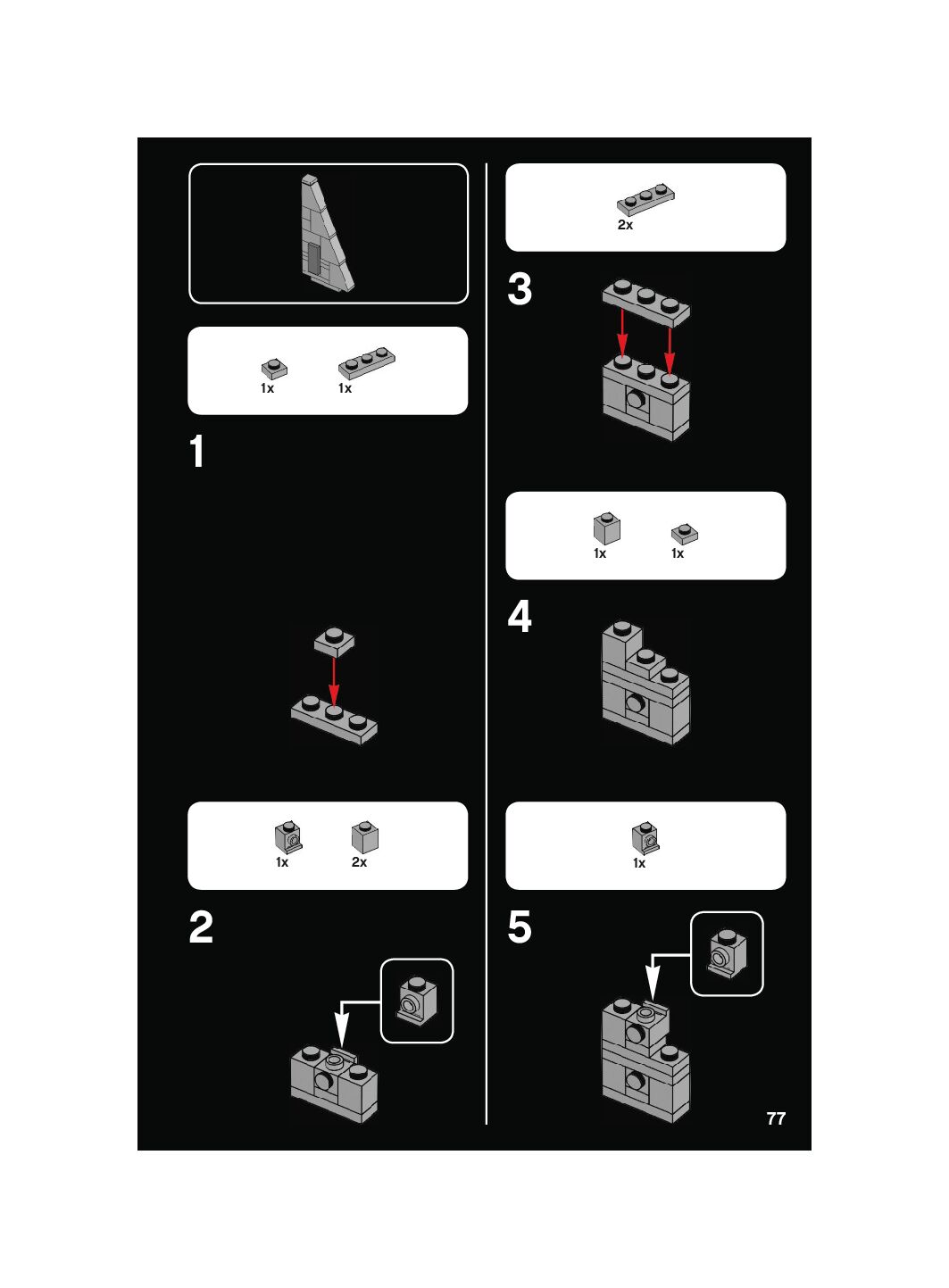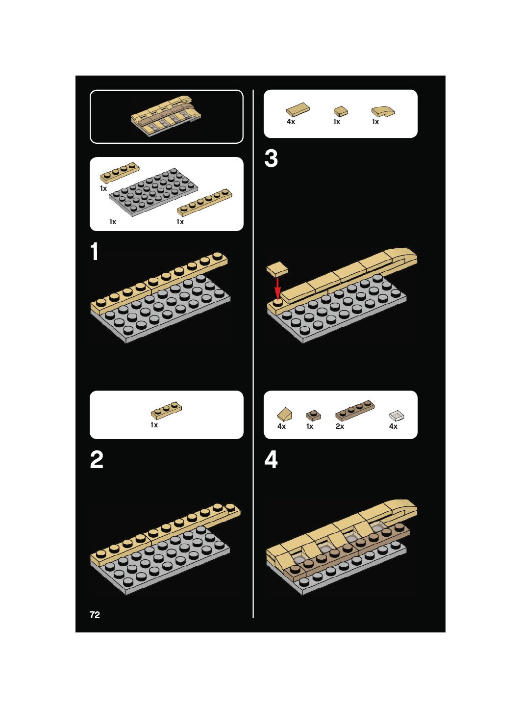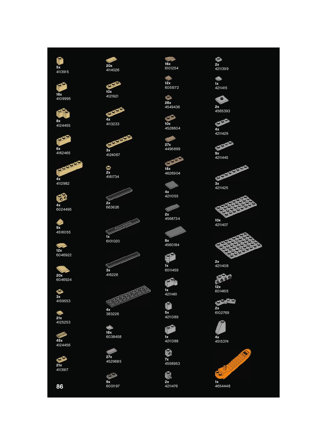 The assembly guide is prepared in a very understandable way for children and adult LEGO enthusiasts. A total of 88 picture galleries are shown, explaining the step-by-step construction stages for 1 different structures.