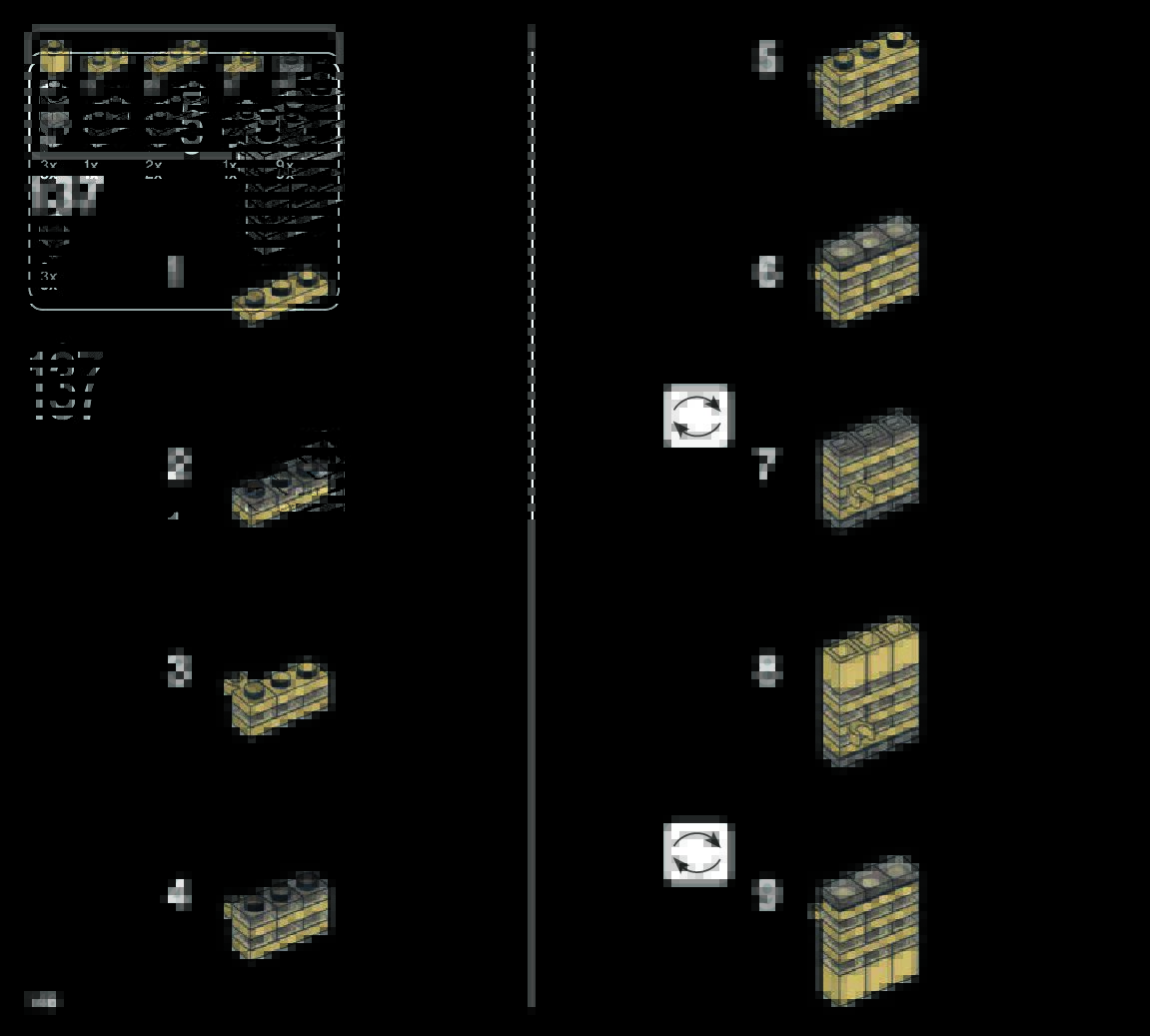 The assembly guide is prepared in a very understandable way for children and adult LEGO enthusiasts. A total of 168 picture galleries are shown, explaining the step-by-step construction stages for 1 different structures.