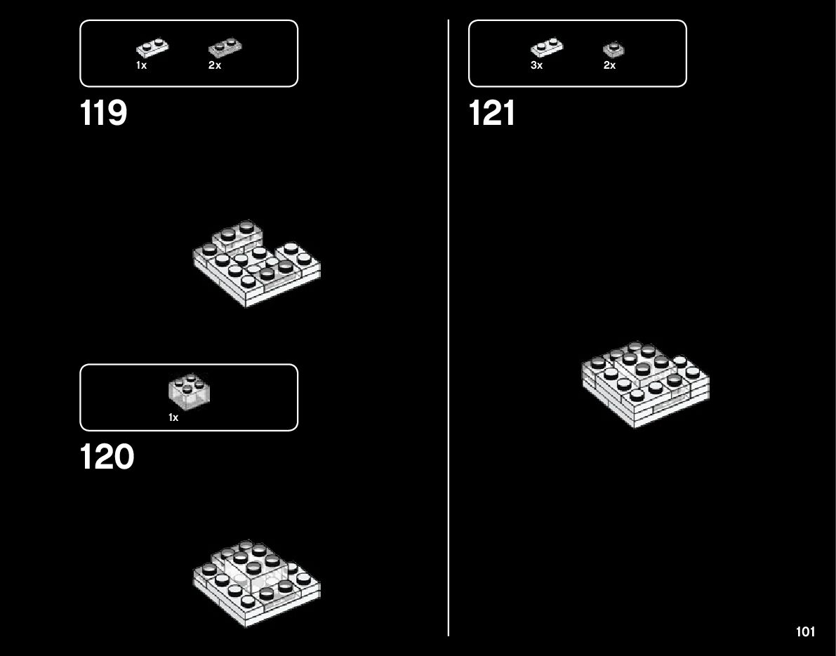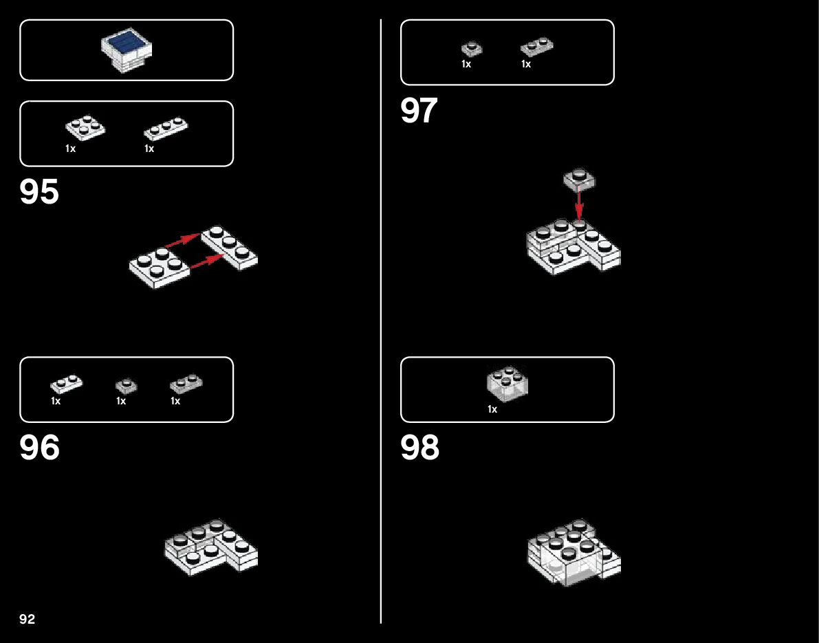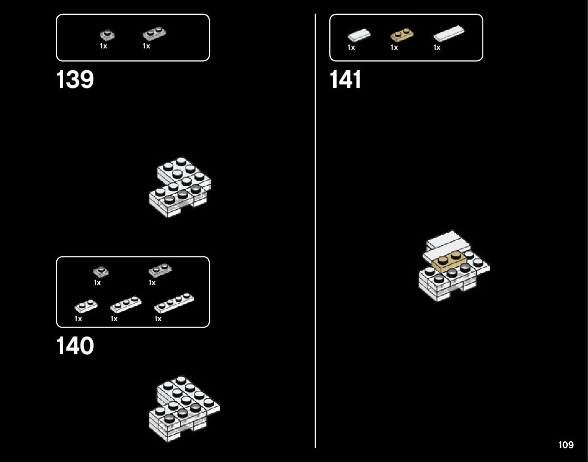 The assembly guide is prepared in a very understandable way for children and adult LEGO enthusiasts. A total of 182 picture galleries are shown, explaining the step-by-step construction stages for 3 different structures.