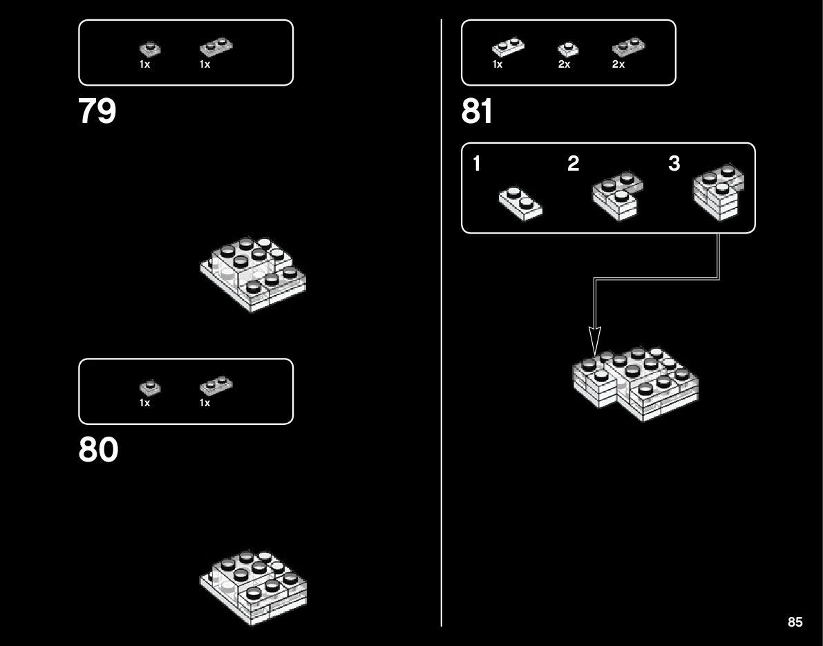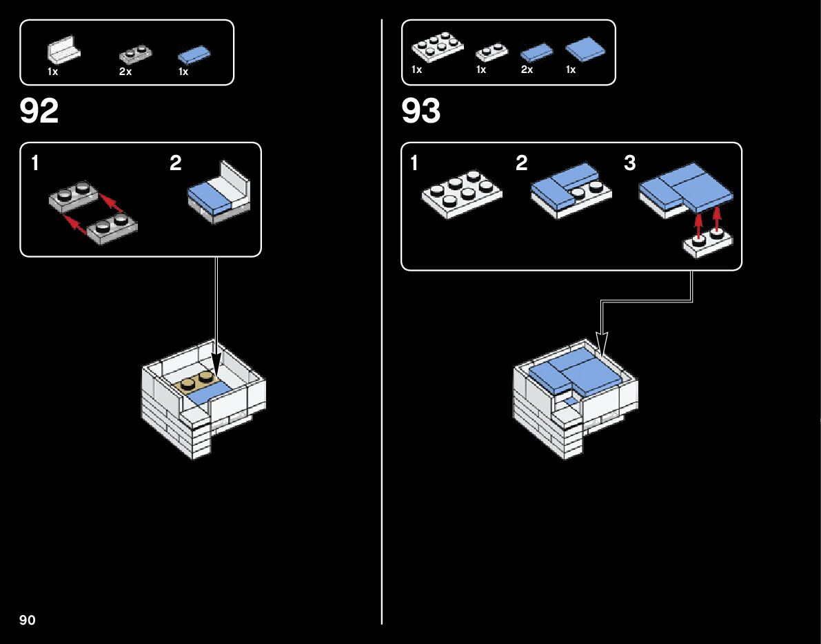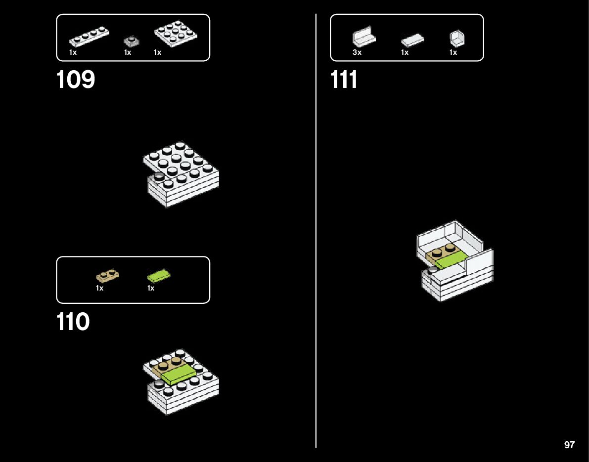 The assembly guide is prepared in a very understandable way for children and adult LEGO enthusiasts. A total of 182 picture galleries are shown, explaining the step-by-step construction stages for 3 different structures.