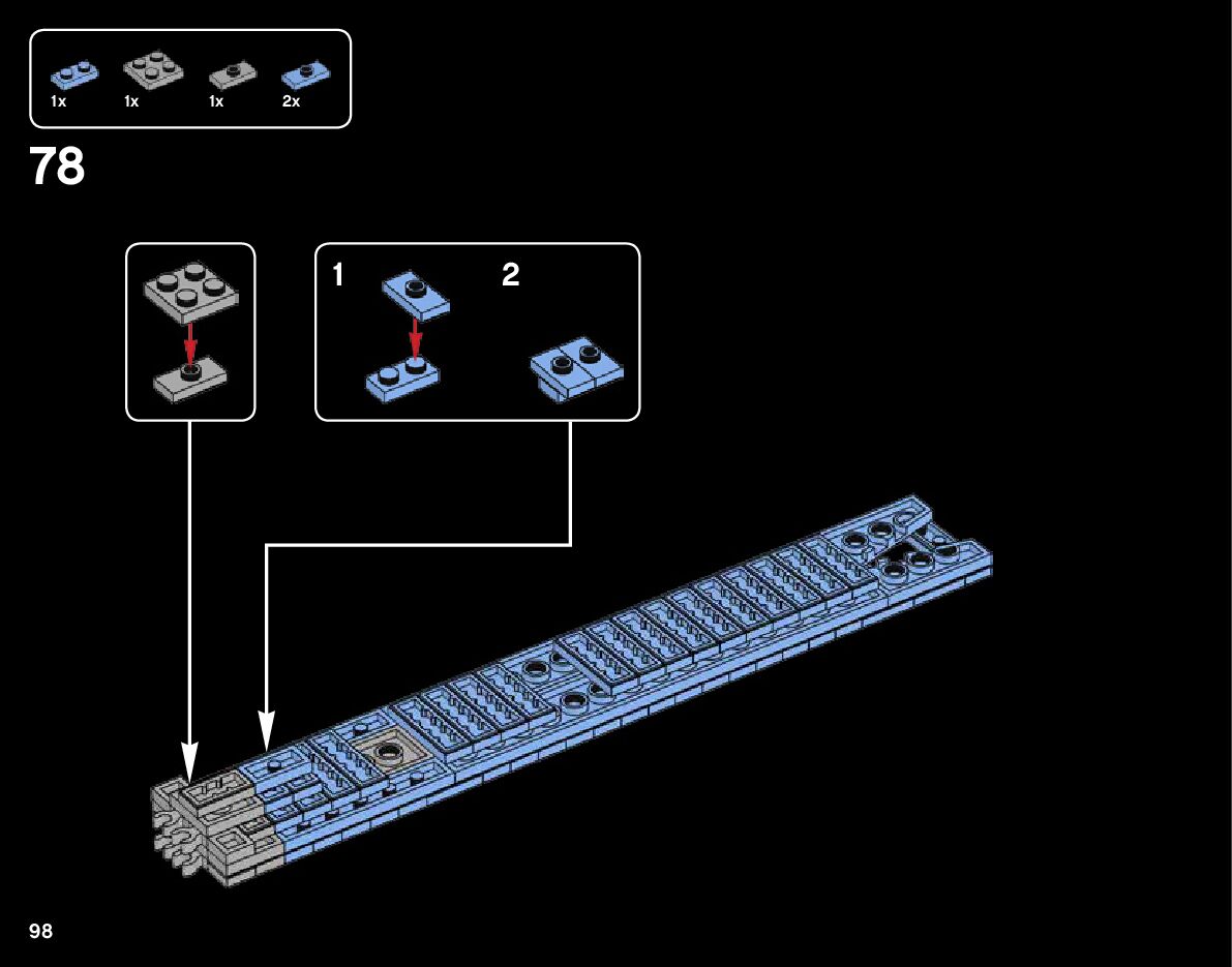 The assembly guide is prepared in a very understandable way for children and adult LEGO enthusiasts. A total of 160 picture galleries are shown, explaining the step-by-step construction stages for 1 different structures.