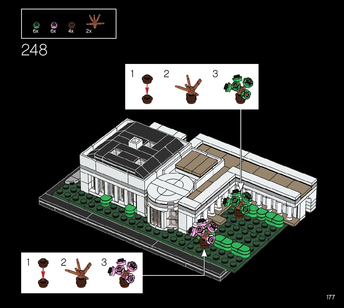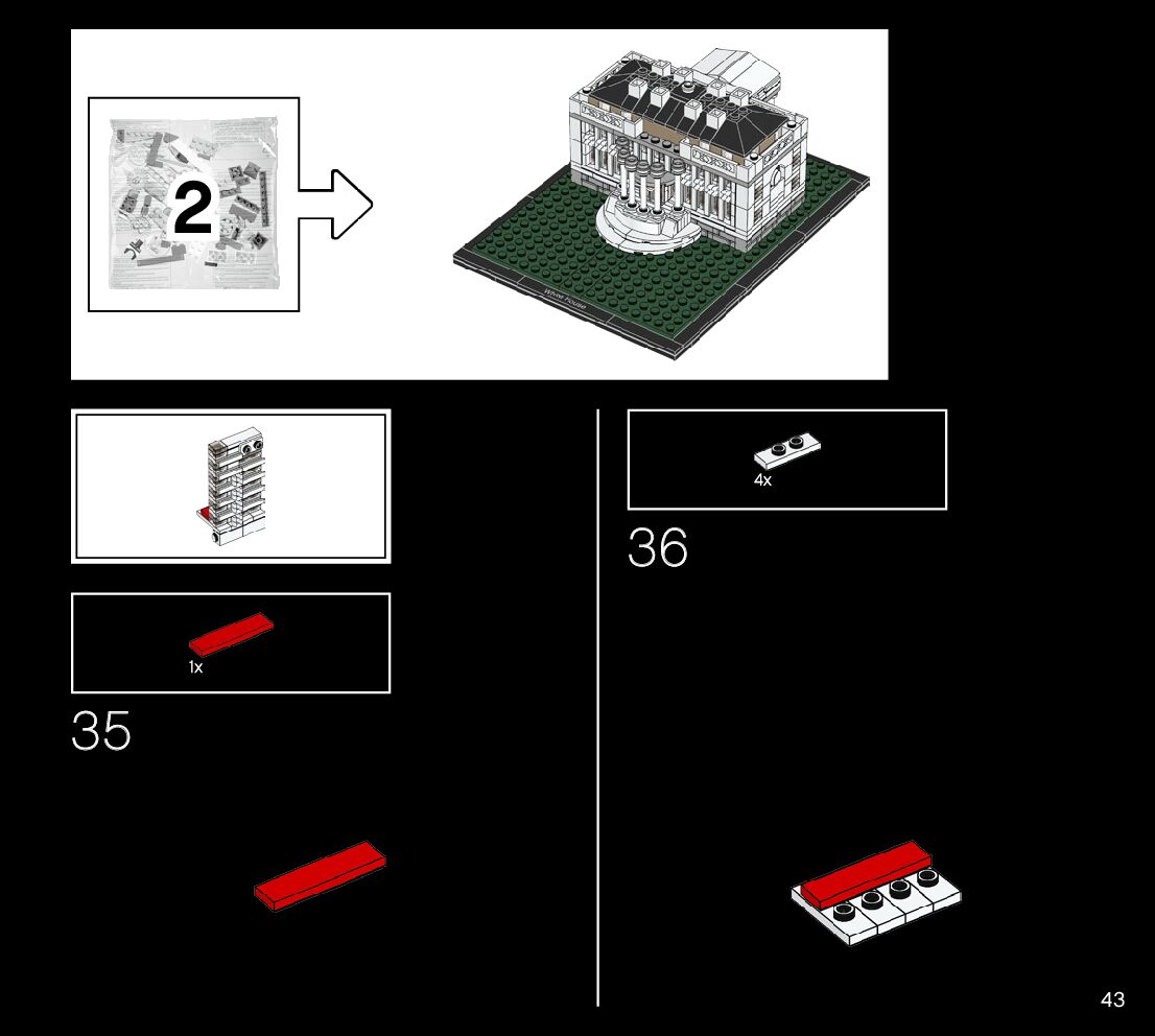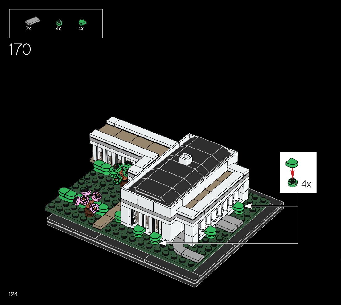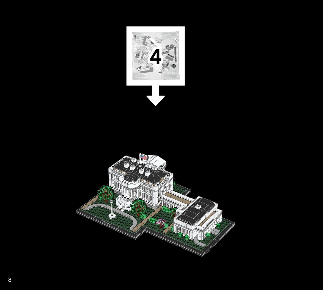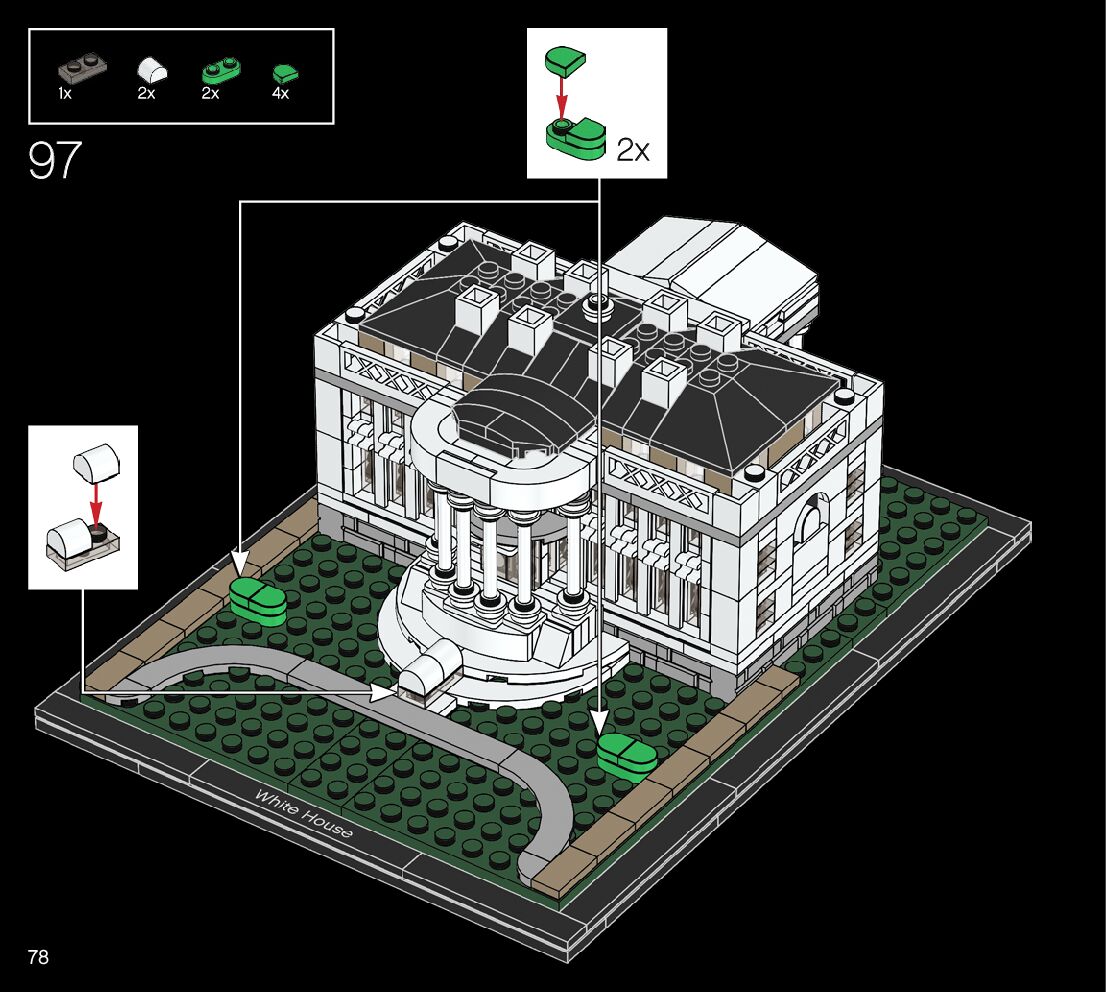 This page shares information about LEGO 21054 The White House manual, LEGO 21054 PDF instructions, LEGO 21054 The White House building guide online, How to build 21054 The White House LEGO.