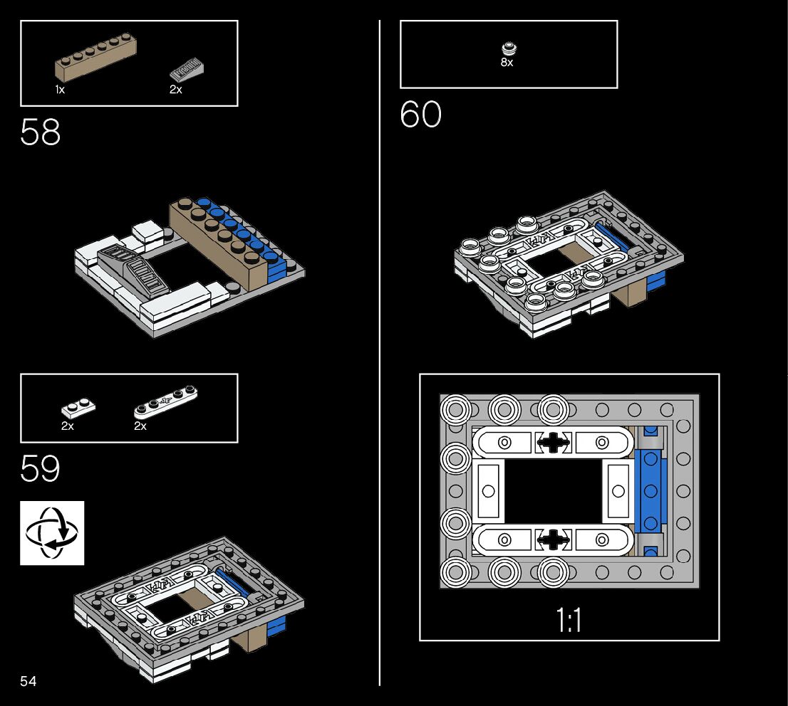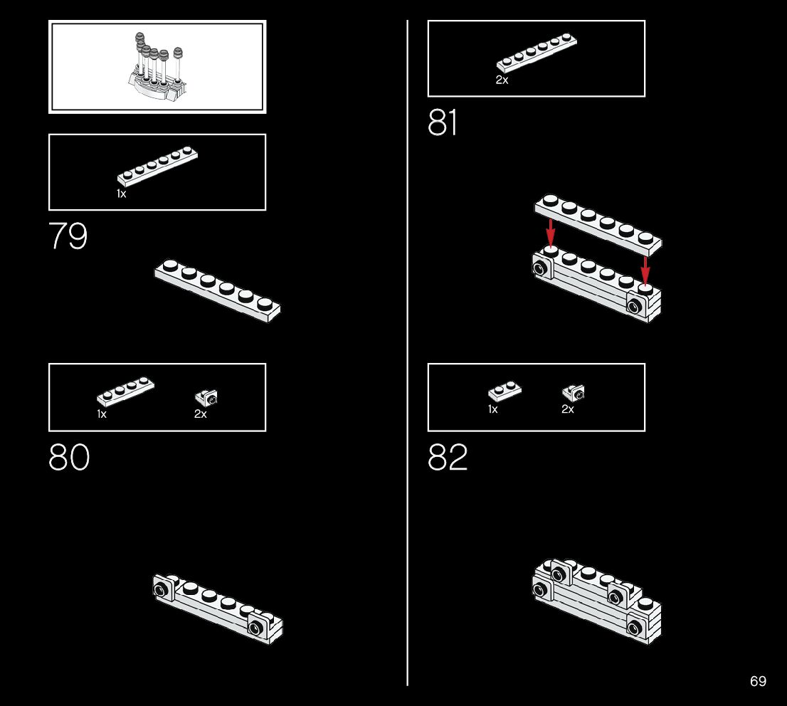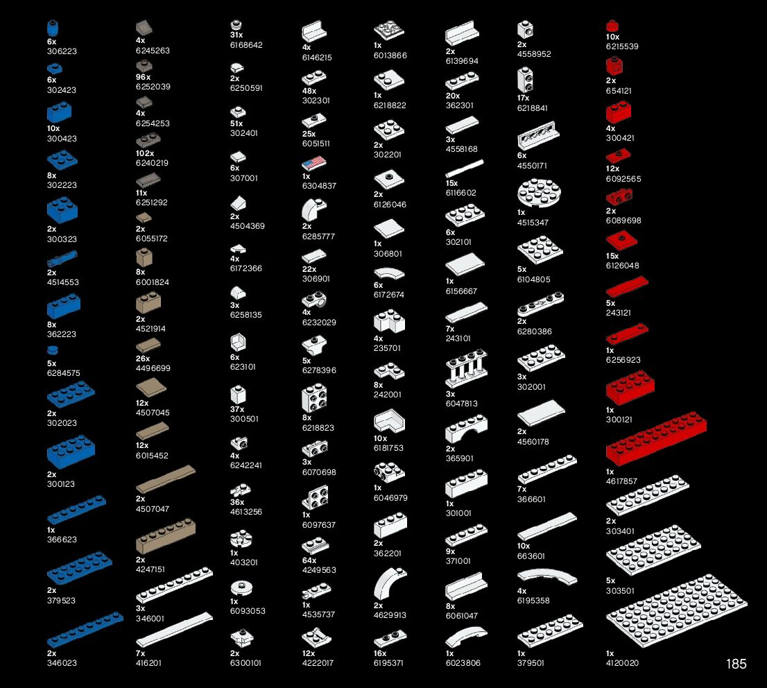 The assembly guide is prepared in a very understandable way for children and adult LEGO enthusiasts. A total of 188 picture galleries are shown, explaining the step-by-step construction stages for 1 different structures.