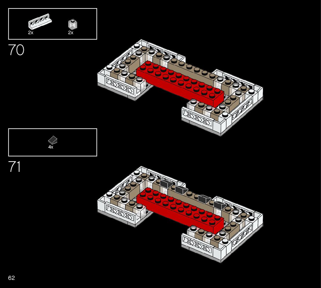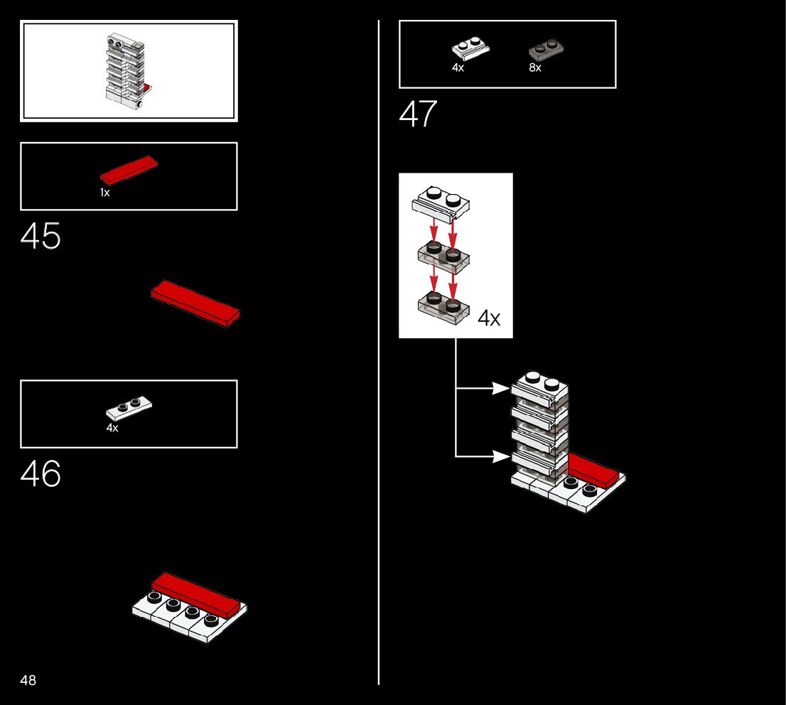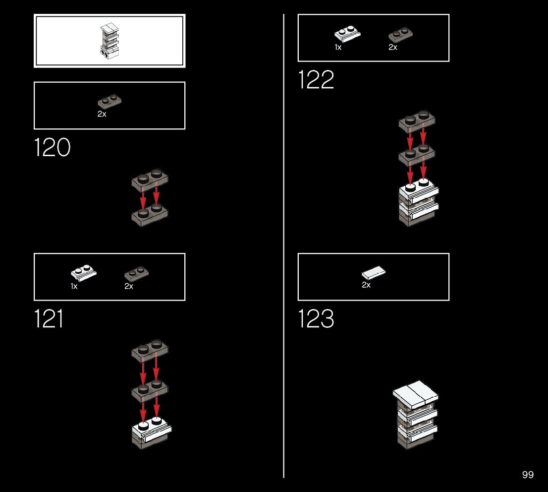 The assembly guide is prepared in a very understandable way for children and adult LEGO enthusiasts. A total of 188 picture galleries are shown, explaining the step-by-step construction stages for 1 different structures.