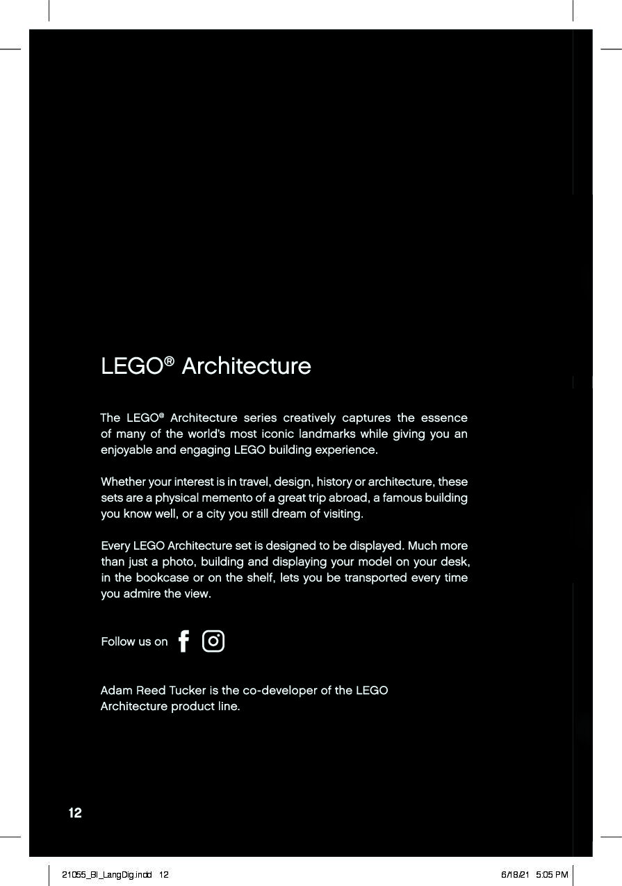 On this page you can find the original construction manual for the LEGO 21055 set. With the assembly manual you can easily learn how to build the 21055 Burj Khalifa step by step. The set was released in 2019.