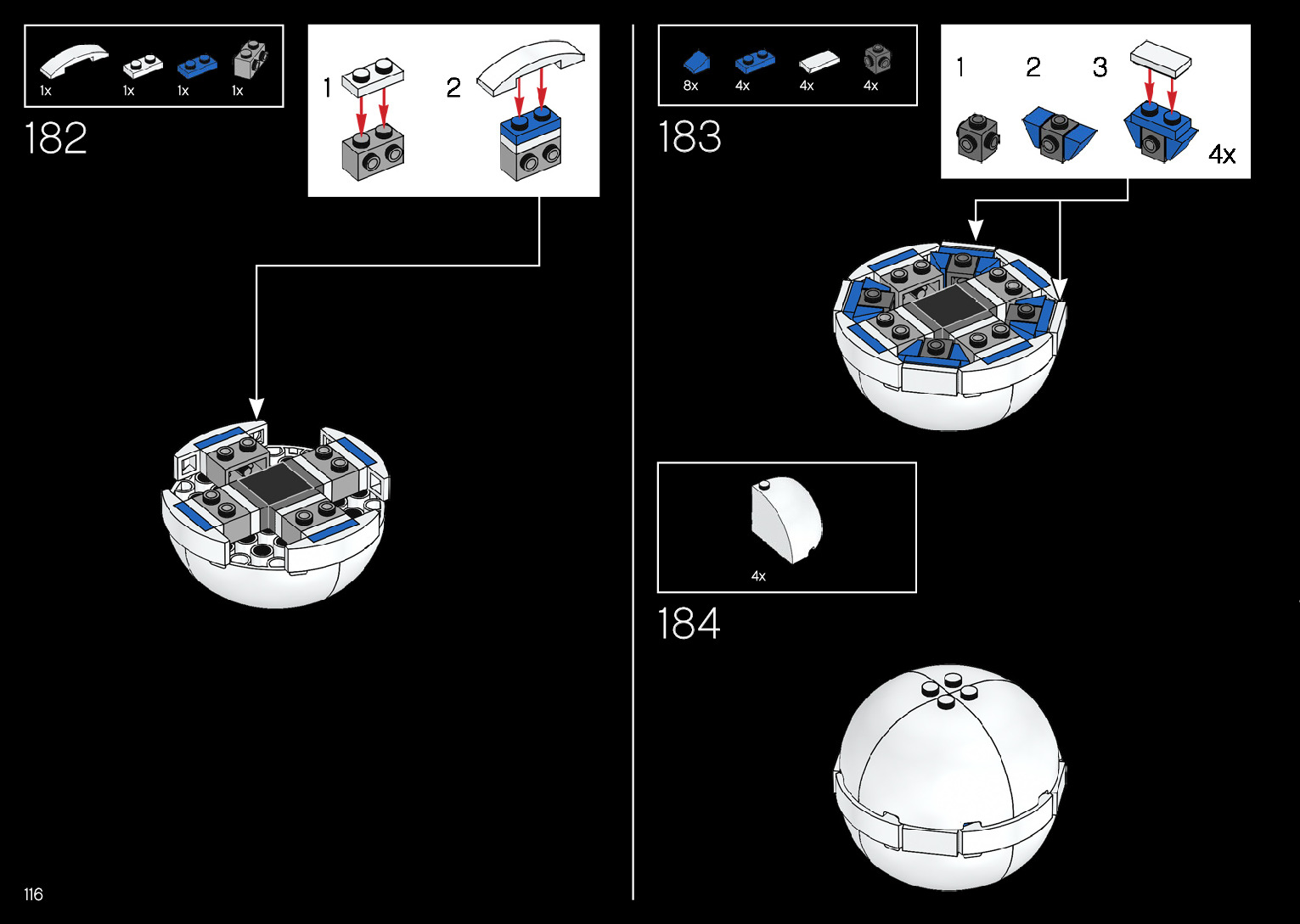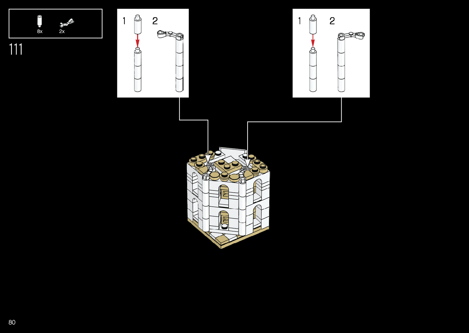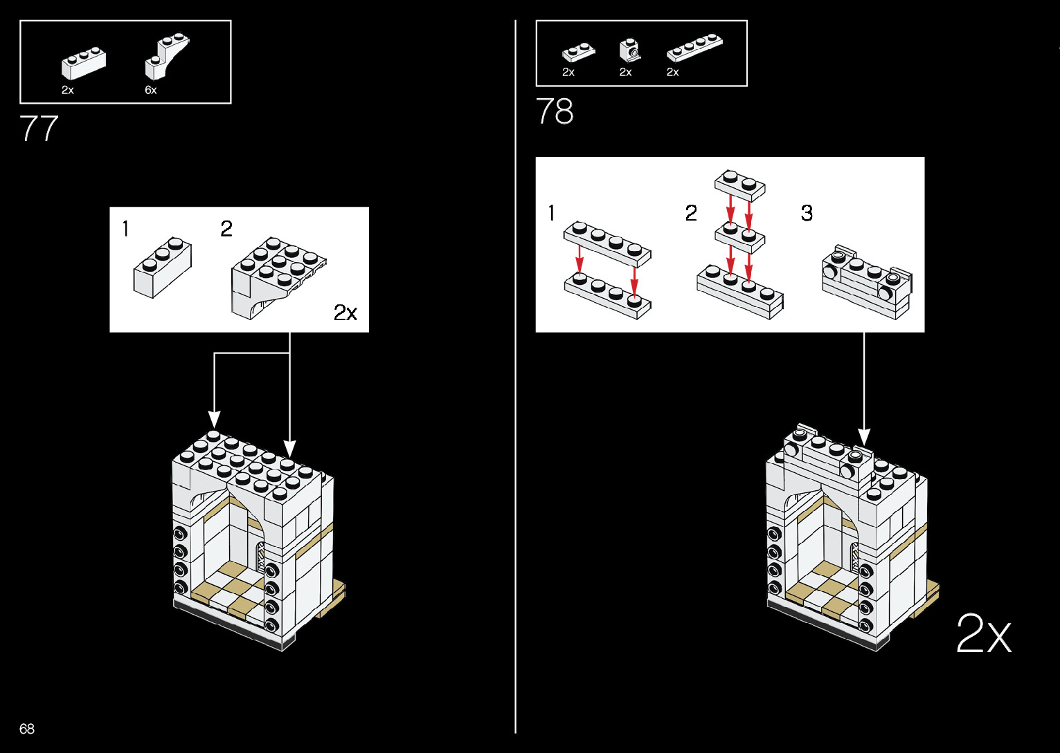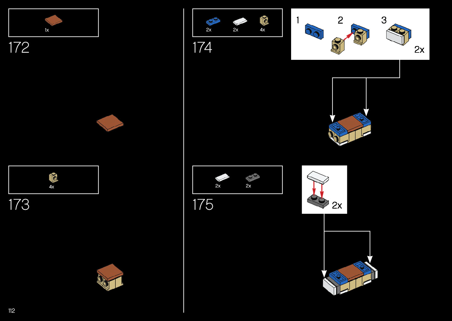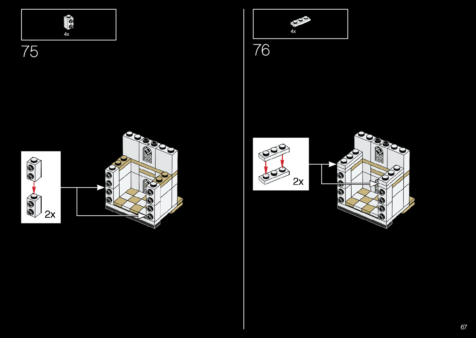 The assembly guide is prepared in a very understandable way for children and adult LEGO enthusiasts. A total of 136 picture galleries are shown, explaining the step-by-step construction stages for 1 different structures.