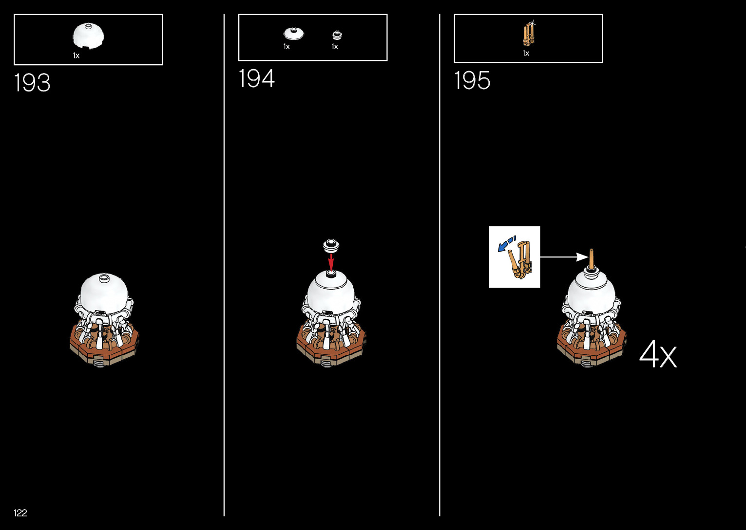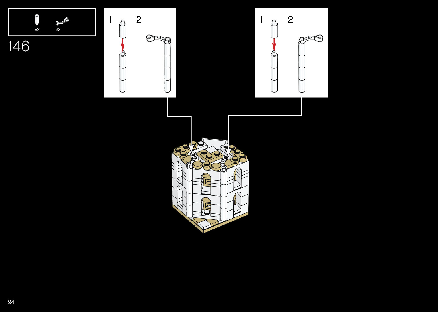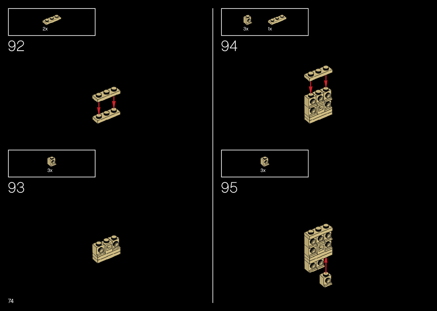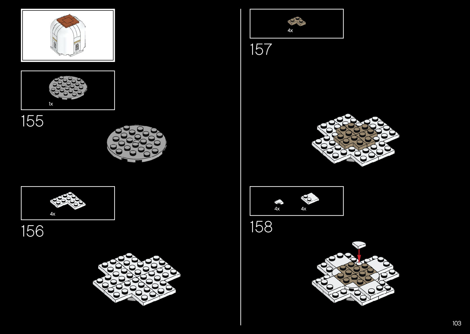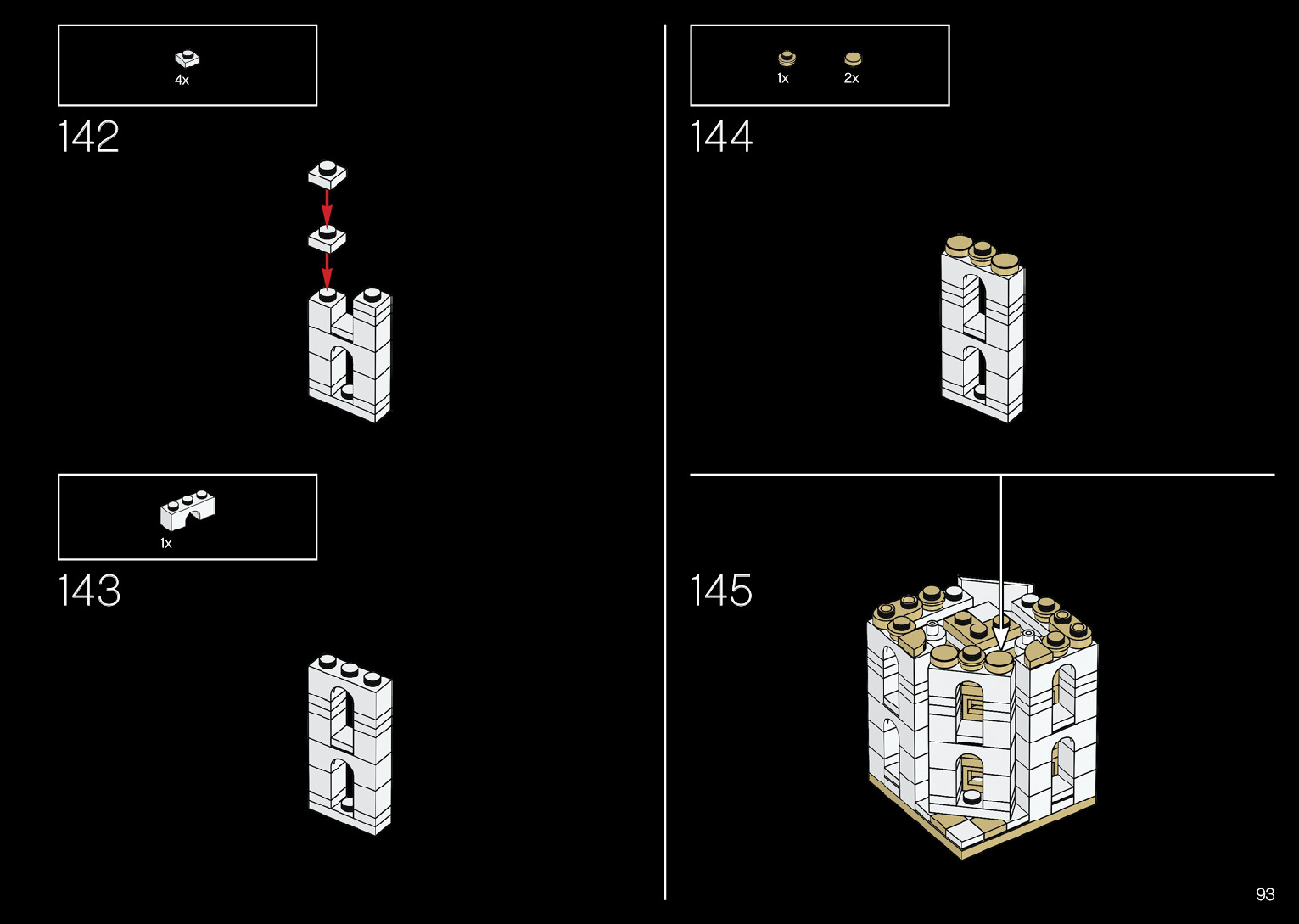 The assembly guide is prepared in a very understandable way for children and adult LEGO enthusiasts. A total of 136 picture galleries are shown, explaining the step-by-step construction stages for 1 different structures.