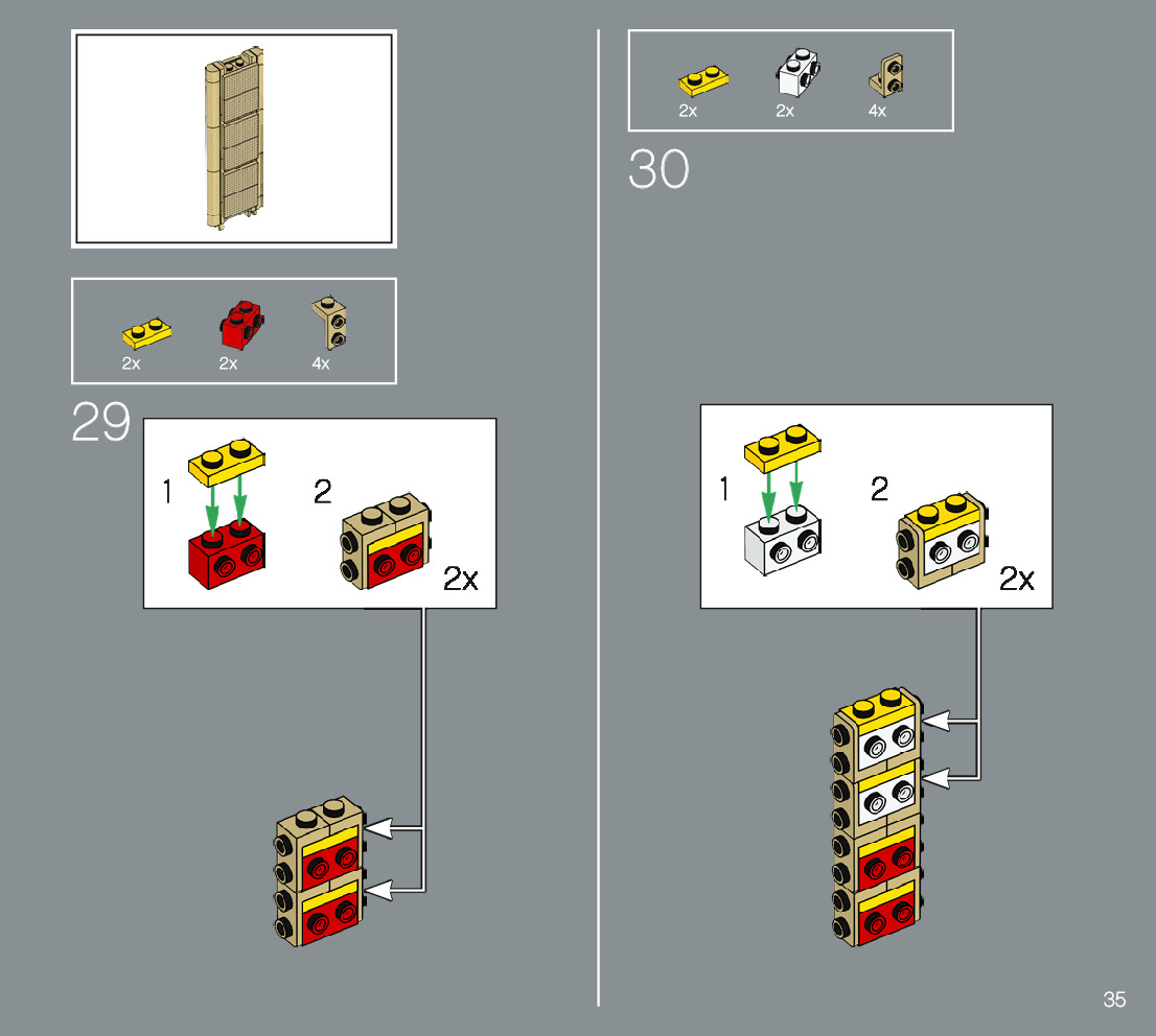 The assembly guide is prepared in a very understandable way for children and adult LEGO enthusiasts. A total of 104 picture galleries are shown, explaining the step-by-step construction stages for 1 different structures.