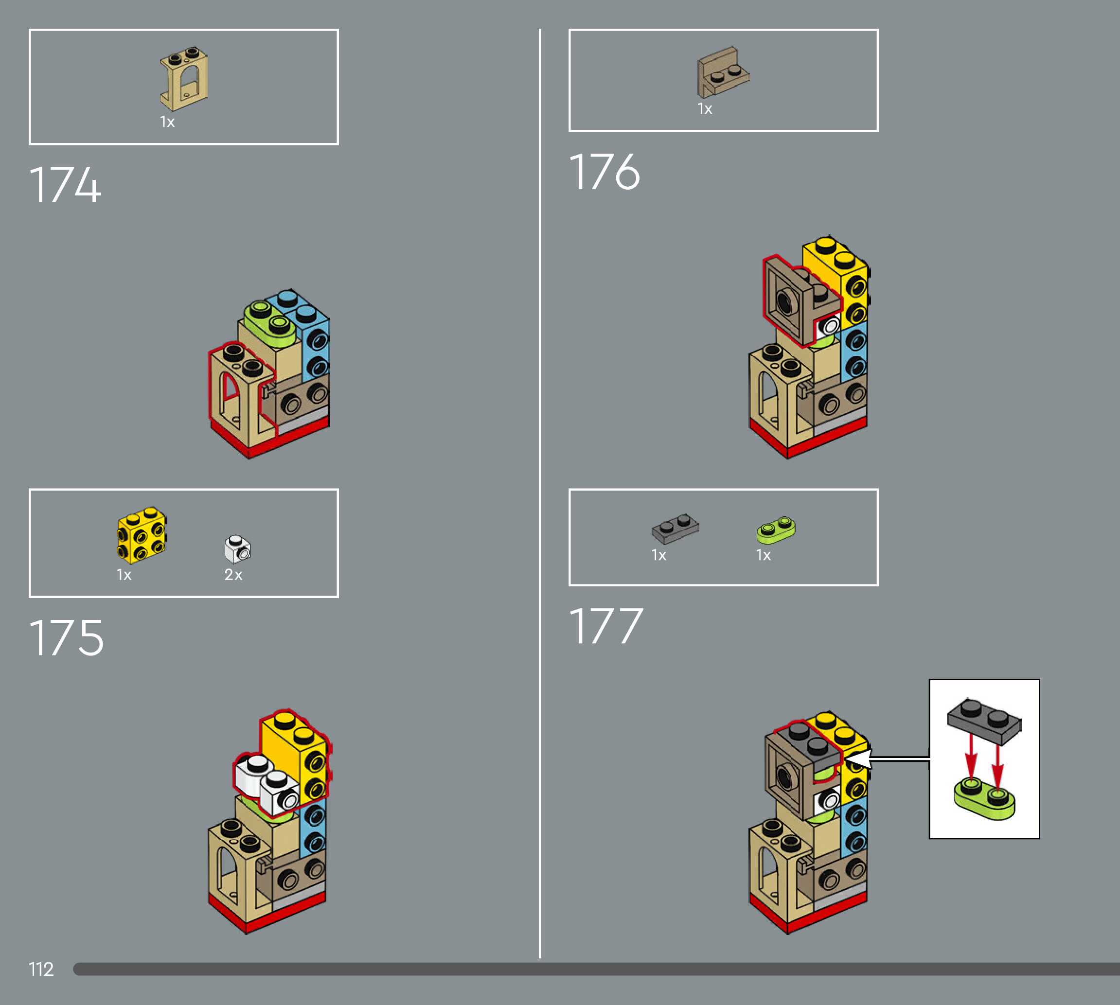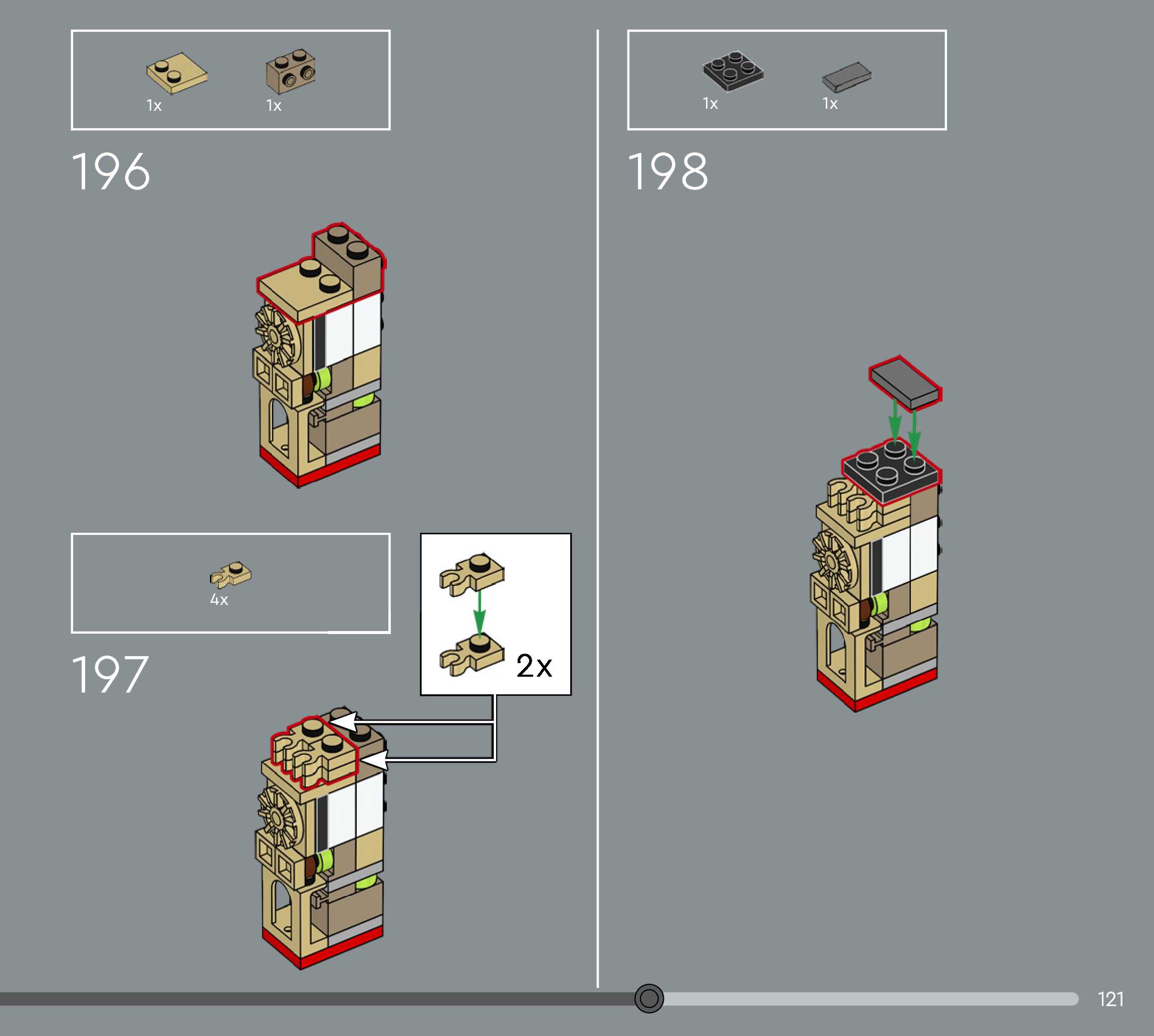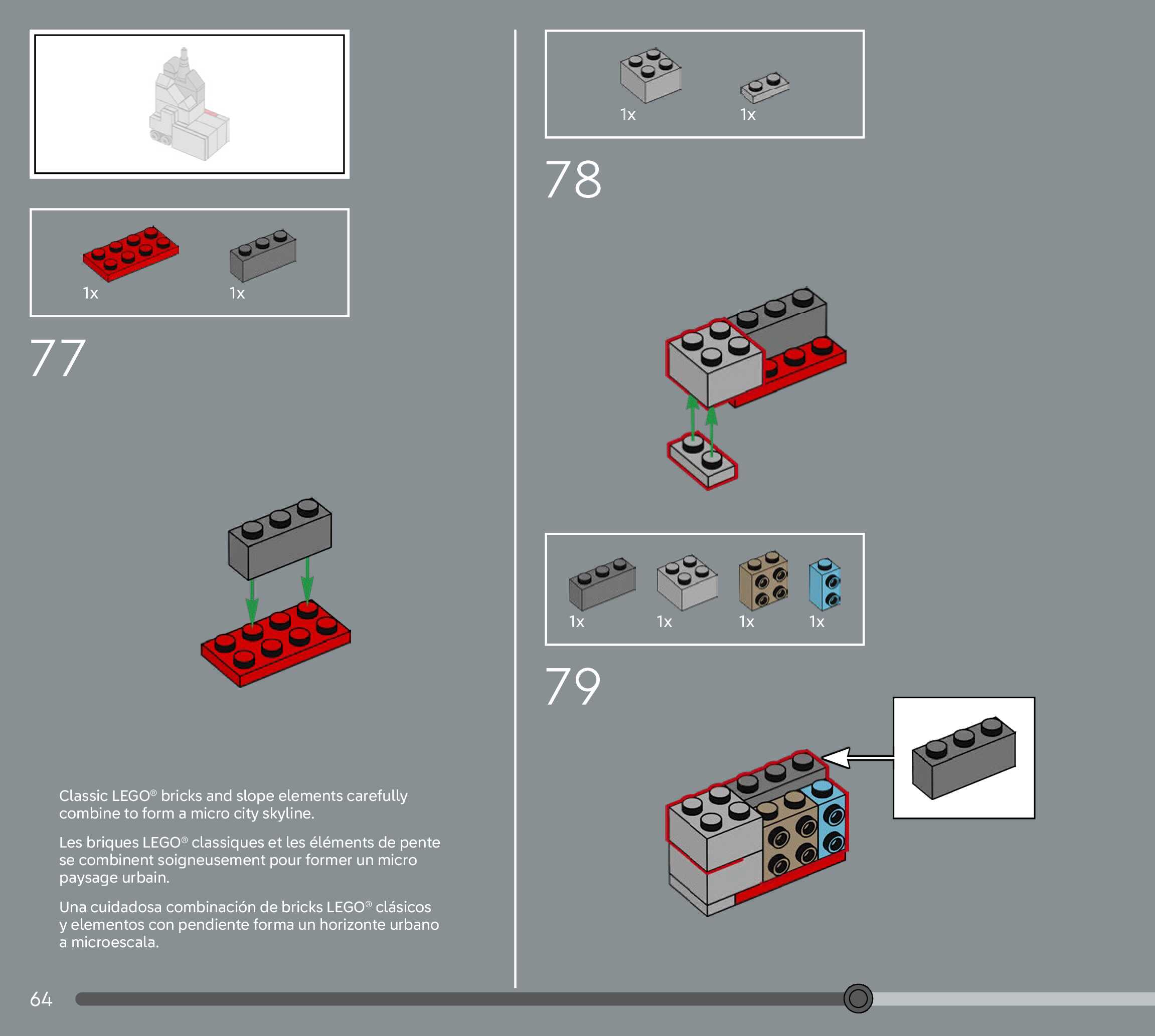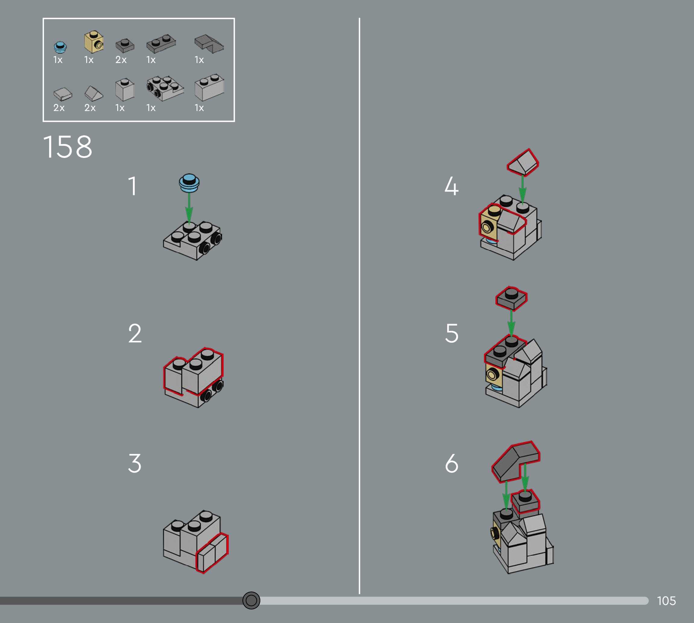 The assembly guide is prepared in a very understandable way for children and adult LEGO enthusiasts. A total of 156 picture galleries are shown, explaining the step-by-step construction stages for 1 different structures.