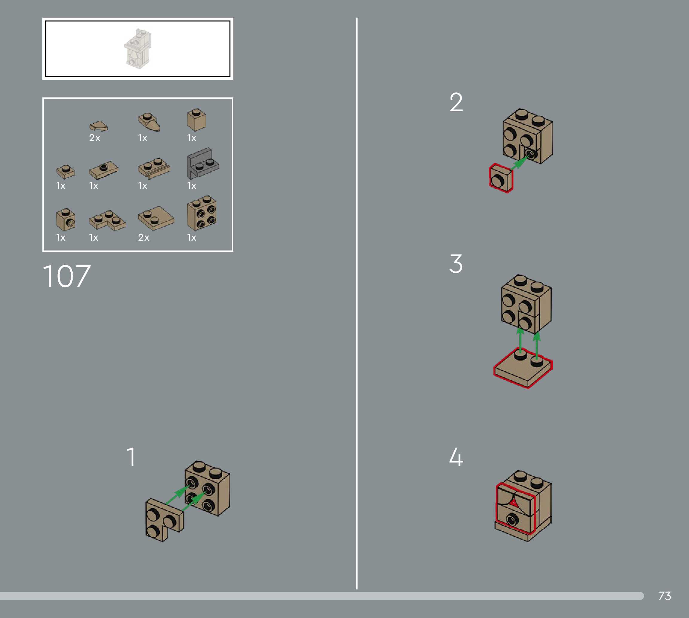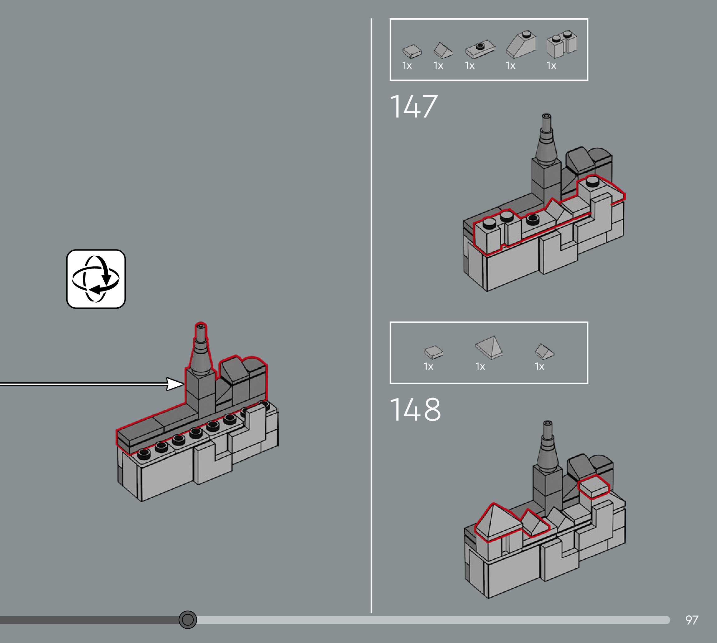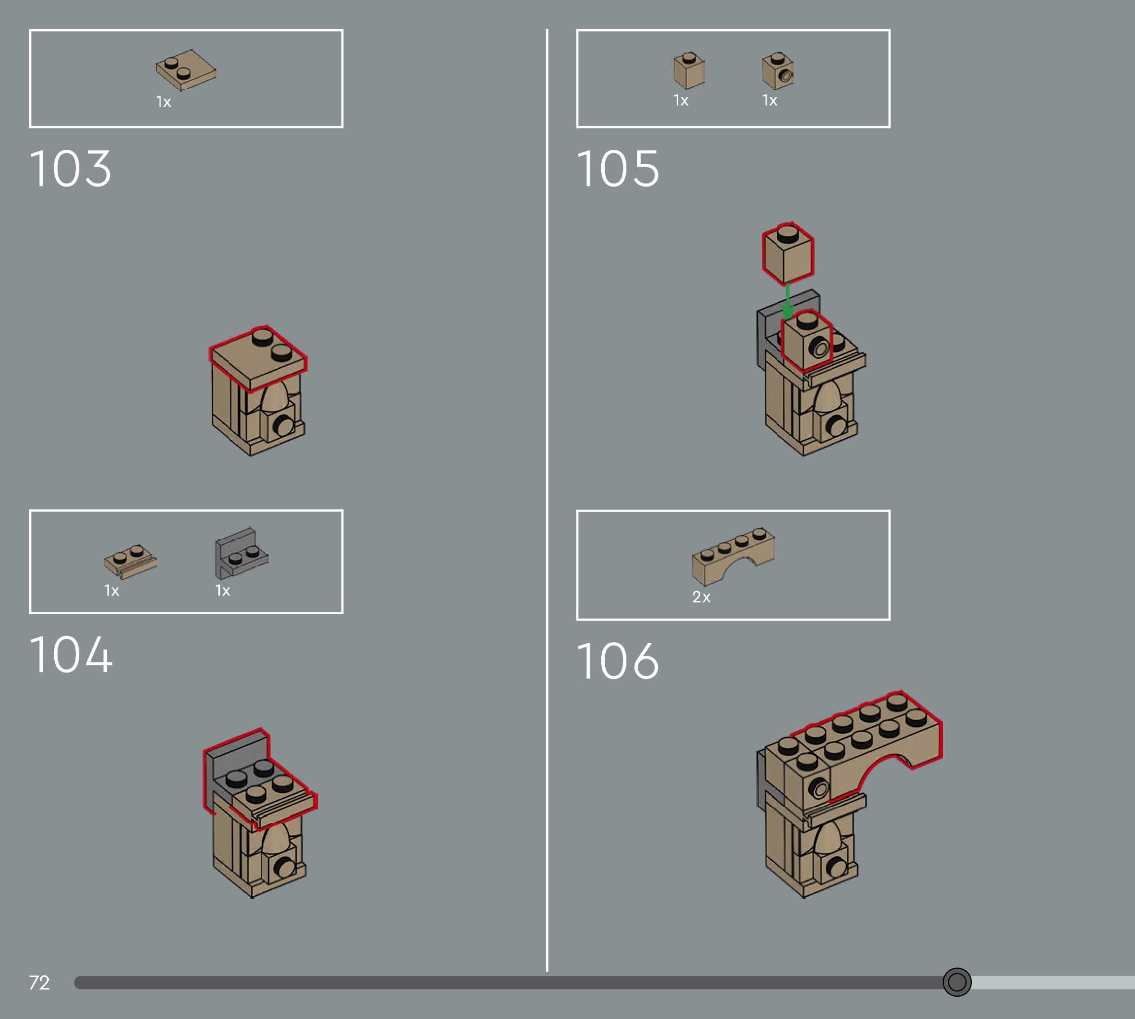 The assembly guide is prepared in a very understandable way for children and adult LEGO enthusiasts. A total of 156 picture galleries are shown, explaining the step-by-step construction stages for 1 different structures.