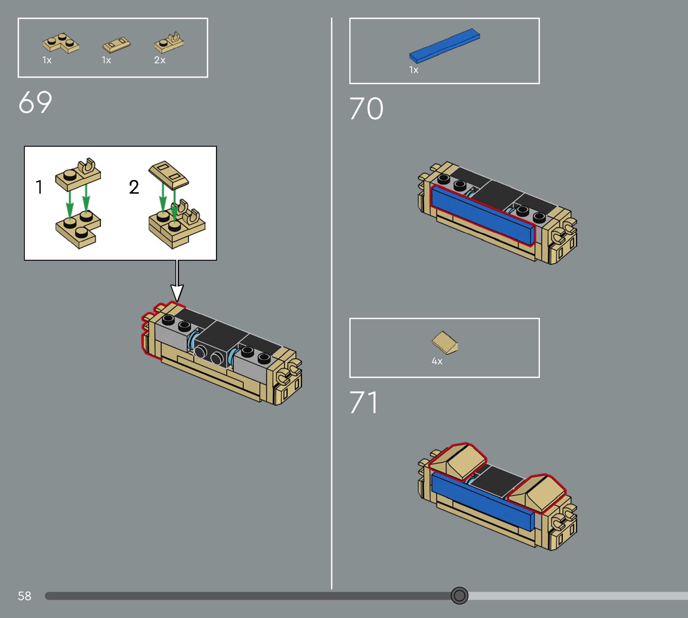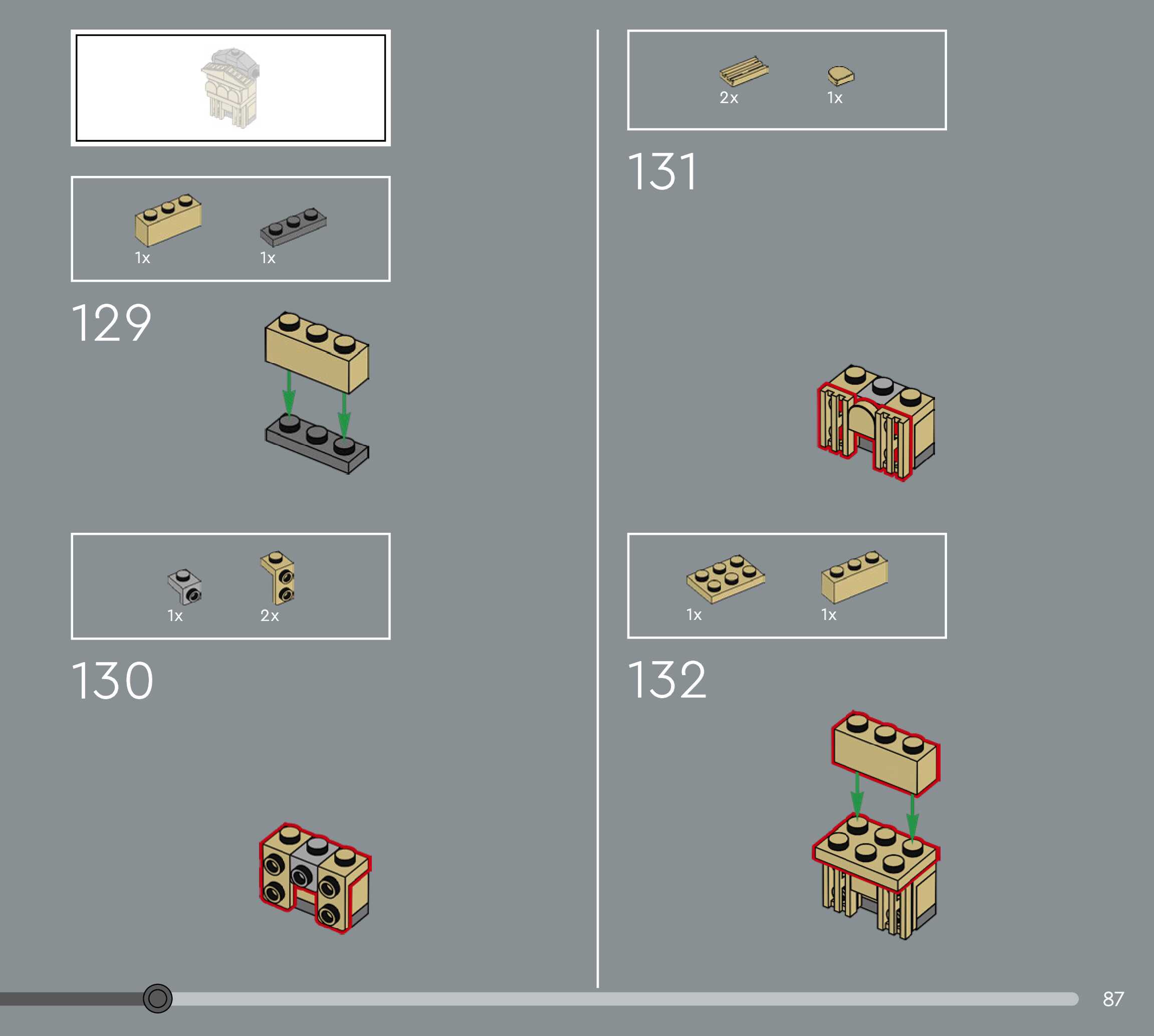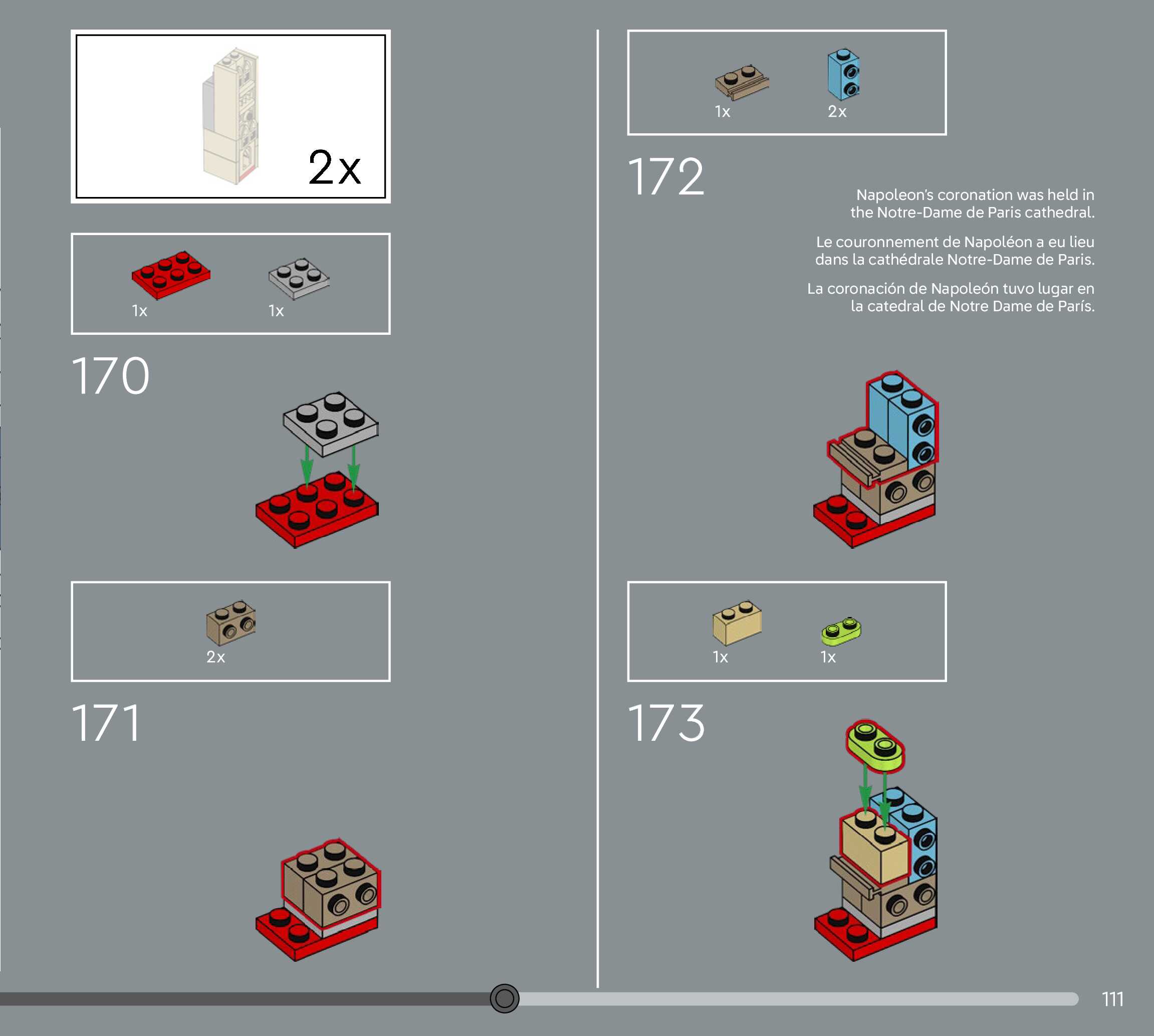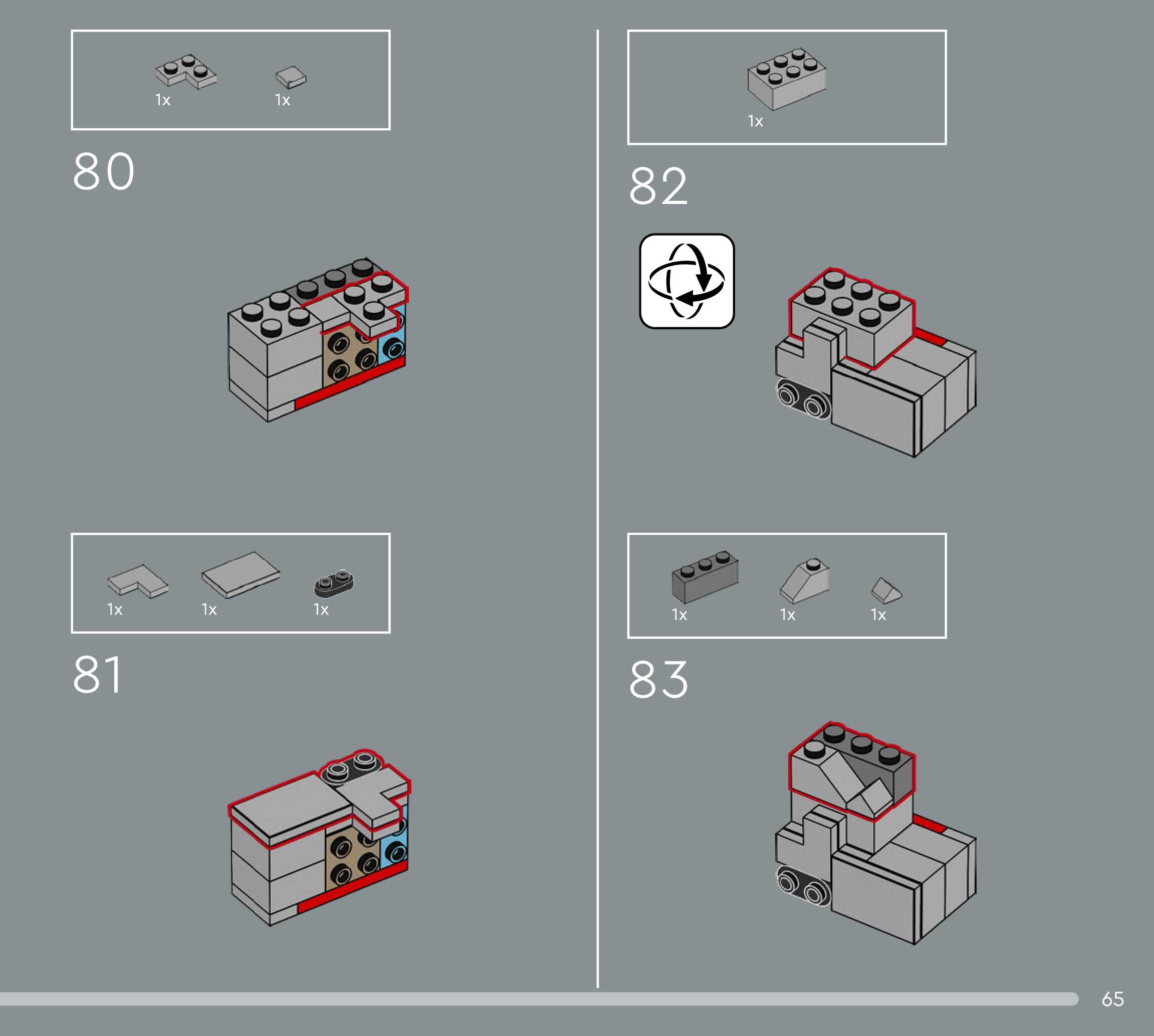 The assembly guide is prepared in a very understandable way for children and adult LEGO enthusiasts. A total of 156 picture galleries are shown, explaining the step-by-step construction stages for 1 different structures.