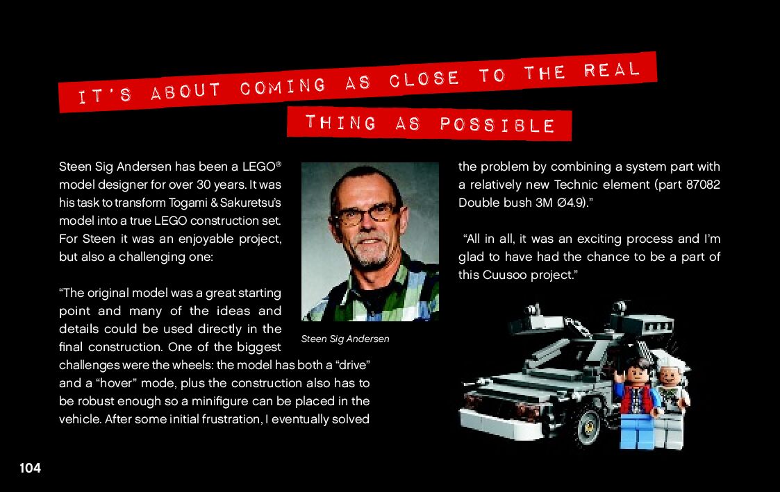 On this page you can find the original construction manual for the LEGO 21103 set. With the assembly manual you can easily learn how to build the 21103 The DeLorean time machine step by step. The set was released in 2013.