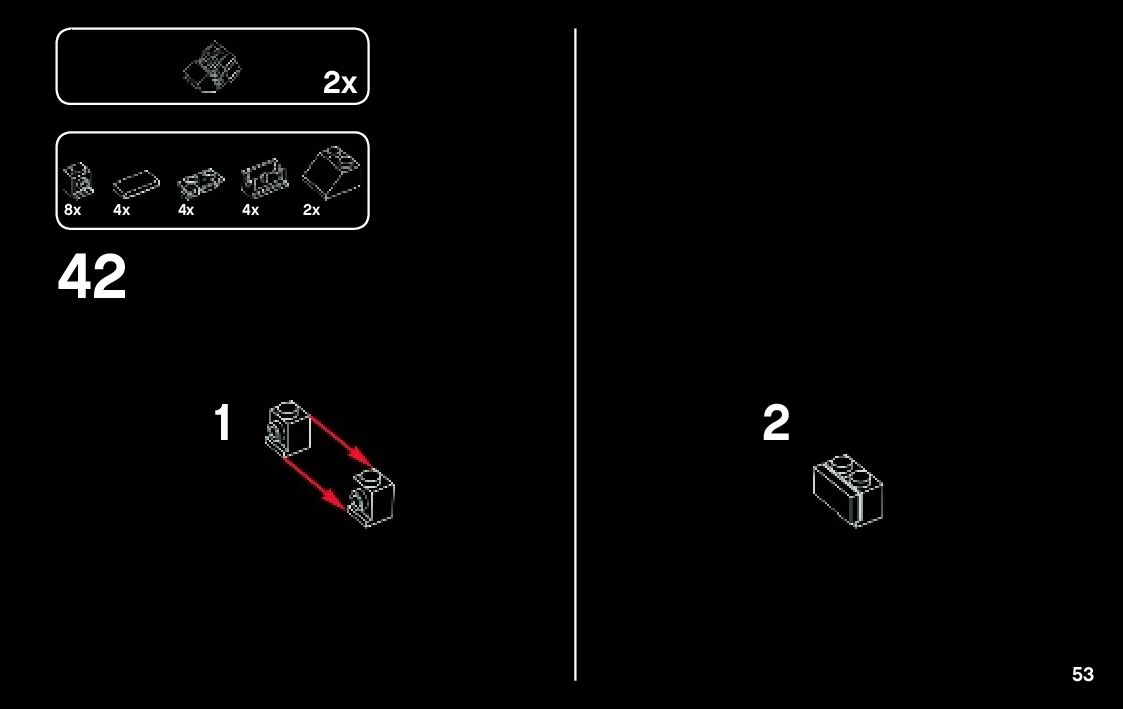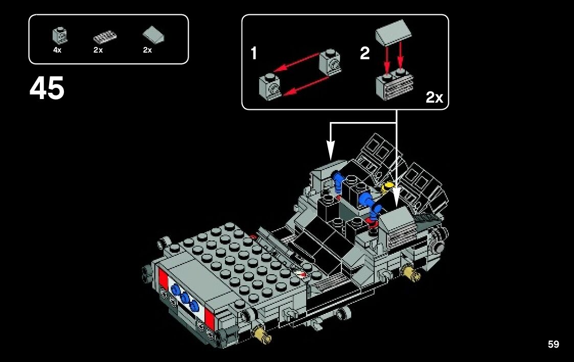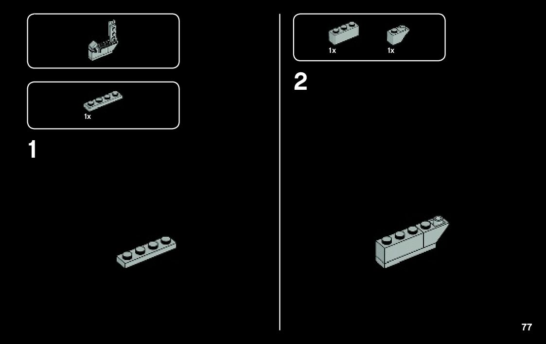 The assembly guide is prepared in a very understandable way for children and adult LEGO enthusiasts. A total of 108 picture galleries are shown, explaining the step-by-step construction stages for 1 different structures.