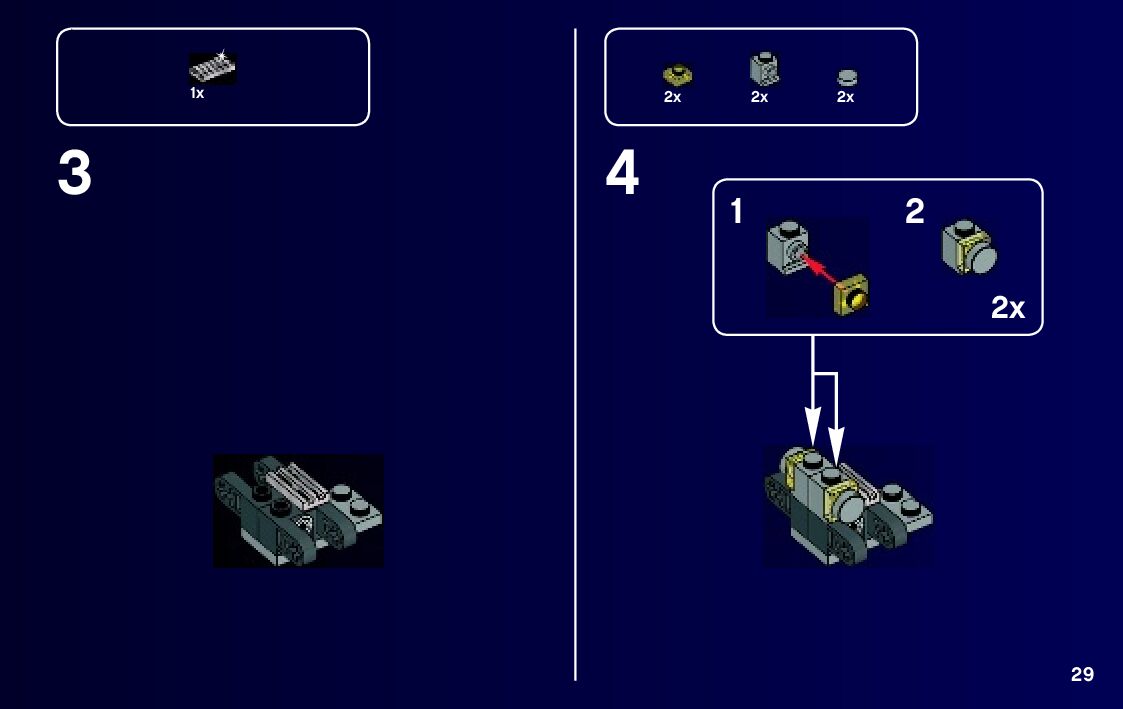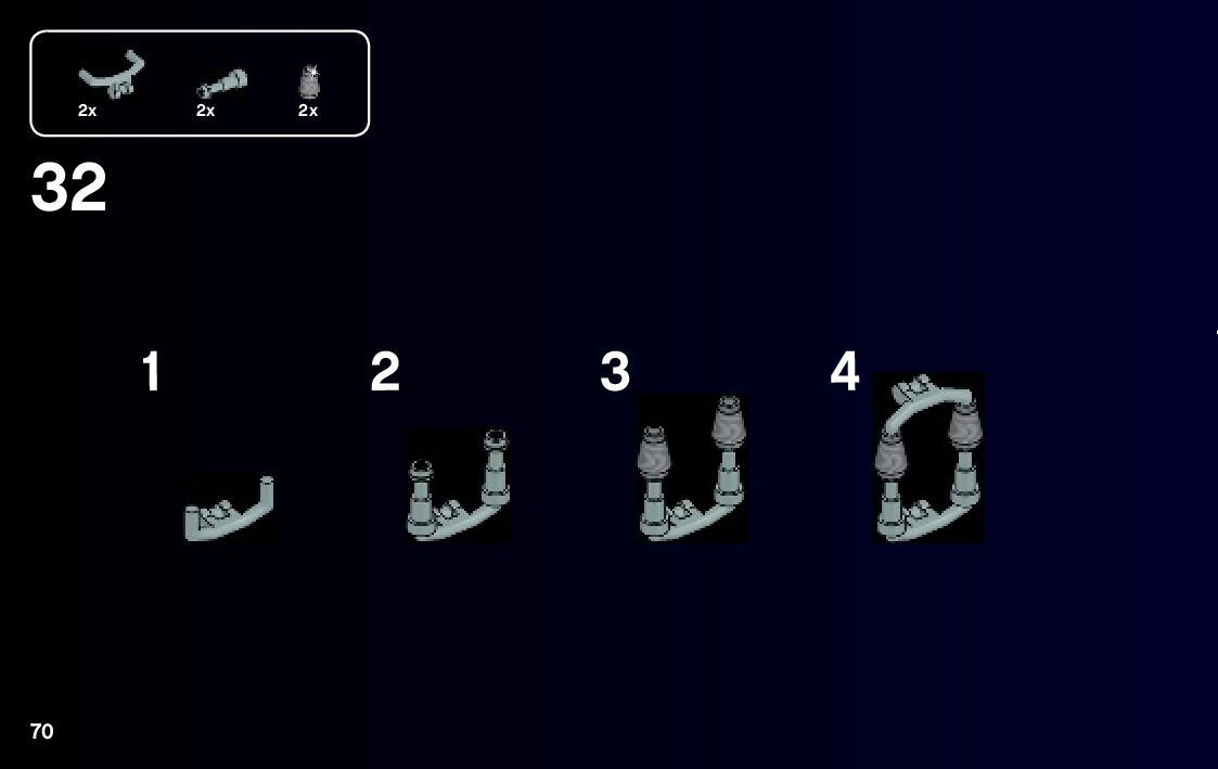 The assembly guide is prepared in a very understandable way for children and adult LEGO enthusiasts. A total of 88 picture galleries are shown, explaining the step-by-step construction stages for 1 different structures.