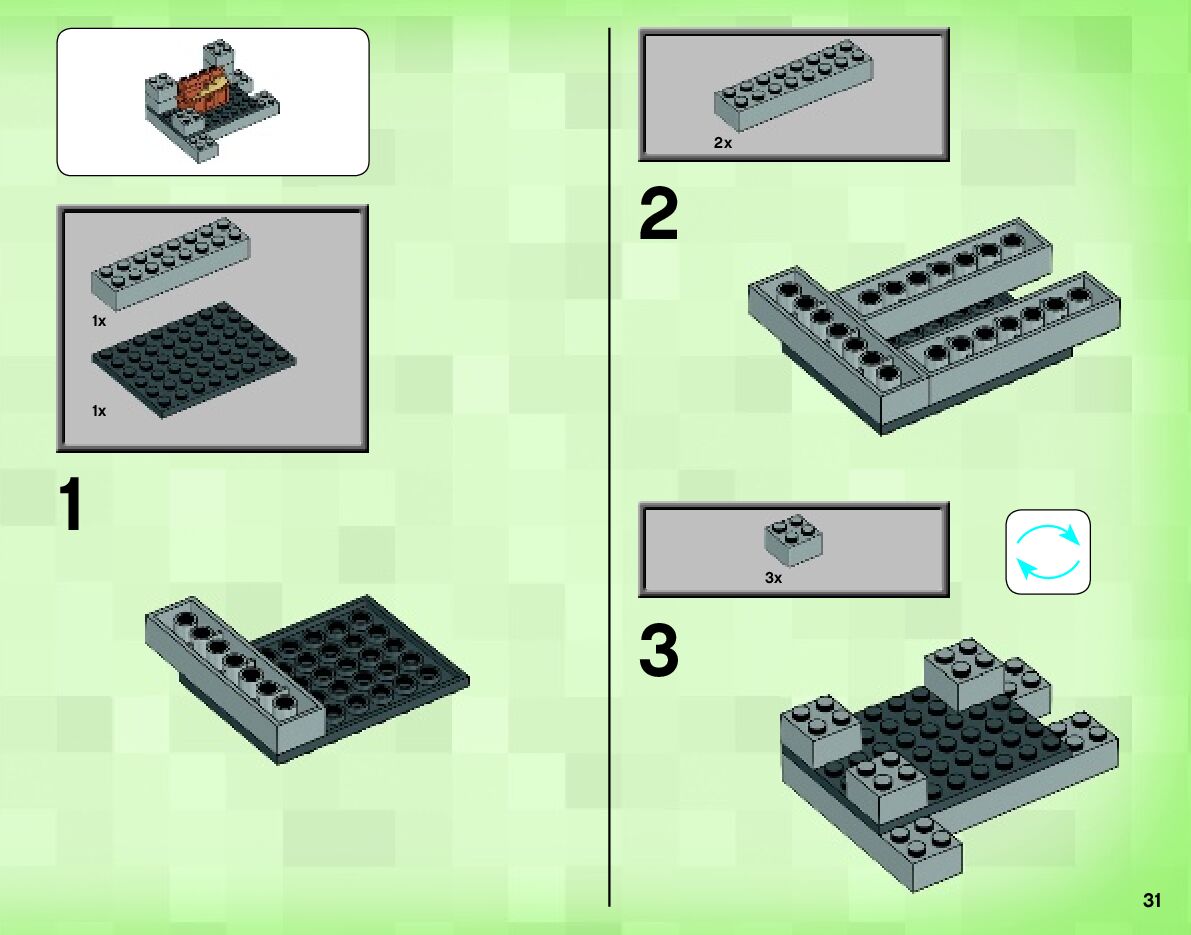 The assembly guide is prepared in a very understandable way for children and adult LEGO enthusiasts. A total of 48 picture galleries are shown, explaining the step-by-step construction stages for 1 different structures.