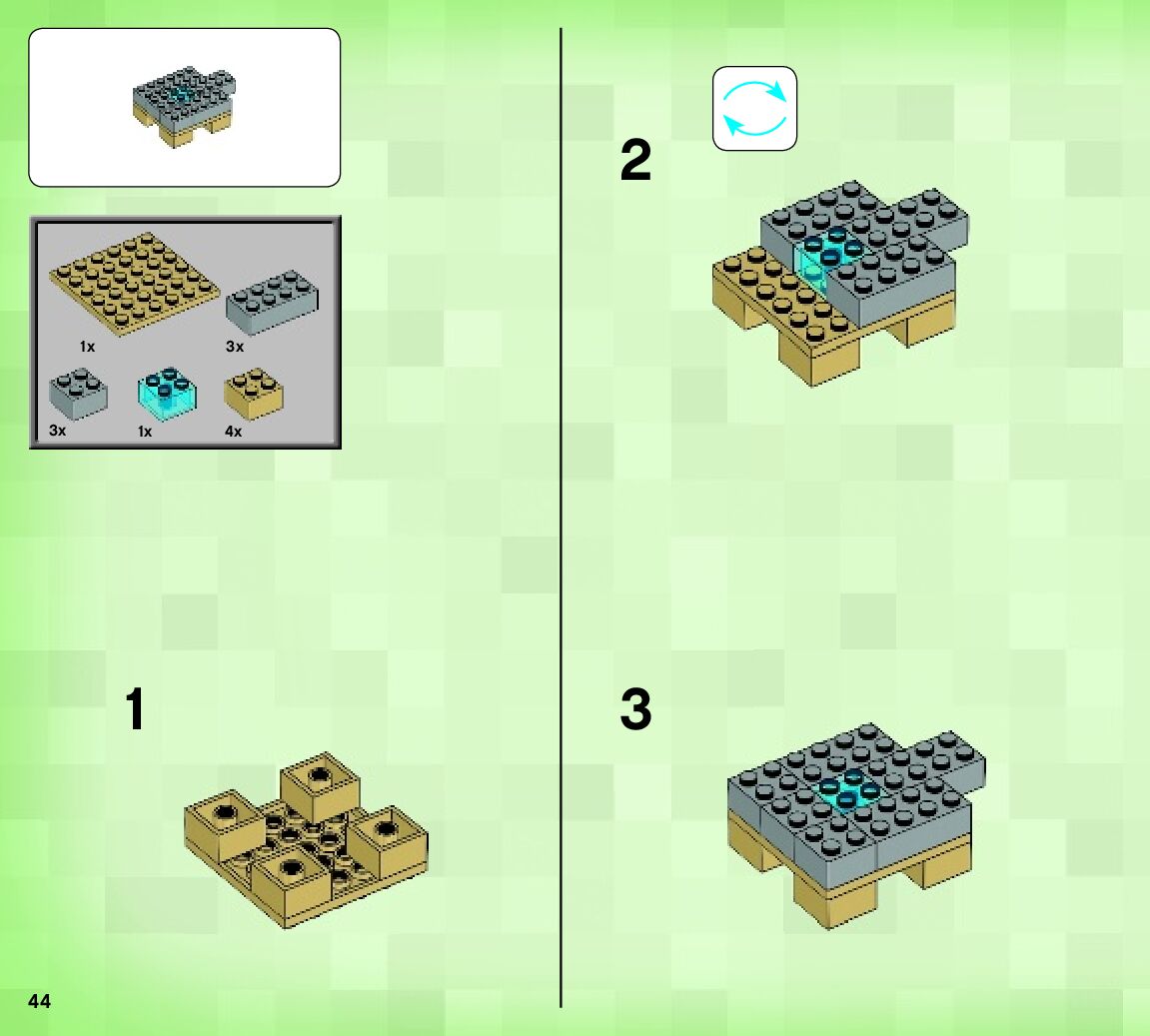 The assembly guide is prepared in a very understandable way for children and adult LEGO enthusiasts. A total of 162 picture galleries are shown, explaining the step-by-step construction stages for 3 different structures.