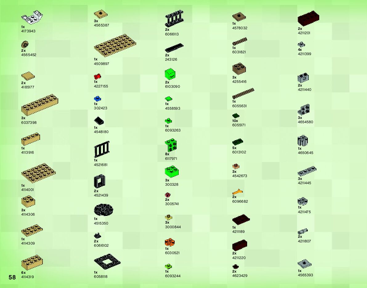 The assembly guide is prepared in a very understandable way for children and adult LEGO enthusiasts. A total of 60 picture galleries are shown, explaining the step-by-step construction stages for 1 different structures.