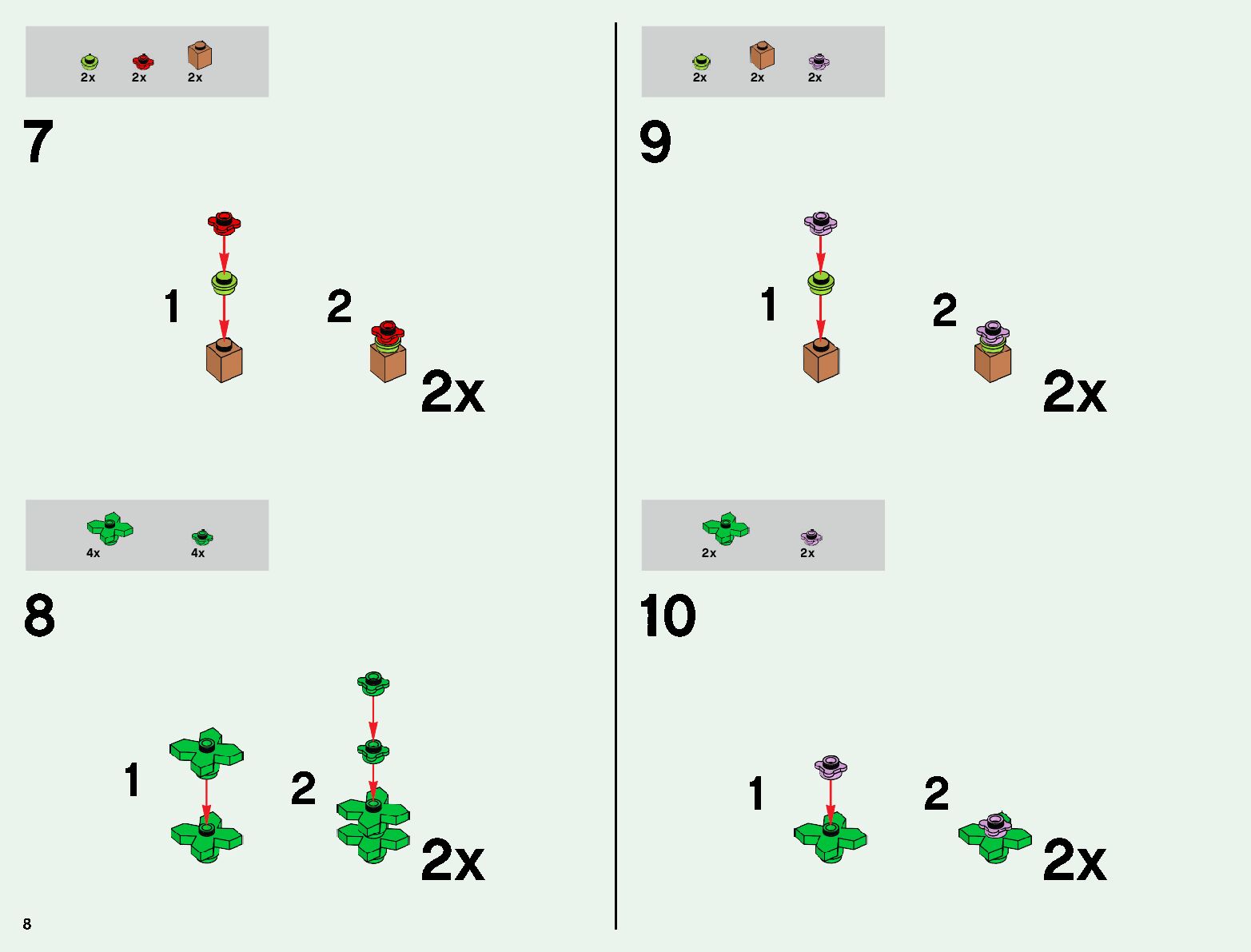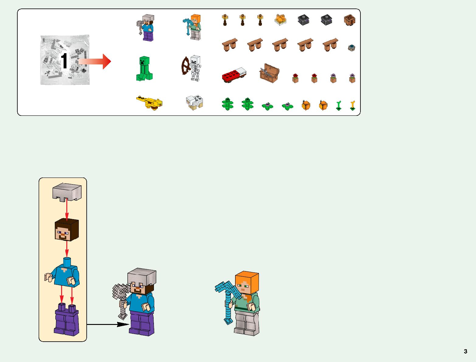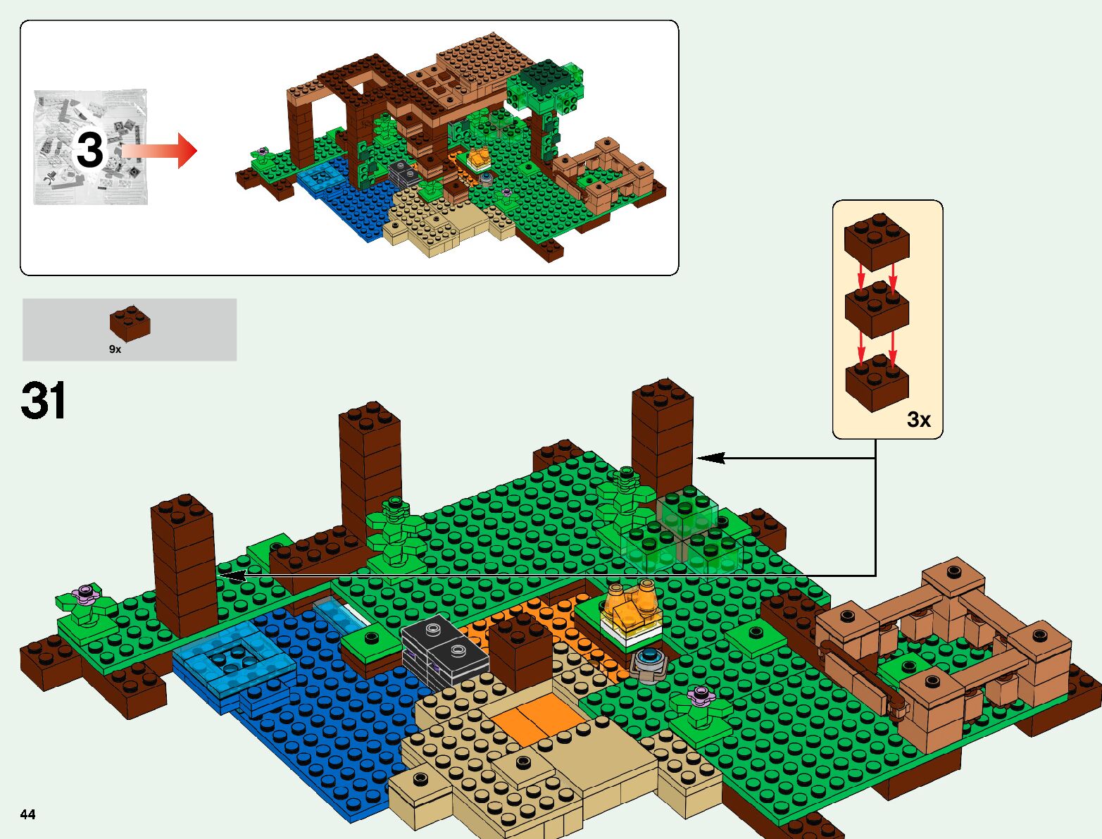 The assembly guide is prepared in a very understandable way for children and adult LEGO enthusiasts. A total of 176 picture galleries are shown, explaining the step-by-step construction stages for 3 different structures.