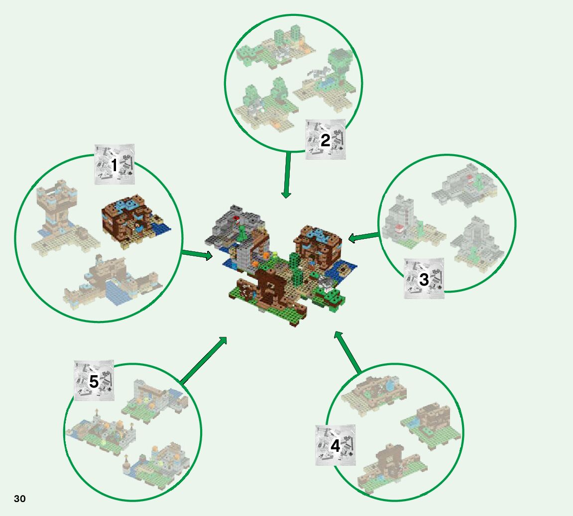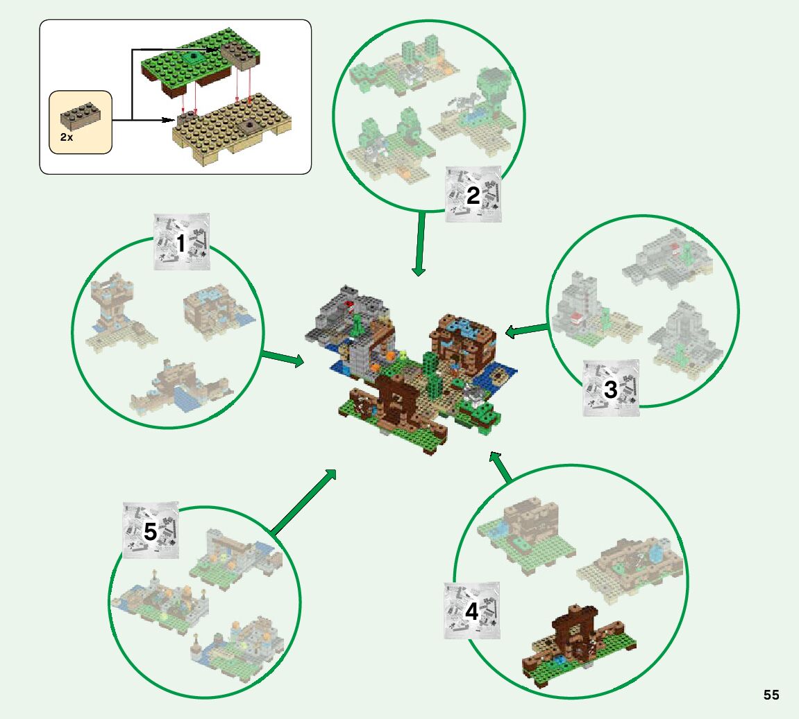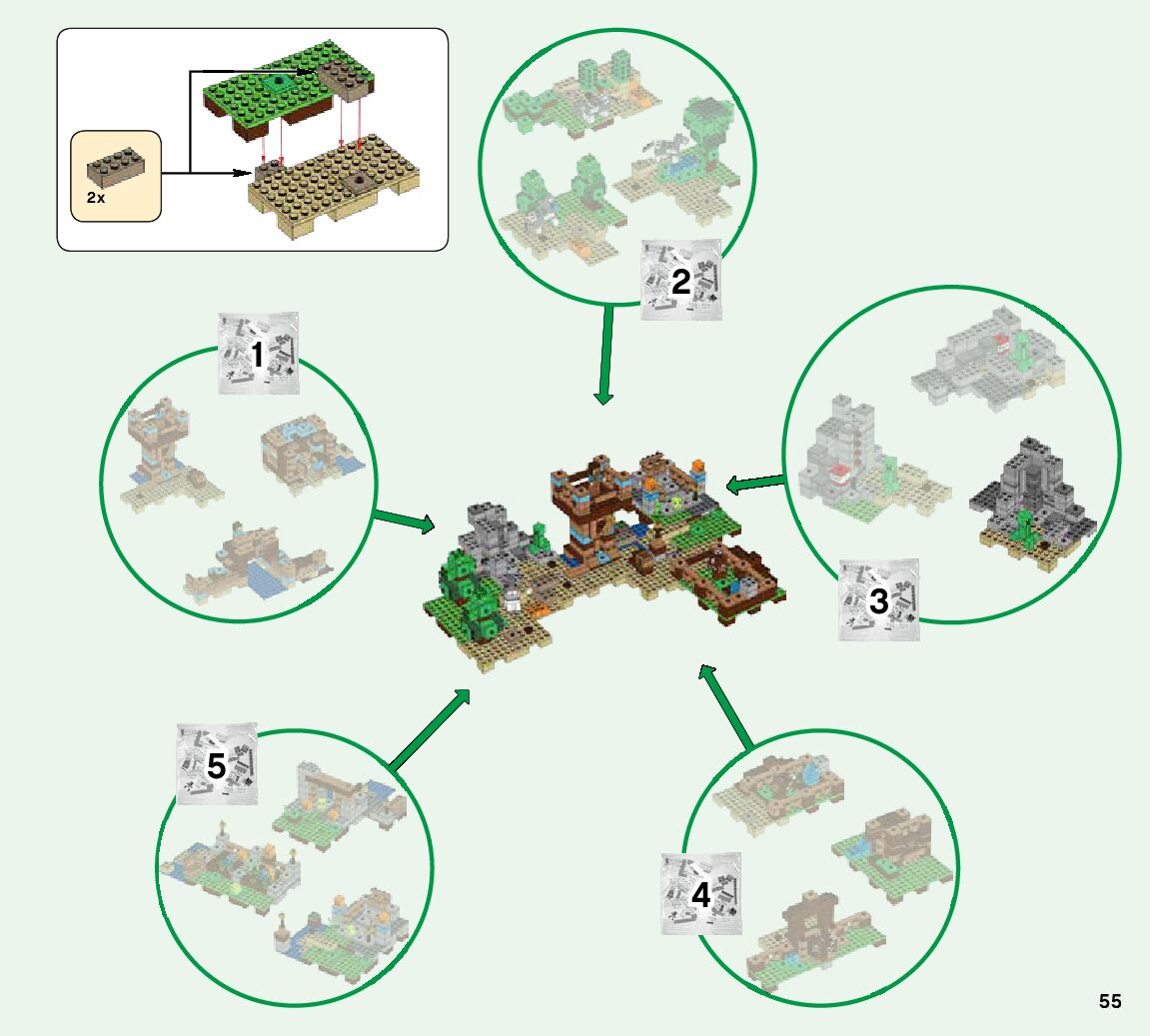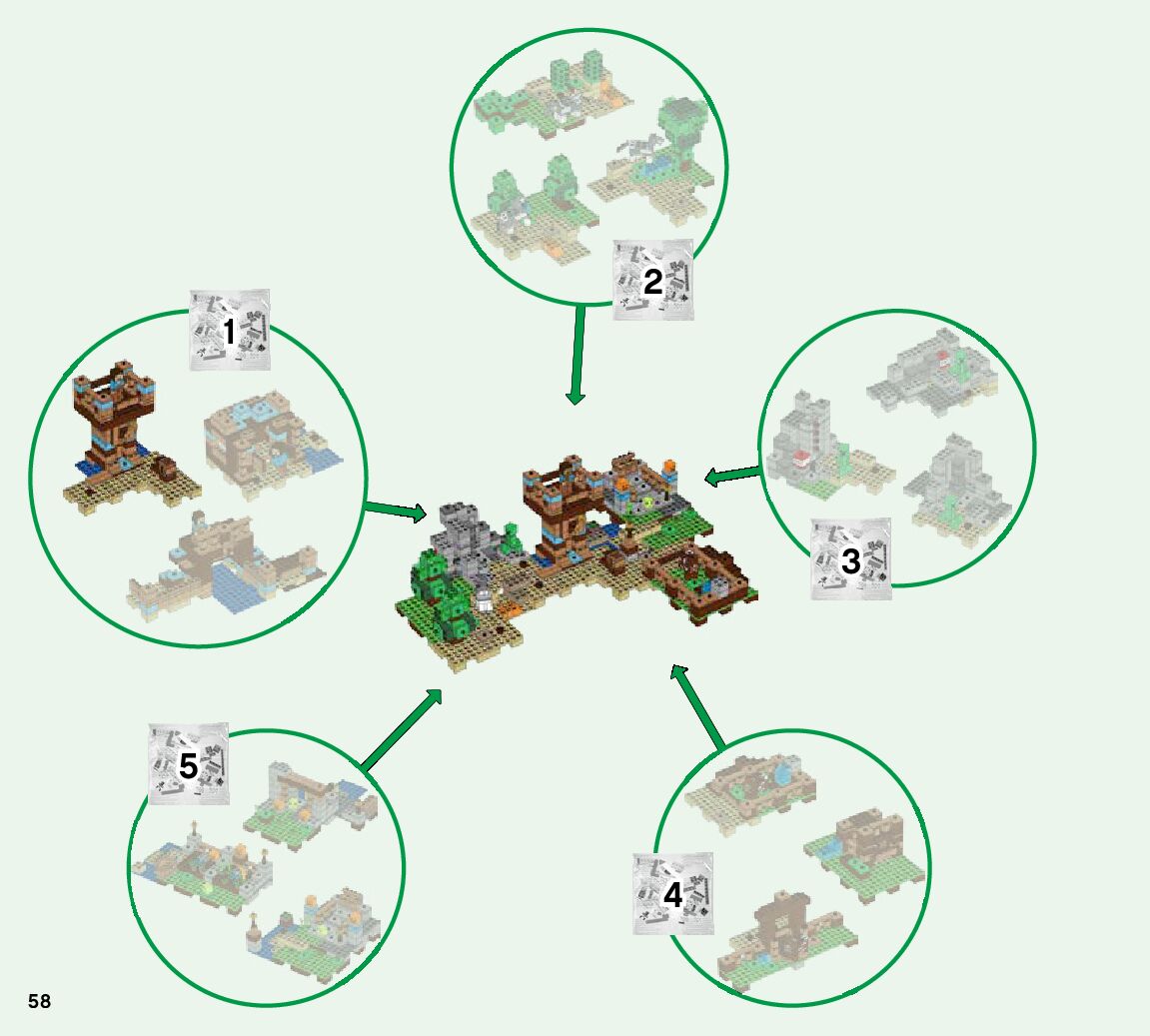 The assembly guide is prepared in a very understandable way for children and adult LEGO enthusiasts. A total of 368 picture galleries are shown, explaining the step-by-step construction stages for 5 different structures.
