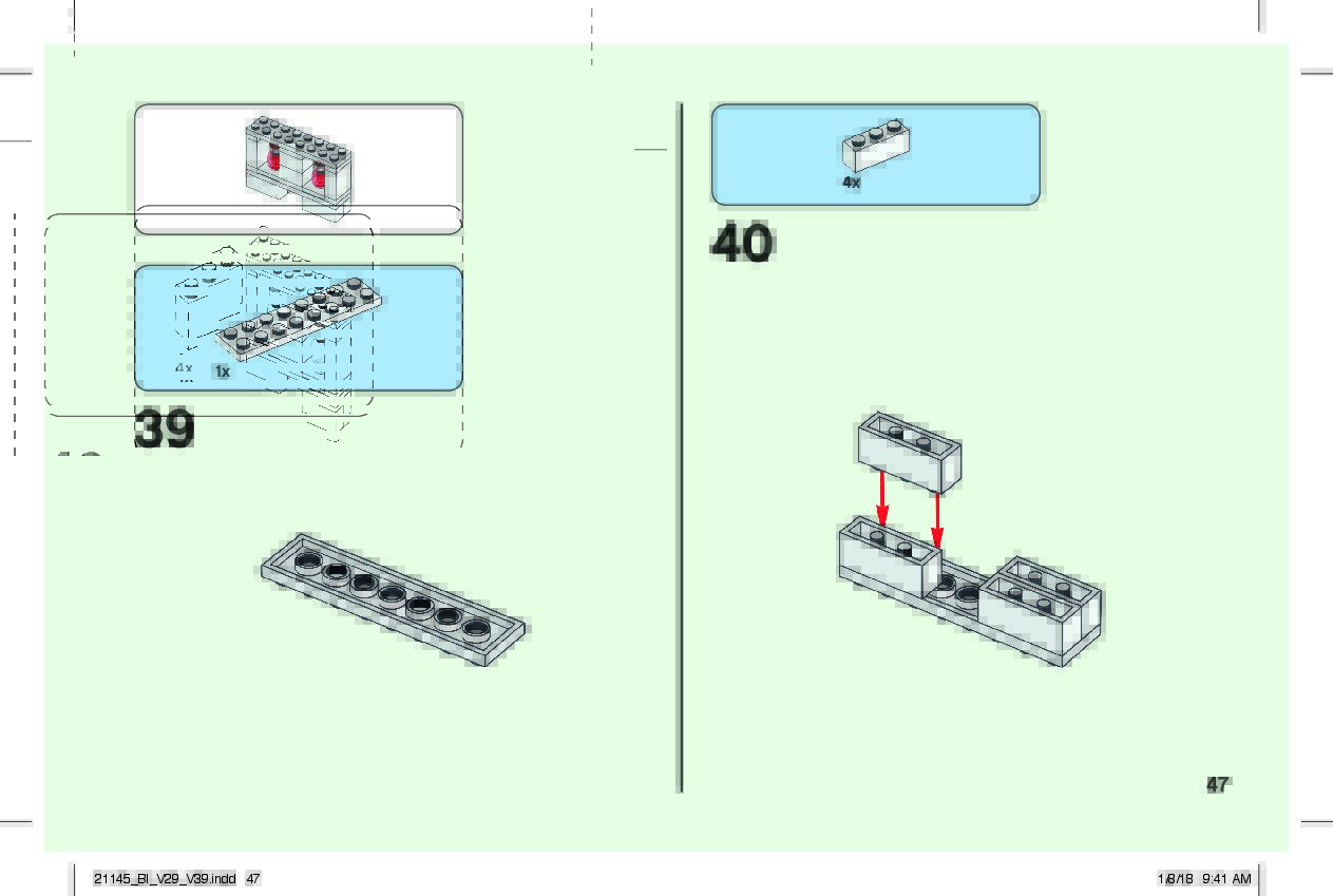 The assembly guide is prepared in a very understandable way for children and adult LEGO enthusiasts. A total of 68 picture galleries are shown, explaining the step-by-step construction stages for 1 different structures.