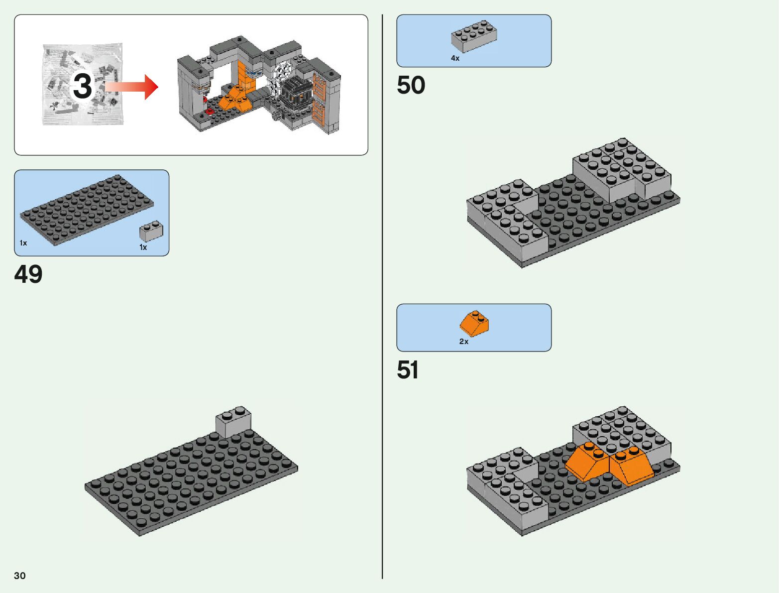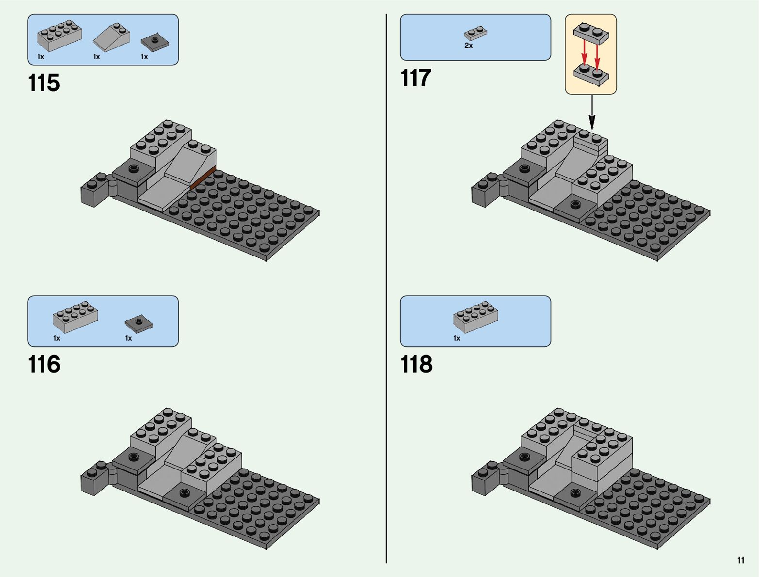 The assembly guide is prepared in a very understandable way for children and adult LEGO enthusiasts. A total of 108 picture galleries are shown, explaining the step-by-step construction stages for 2 different structures.