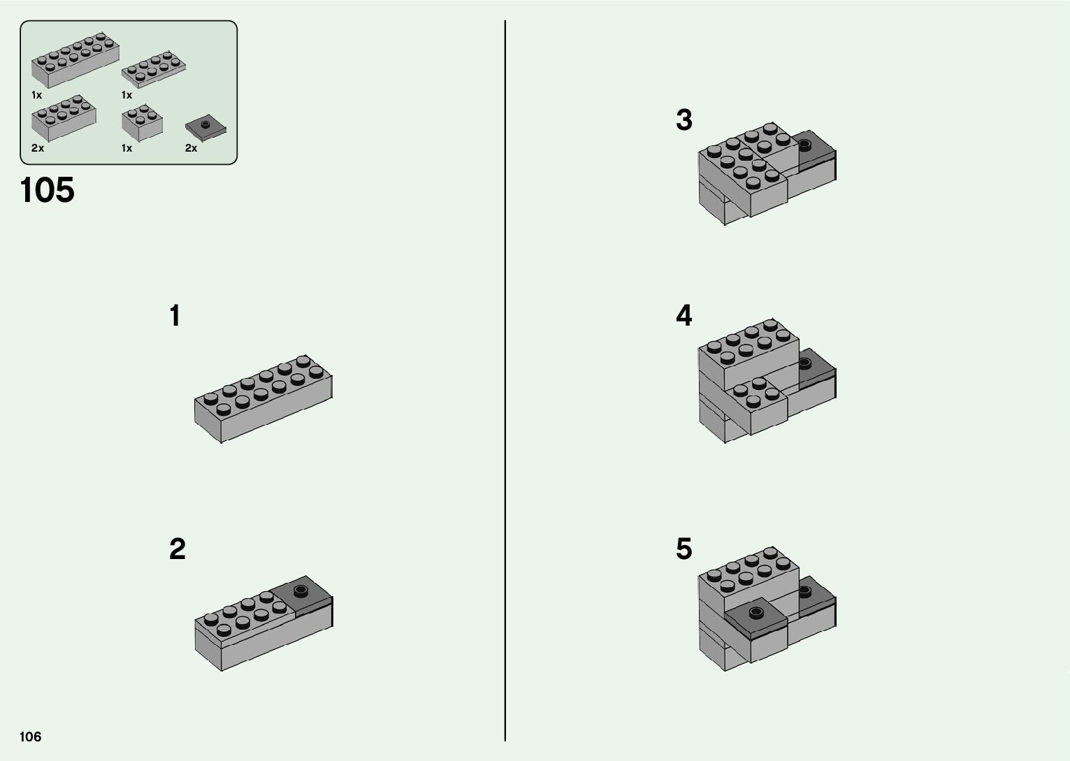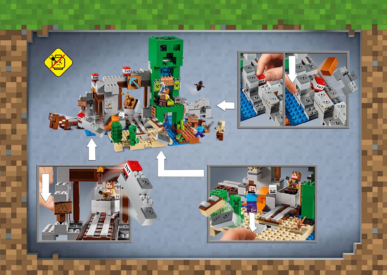 On this page you can find the original construction manual for the LEGO 21155 set. With the assembly manual you can easily learn how to build the 21155 The Creeper Mine step by step. The set was released in 2019.