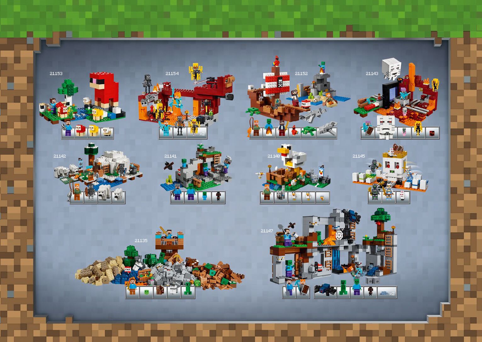 This page shares information about LEGO 21155 The Creeper Mine manual, LEGO 21155 PDF instructions, LEGO 21155 The Creeper Mine building guide online, How to build 21155 The Creeper Mine LEGO.