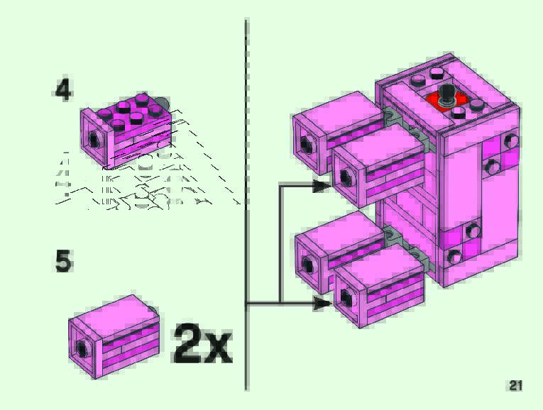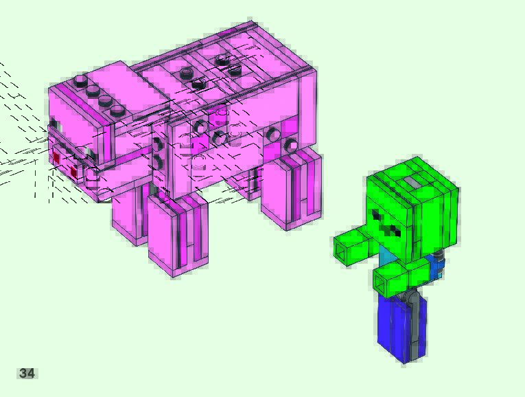 This page shares information about LEGO 21157 BigFig Pig with Baby Zombie manual, LEGO 21157 PDF instructions, LEGO 21157 BigFig Pig with Baby Zombie building guide online, How to build 21157 BigFig Pig with Baby Zombie LEGO.