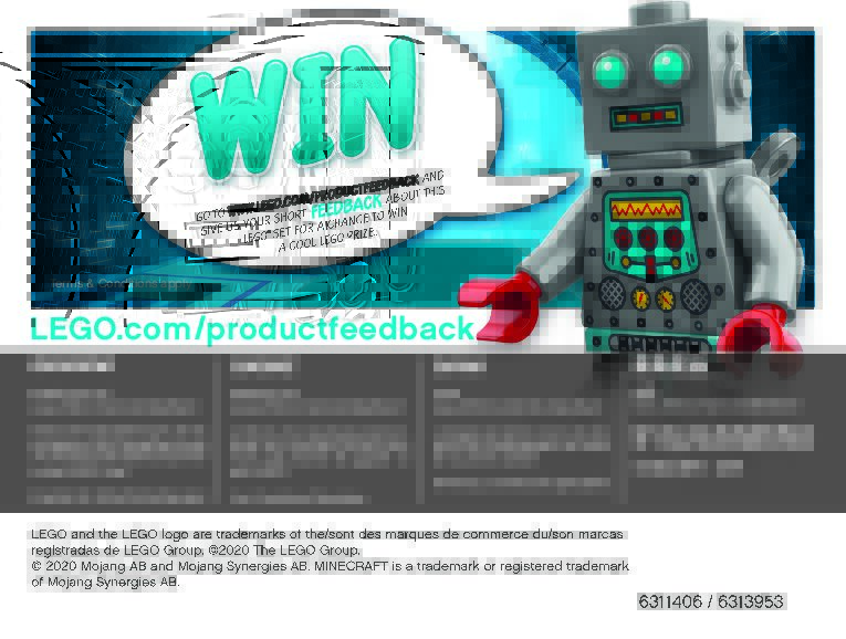 On this page you can find the original construction manual for the LEGO 21157 set. With the assembly manual you can easily learn how to build the 21157 BigFig Pig with Baby Zombie step by step. The set was released in 2020.