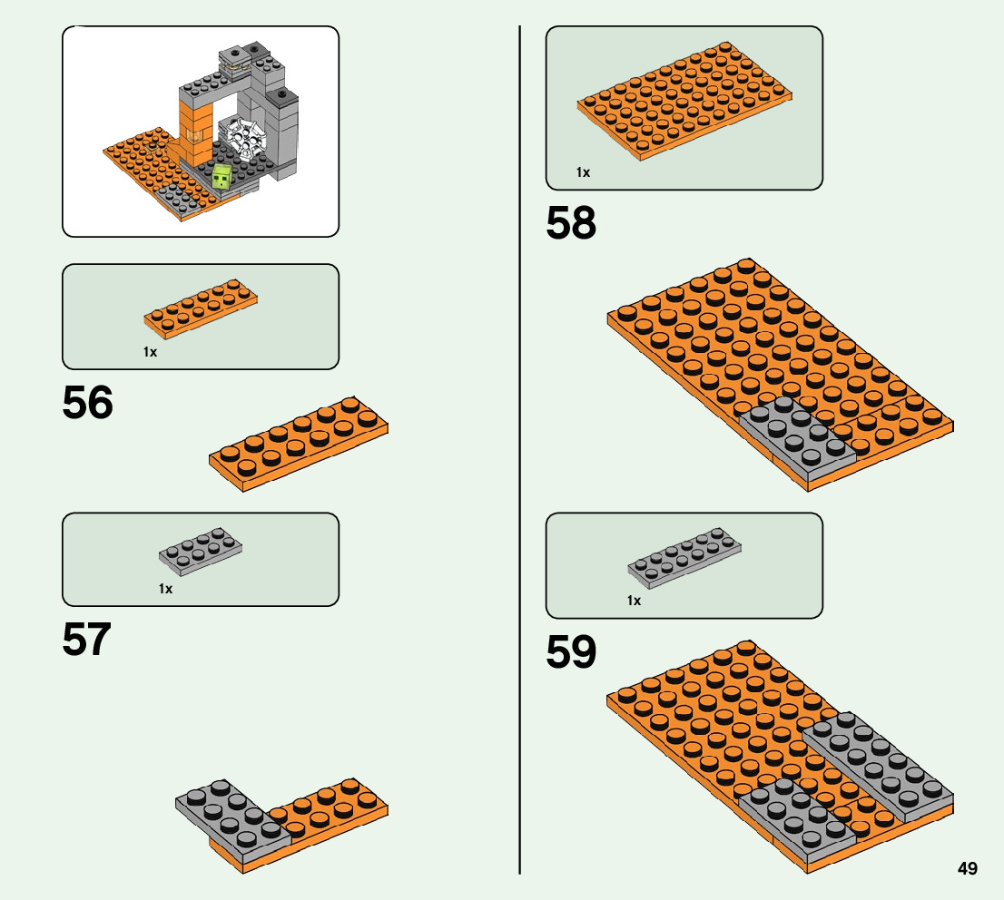The assembly guide is prepared in a very understandable way for children and adult LEGO enthusiasts. A total of 68 picture galleries are shown, explaining the step-by-step construction stages for 1 different structures.