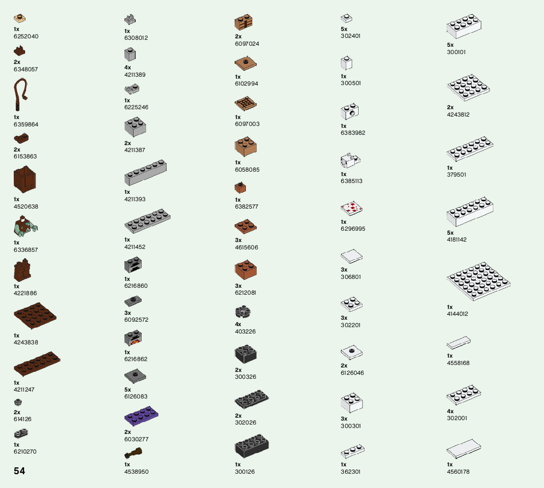 The assembly guide is prepared in a very understandable way for children and adult LEGO enthusiasts. A total of 56 picture galleries are shown, explaining the step-by-step construction stages for 1 different structures.