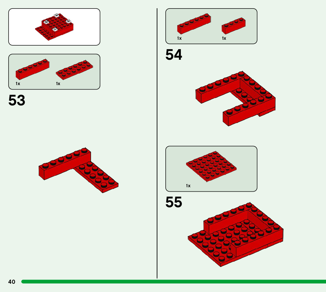 The assembly guide is prepared in a very understandable way for children and adult LEGO enthusiasts. A total of 52 picture galleries are shown, explaining the step-by-step construction stages for 1 different structures.
