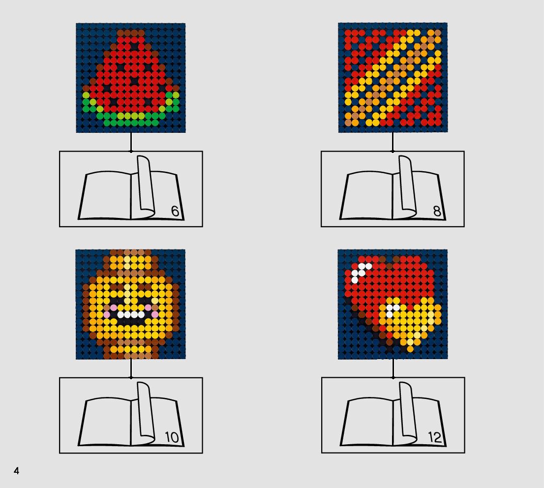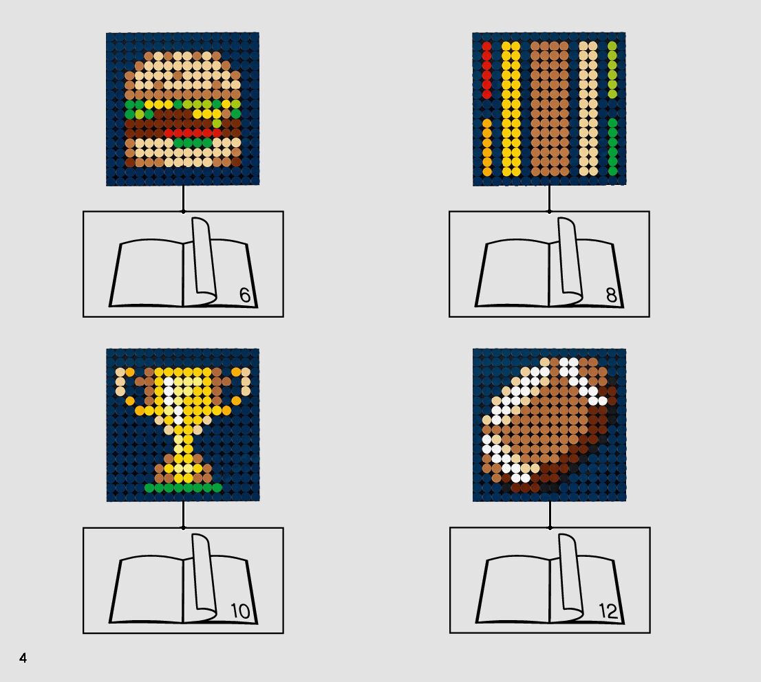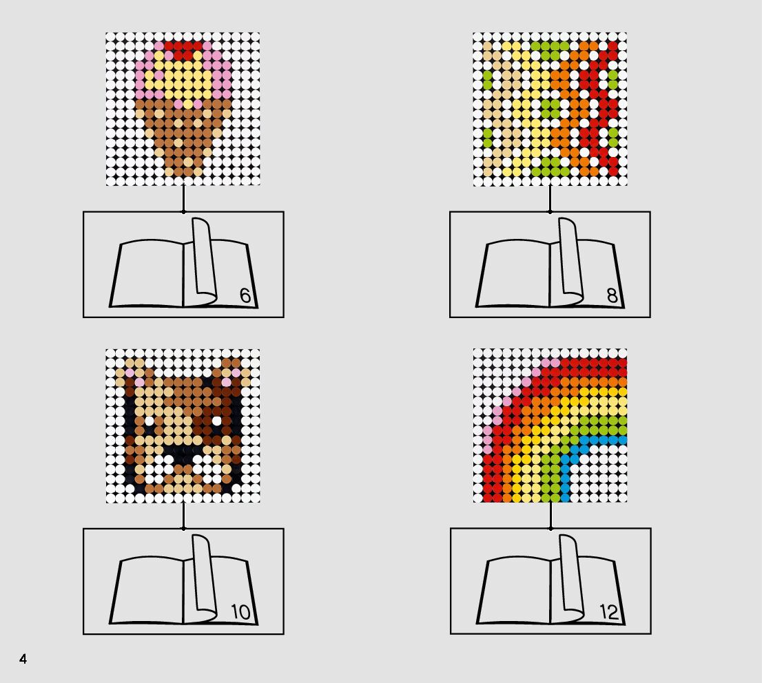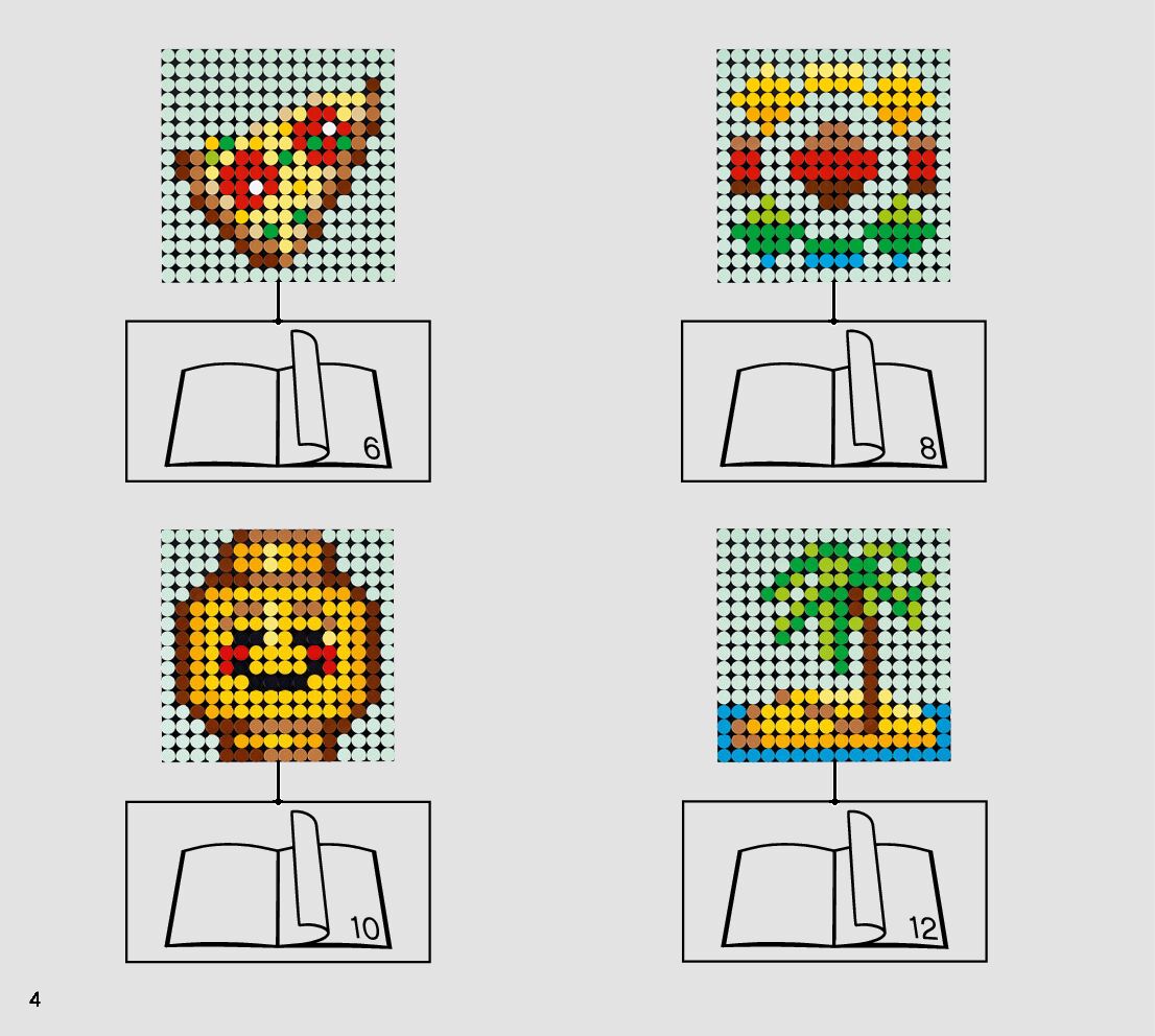 The assembly guide is prepared in a very understandable way for children and adult LEGO enthusiasts. A total of 196 picture galleries are shown, explaining the step-by-step construction stages for 10 different structures.