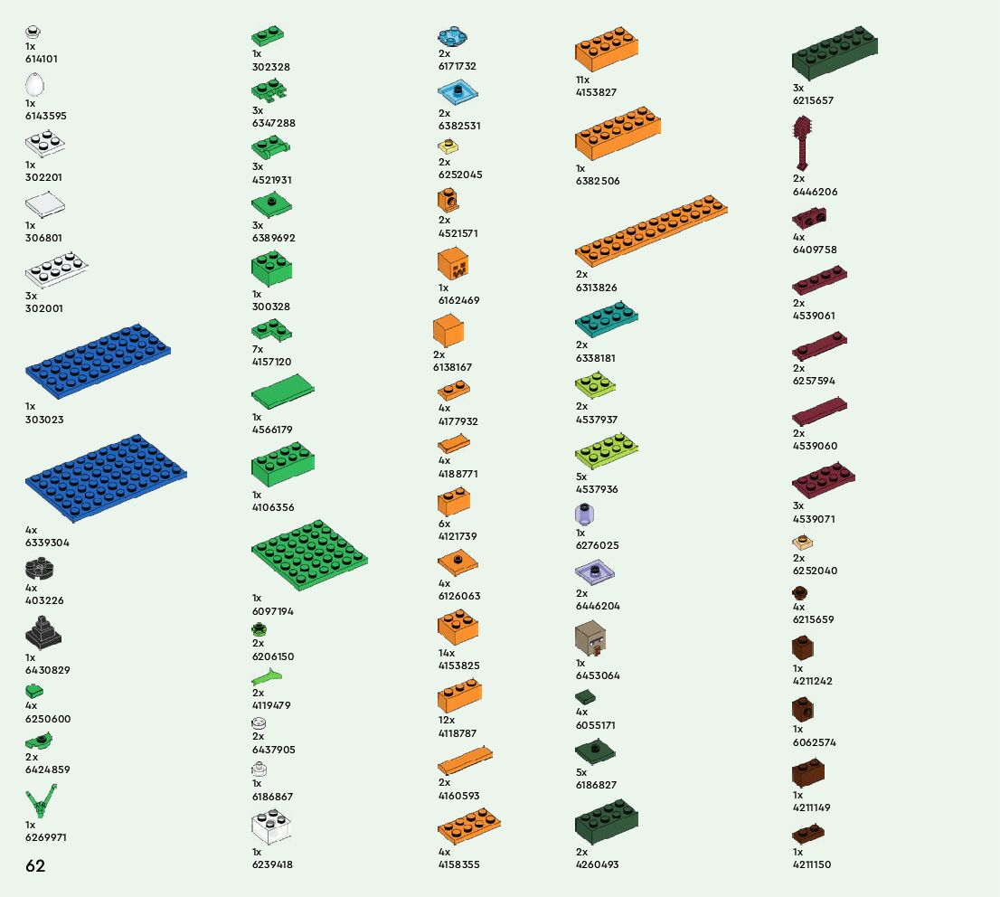 The assembly guide is prepared in a very understandable way for children and adult LEGO enthusiasts. A total of 64 picture galleries are shown, explaining the step-by-step construction stages for 1 different structures.