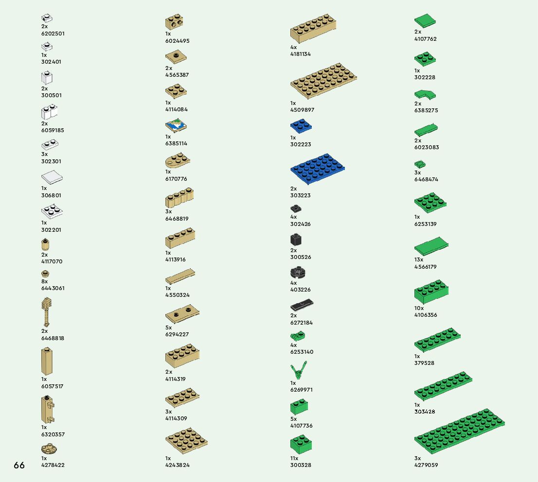 The assembly guide is prepared in a very understandable way for children and adult LEGO enthusiasts. A total of 68 picture galleries are shown, explaining the step-by-step construction stages for 1 different structures.